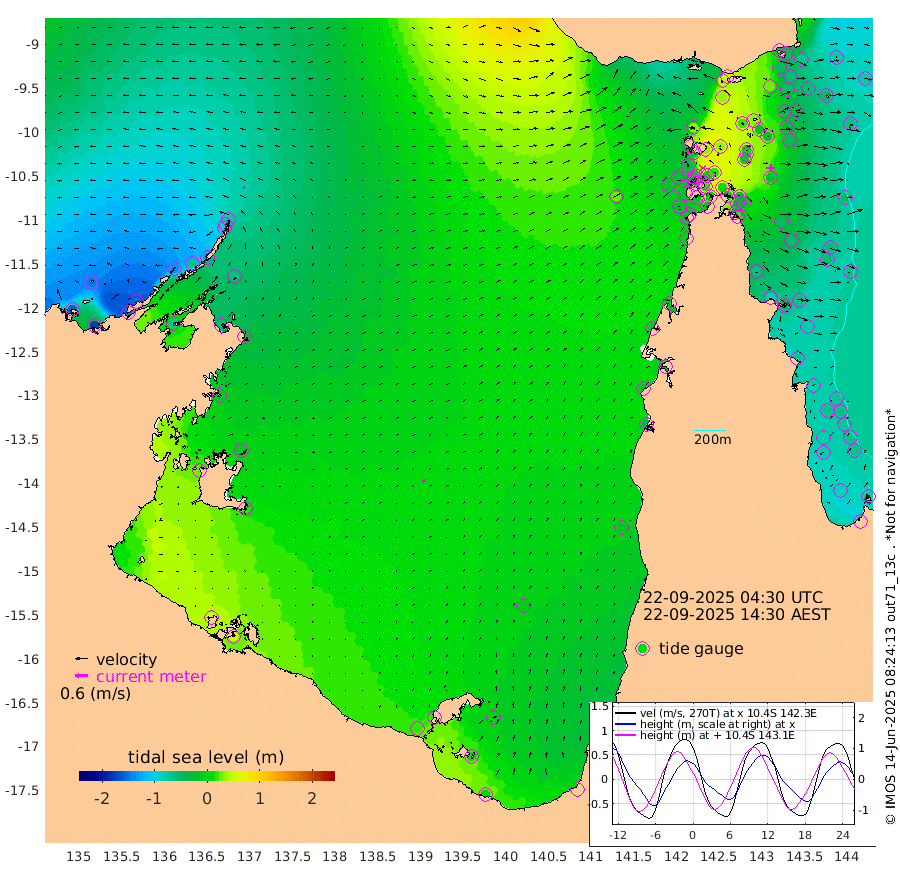 7cm/s -34T +3cm/s rms + 7cm/s -42T. ARA-GOC87 57m 15cm/s 37T +3cm/s rms + 2cm/s -2T. ARA-GOC87 60m 5cm/s -62T +2cm/s rms + 3cm/s 61T. ARA-GOC87 47m -33cm Daru -38cm Bobo Island -61cm Meer Island Barge -76cm Bramble Cay -58cm Unnamed Cay -57cm Pearce Cay -59cm Stephens Island -70cm Merrie England Shoals -47cm Mutacomal Reef -51cm Darnley Island Barge -75cm East Cay -35cm Yorke Island Barge -48cm Rennel Island -30cm Aureed Island -19cm Dungeness Reef 31cm Zagai Island 20cm Yam Island 43cm Dauan Island 51cm Saibai Island 30cm Phipi Reef 23cm Warrior Reef - West 34cm Mabuiag Island Barge -40cm Half Way Island -19cm Coconut Island -29cm Dugong Islet 0cm Poll Island -5cm Kirkcaldie Reef 33cm Suarji Island 11cm Sue Islet -41cm Hawkesbury Island 14cm Alert Patches 15cm Twin Island -13cm Badu Island 33cm St Pauls (Moa Island) -12cm Kubin (Moa Island) 15cm Ince Point 12cm Thursday Island 14cm Nardana Patches -8cm Turtle Head -14cm Round Island -29cm Goods Island -22cm Booby Island -29cm White Rocks Area 26cm Carpentaria 22cm Papou Point -15cm Bampfield Head -18cm Crab Island -24cm Red Wallis Island -26cm Packe Island -25cm Harrington Reef -21cm Herald Camp 22cm Sharp Point -14cm Red Island Point 10cm Possession Island 10cm Alpha Rock -3cm Frederick Point -36cm Wyborn Reef Light -26cm Tetley Island -51cm Triangle Reef -39cm Turtle Head Island -57cm Maclennan Cay -66cm Raine Island -51cm Mcsweeny Reef -56cm Collette Reef -60cm Shadwell Reef -65cm Hannibal Island -85cm Round Point -7cm Vrilya Point -71cm Cape Grenville -69cm Hicks Island -66cm Sir Charles Hardy Island -20cm Harvey Island -80cm Kay Reef -71cm Rocky Island -77cm Chapman Island -69cm Ham Reef -67cm Jubilee Reef -61cm Night Island -72cm Unnamed Reef No. 3 -75cm Morris Island -60cm 1st 3 Mile Opening -67cm Creech Reef -79cm Fife Island -90cm Eden Reef -78cm Stanley Island -91cm Normanby River -158cm Yabooma Island -175cm Hutchison River -150cm Elcho Island -148cm North West Crocodile Island -79cm Cape Wessel -136cm Stevens Island -60cm Guluwuru Island -131cm Hopeful Bay -97cm Auster Point -98cm Two Island Bay -143cm Cadell Strait -71cm Mallison Island -62cm Melville Bay (Gove Harbour) -62cm Truant Island -29cm Cape Arnhem -8cm Cape Grey -10cm Hawk Island 29cm Milner Bay (Groote Eylandt) 21cm Cape Beatrice 60cm West Island 66cm Centre Island 17cm Mornington Island 19cm West Wellesley Islands 6cm Bountiful Island -4cm Albert River Mouth 7cm Sweers Island -12cm Karumba -15cm Nassau River Offshore -22cm Christmas Creek -32cm Archer River -15cm Boyd Point -30cm Weipa (Humbug Point) -13cm Pennefather River -8cm Cullen Point
