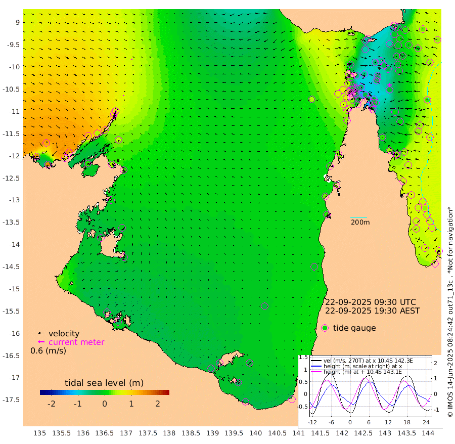 8cm/s -156T +3cm/s rms + 7cm/s -42T. ARA-GOC87 57m 4cm/s -145T +3cm/s rms + 2cm/s -2T. ARA-GOC87 60m 9cm/s -174T +2cm/s rms + 3cm/s 61T. ARA-GOC87 47m -30cm Daru -29cm Bobo Island 32cm Meer Island Barge 30cm Bramble Cay 9cm Unnamed Cay -10cm Pearce Cay 6cm Stephens Island 17cm Merrie England Shoals -11cm Mutacomal Reef 5cm Darnley Island Barge 36cm East Cay -15cm Yorke Island Barge -9cm Rennel Island -27cm Aureed Island -34cm Dungeness Reef -73cm Zagai Island -59cm Yam Island -71cm Dauan Island -72cm Saibai Island -77cm Phipi Reef -76cm Warrior Reef - West -38cm Mabuiag Island Barge -13cm Half Way Island -39cm Coconut Island -22cm Dugong Islet -47cm Poll Island -45cm Kirkcaldie Reef -62cm Suarji Island -51cm Sue Islet 52cm Hawkesbury Island -42cm Alert Patches -48cm Twin Island 23cm Badu Island -61cm St Pauls (Moa Island) 17cm Kubin (Moa Island) -30cm Ince Point -15cm Thursday Island -20cm Nardana Patches 11cm Turtle Head 29cm Round Island 53cm Goods Island 67cm Booby Island 70cm White Rocks Area 43cm Carpentaria -49cm Papou Point 73cm Bampfield Head 42cm Crab Island 58cm Red Wallis Island 33cm Packe Island -34cm Harrington Reef 52cm Herald Camp -33cm Sharp Point 0cm Red Island Point -24cm Possession Island -36cm Alpha Rock -43cm Frederick Point -19cm Wyborn Reef Light -27cm Tetley Island 20cm Triangle Reef -19cm Turtle Head Island 31cm Maclennan Cay 46cm Raine Island 2cm Mcsweeny Reef 10cm Collette Reef 31cm Shadwell Reef 16cm Hannibal Island 34cm Round Point 36cm Vrilya Point 35cm Cape Grenville 32cm Hicks Island 43cm Sir Charles Hardy Island 7cm Harvey Island 52cm Kay Reef 48cm Rocky Island 55cm Chapman Island 50cm Ham Reef 46cm Jubilee Reef 36cm Night Island 50cm Unnamed Reef No. 3 51cm Morris Island 49cm 1st 3 Mile Opening 45cm Creech Reef 42cm Fife Island 64cm Eden Reef 56cm Stanley Island 60cm Normanby River 155cm Yabooma Island 155cm Hutchison River 139cm Elcho Island 133cm North West Crocodile Island 74cm Cape Wessel 120cm Stevens Island 39cm Guluwuru Island 119cm Hopeful Bay 89cm Auster Point 88cm Two Island Bay 95cm Cadell Strait 17cm Mallison Island 44cm Melville Bay (Gove Harbour) 46cm Truant Island 16cm Cape Arnhem 3cm Cape Grey -5cm Hawk Island -18cm Milner Bay (Groote Eylandt) -20cm Cape Beatrice -43cm West Island -50cm Centre Island -55cm Mornington Island -45cm West Wellesley Islands -26cm Bountiful Island -39cm Albert River Mouth -46cm Sweers Island -48cm Karumba -26cm Nassau River Offshore -9cm Christmas Creek 21cm Archer River 24cm Boyd Point 41cm Weipa (Humbug Point) 15cm Pennefather River 37cm Cullen Point