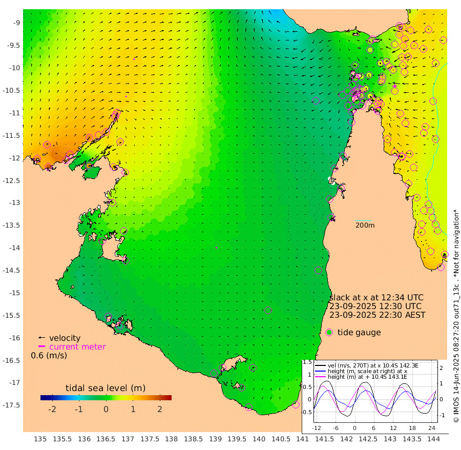 11cm/s 98T +3cm/s rms + 7cm/s -42T. ARA-GOC87 57m 13cm/s -158T +3cm/s rms + 2cm/s -2T. ARA-GOC87 60m 10cm/s 74T +2cm/s rms + 3cm/s 61T. ARA-GOC87 47m 98cm Daru 99cm Bobo Island 62cm Meer Island Barge 91cm Bramble Cay 100cm Unnamed Cay 101cm Pearce Cay 93cm Stephens Island 102cm Merrie England Shoals 107cm Mutacomal Reef 80cm Darnley Island Barge 74cm East Cay 83cm Yorke Island Barge 96cm Rennel Island 88cm Aureed Island 83cm Dungeness Reef 63cm Zagai Island 66cm Yam Island 40cm Dauan Island 33cm Saibai Island 40cm Phipi Reef 71cm Warrior Reef - West 23cm Mabuiag Island Barge 86cm Half Way Island 87cm Coconut Island 88cm Dugong Islet 77cm Poll Island 69cm Kirkcaldie Reef 61cm Suarji Island 63cm Sue Islet 11cm Hawkesbury Island 49cm Alert Patches 56cm Twin Island 11cm Badu Island 50cm St Pauls (Moa Island) 27cm Kubin (Moa Island) 37cm Ince Point 23cm Thursday Island 28cm Nardana Patches 21cm Turtle Head 14cm Round Island 4cm Goods Island -25cm Booby Island -4cm White Rocks Area -57cm Carpentaria 43cm Papou Point -15cm Bampfield Head -36cm Crab Island -13cm Red Wallis Island 21cm Packe Island 93cm Harrington Reef -5cm Herald Camp 6cm Sharp Point 8cm Red Island Point 27cm Possession Island 64cm Alpha Rock 75cm Frederick Point 106cm Wyborn Reef Light 102cm Tetley Island 64cm Triangle Reef 93cm Turtle Head Island 61cm Maclennan Cay 48cm Raine Island 91cm Mcsweeny Reef 83cm Collette Reef 61cm Shadwell Reef 93cm Hannibal Island 96cm Round Point -56cm Vrilya Point 78cm Cape Grenville 73cm Hicks Island 77cm Sir Charles Hardy Island 22cm Harvey Island 72cm Kay Reef 60cm Rocky Island 59cm Chapman Island 51cm Ham Reef 55cm Jubilee Reef 52cm Night Island 54cm Unnamed Reef No. 3 62cm Morris Island 46cm 1st 3 Mile Opening 52cm Creech Reef 68cm Fife Island 67cm Eden Reef 58cm Stanley Island 74cm Normanby River 153cm Yabooma Island 186cm Hutchison River 151cm Elcho Island 145cm North West Crocodile Island 115cm Cape Wessel 151cm Stevens Island 115cm Guluwuru Island 132cm Hopeful Bay 115cm Auster Point 118cm Two Island Bay 161cm Cadell Strait 144cm Mallison Island 109cm Melville Bay (Gove Harbour) 113cm Truant Island 70cm Cape Arnhem 38cm Cape Grey 32cm Hawk Island -9cm Milner Bay (Groote Eylandt) -8cm Cape Beatrice -48cm West Island -61cm Centre Island -24cm Mornington Island -23cm West Wellesley Islands -4cm Bountiful Island -4cm Albert River Mouth -16cm Sweers Island -12cm Karumba -9cm Nassau River Offshore -9cm Christmas Creek -19cm Archer River -20cm Boyd Point -15cm Weipa (Humbug Point) -46cm Pennefather River -39cm Cullen Point