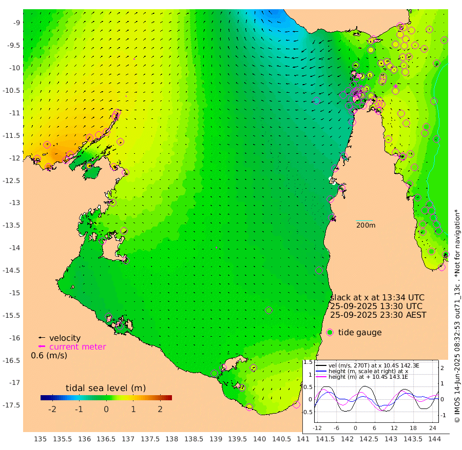 6cm/s 68T +3cm/s rms + 7cm/s -42T. ARA-GOC87 57m 11cm/s -127T +3cm/s rms + 2cm/s -2T. ARA-GOC87 60m 9cm/s 46T +2cm/s rms + 3cm/s 61T. ARA-GOC87 47m 67cm Daru 62cm Bobo Island 21cm Meer Island Barge 45cm Bramble Cay 58cm Unnamed Cay 56cm Pearce Cay 47cm Stephens Island 55cm Merrie England Shoals 70cm Mutacomal Reef 38cm Darnley Island Barge 26cm East Cay 48cm Yorke Island Barge 57cm Rennel Island 52cm Aureed Island 58cm Dungeness Reef 63cm Zagai Island 62cm Yam Island 65cm Dauan Island 56cm Saibai Island 63cm Phipi Reef 74cm Warrior Reef - West 33cm Mabuiag Island Barge 48cm Half Way Island 58cm Coconut Island 53cm Dugong Islet 58cm Poll Island 50cm Kirkcaldie Reef 54cm Suarji Island 50cm Sue Islet -13cm Hawkesbury Island 37cm Alert Patches 42cm Twin Island 7cm Badu Island 46cm St Pauls (Moa Island) 10cm Kubin (Moa Island) 28cm Ince Point 13cm Thursday Island 19cm Nardana Patches 8cm Turtle Head -6cm Round Island -15cm Goods Island -47cm Booby Island -30cm White Rocks Area -81cm Carpentaria 36cm Papou Point -51cm Bampfield Head -50cm Crab Island -38cm Red Wallis Island -4cm Packe Island 54cm Harrington Reef -33cm Herald Camp 12cm Sharp Point -3cm Red Island Point 11cm Possession Island 48cm Alpha Rock 50cm Frederick Point 69cm Wyborn Reef Light 68cm Tetley Island 27cm Triangle Reef 50cm Turtle Head Island 21cm Maclennan Cay 11cm Raine Island 49cm Mcsweeny Reef 43cm Collette Reef 24cm Shadwell Reef 47cm Hannibal Island 44cm Round Point -72cm Vrilya Point 30cm Cape Grenville 28cm Hicks Island 31cm Sir Charles Hardy Island 8cm Harvey Island 23cm Kay Reef 18cm Rocky Island 14cm Chapman Island 10cm Ham Reef 15cm Jubilee Reef 13cm Night Island 10cm Unnamed Reef No. 3 18cm Morris Island 9cm 1st 3 Mile Opening 10cm Creech Reef 21cm Fife Island 17cm Eden Reef 12cm Stanley Island 20cm Normanby River 123cm Yabooma Island 158cm Hutchison River 129cm Elcho Island 126cm North West Crocodile Island 84cm Cape Wessel 123cm Stevens Island 98cm Guluwuru Island 103cm Hopeful Bay 87cm Auster Point 88cm Two Island Bay 135cm Cadell Strait 108cm Mallison Island 92cm Melville Bay (Gove Harbour) 91cm Truant Island 60cm Cape Arnhem 43cm Cape Grey 38cm Hawk Island 12cm Milner Bay (Groote Eylandt) 16cm Cape Beatrice -15cm West Island -27cm Centre Island 20cm Mornington Island 19cm West Wellesley Islands 50cm Bountiful Island 75cm Albert River Mouth 59cm Sweers Island 60cm Karumba 18cm Nassau River Offshore 2cm Christmas Creek -23cm Archer River -30cm Boyd Point -25cm Weipa (Humbug Point) -54cm Pennefather River -56cm Cullen Point