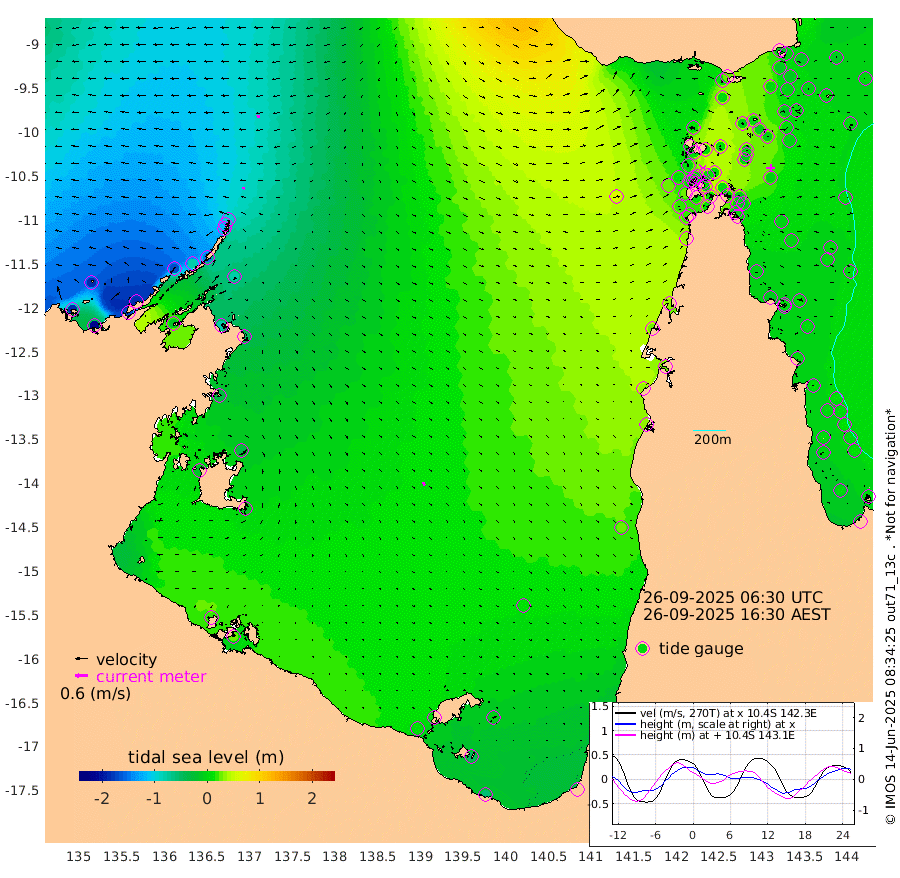 11cm/s -84T +3cm/s rms + 7cm/s -42T. ARA-GOC87 57m 17cm/s 146T +3cm/s rms + 2cm/s -2T. ARA-GOC87 60m 17cm/s -97T +2cm/s rms + 3cm/s 61T. ARA-GOC87 47m -11cm Daru -7cm Bobo Island 4cm Meer Island Barge -10cm Bramble Cay -11cm Unnamed Cay -7cm Pearce Cay -7cm Stephens Island -14cm Merrie England Shoals -14cm Mutacomal Reef 5cm Darnley Island Barge 1cm East Cay 3cm Yorke Island Barge -11cm Rennel Island 5cm Aureed Island -3cm Dungeness Reef 6cm Zagai Island 0cm Yam Island 11cm Dauan Island 26cm Saibai Island 5cm Phipi Reef 6cm Warrior Reef - West 14cm Mabuiag Island Barge -7cm Half Way Island -3cm Coconut Island -3cm Dugong Islet -2cm Poll Island -1cm Kirkcaldie Reef 12cm Suarji Island 11cm Sue Islet 4cm Hawkesbury Island 11cm Alert Patches 8cm Twin Island 5cm Badu Island 9cm St Pauls (Moa Island) 0cm Kubin (Moa Island) 10cm Ince Point 14cm Thursday Island 11cm Nardana Patches 10cm Turtle Head 2cm Round Island 11cm Goods Island 25cm Booby Island 12cm White Rocks Area 62cm Carpentaria 4cm Papou Point 25cm Bampfield Head 18cm Crab Island 21cm Red Wallis Island 8cm Packe Island -4cm Harrington Reef 17cm Herald Camp 7cm Sharp Point 12cm Red Island Point 9cm Possession Island 4cm Alpha Rock 2cm Frederick Point -14cm Wyborn Reef Light -12cm Tetley Island 6cm Triangle Reef -15cm Turtle Head Island 7cm Maclennan Cay 4cm Raine Island -4cm Mcsweeny Reef -1cm Collette Reef 4cm Shadwell Reef -4cm Hannibal Island -11cm Round Point 34cm Vrilya Point 0cm Cape Grenville -2cm Hicks Island 10cm Sir Charles Hardy Island 0cm Harvey Island 3cm Kay Reef 5cm Rocky Island 11cm Chapman Island 12cm Ham Reef 7cm Jubilee Reef 5cm Night Island 12cm Unnamed Reef No. 3 3cm Morris Island 7cm 1st 3 Mile Opening 10cm Creech Reef 1cm Fife Island 5cm Eden Reef 6cm Stanley Island -1cm Normanby River -187cm Yabooma Island -213cm Hutchison River -187cm Elcho Island -185cm North West Crocodile Island -97cm Cape Wessel -167cm Stevens Island -79cm Guluwuru Island -145cm Hopeful Bay -120cm Auster Point -127cm Two Island Bay -166cm Cadell Strait -10cm Mallison Island -82cm Melville Bay (Gove Harbour) -82cm Truant Island -47cm Cape Arnhem -32cm Cape Grey -31cm Hawk Island -17cm Milner Bay (Groote Eylandt) -15cm Cape Beatrice 18cm West Island 23cm Centre Island 3cm Mornington Island 8cm West Wellesley Islands -6cm Bountiful Island -58cm Albert River Mouth -47cm Sweers Island -48cm Karumba 13cm Nassau River Offshore 28cm Christmas Creek 30cm Archer River 37cm Boyd Point 29cm Weipa (Humbug Point) 29cm Pennefather River 36cm Cullen Point