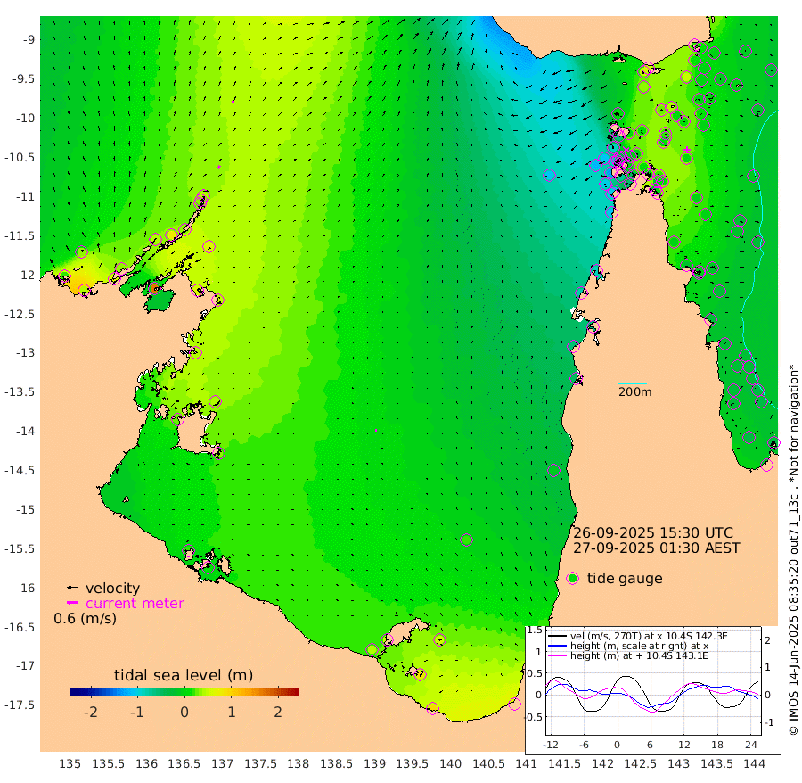 13cm/s 37T +3cm/s rms + 7cm/s -42T. ARA-GOC87 57m 6cm/s -104T +3cm/s rms + 2cm/s -2T. ARA-GOC87 60m 17cm/s 28T +2cm/s rms + 3cm/s 61T. ARA-GOC87 47m 17cm Daru 15cm Bobo Island -19cm Meer Island Barge -9cm Bramble Cay 0cm Unnamed Cay -2cm Pearce Cay -9cm Stephens Island -5cm Merrie England Shoals 13cm Mutacomal Reef -5cm Darnley Island Barge -23cm East Cay 5cm Yorke Island Barge 0cm Rennel Island 8cm Aureed Island 7cm Dungeness Reef 41cm Zagai Island 28cm Yam Island 49cm Dauan Island 54cm Saibai Island 34cm Phipi Reef 48cm Warrior Reef - West 5cm Mabuiag Island Barge -6cm Half Way Island 10cm Coconut Island 0cm Dugong Islet 14cm Poll Island 2cm Kirkcaldie Reef 11cm Suarji Island 19cm Sue Islet -89cm Hawkesbury Island -12cm Alert Patches -4cm Twin Island -59cm Badu Island 5cm St Pauls (Moa Island) -55cm Kubin (Moa Island) -20cm Ince Point -38cm Thursday Island -31cm Nardana Patches -55cm Turtle Head -73cm Round Island -90cm Goods Island -117cm Booby Island -108cm White Rocks Area -111cm Carpentaria -2cm Papou Point -128cm Bampfield Head -103cm Crab Island -104cm Red Wallis Island -73cm Packe Island -3cm Harrington Reef -102cm Herald Camp 11cm Sharp Point -57cm Red Island Point -40cm Possession Island 11cm Alpha Rock 1cm Frederick Point 13cm Wyborn Reef Light 16cm Tetley Island -10cm Triangle Reef -16cm Turtle Head Island -23cm Maclennan Cay -29cm Raine Island -3cm Mcsweeny Reef -5cm Collette Reef -16cm Shadwell Reef -6cm Hannibal Island -16cm Round Point -110cm Vrilya Point -21cm Cape Grenville -22cm Hicks Island -16cm Sir Charles Hardy Island -7cm Harvey Island -26cm Kay Reef -25cm Rocky Island -27cm Chapman Island -27cm Ham Reef -25cm Jubilee Reef -25cm Night Island -28cm Unnamed Reef No. 3 -29cm Morris Island -35cm 1st 3 Mile Opening -31cm Creech Reef -23cm Fife Island -32cm Eden Reef -34cm Stanley Island -32cm Normanby River 16cm Yabooma Island 42cm Hutchison River 34cm Elcho Island 32cm North West Crocodile Island 44cm Cape Wessel 45cm Stevens Island 78cm Guluwuru Island 32cm Hopeful Bay 29cm Auster Point 33cm Two Island Bay 63cm Cadell Strait 169cm Mallison Island 63cm Melville Bay (Gove Harbour) 62cm Truant Island 50cm Cape Arnhem 39cm Cape Grey 40cm Hawk Island 29cm Milner Bay (Groote Eylandt) 32cm Cape Beatrice 19cm West Island 11cm Centre Island 46cm Mornington Island 45cm West Wellesley Islands 58cm Bountiful Island 96cm Albert River Mouth 84cm Sweers Island 74cm Karumba 19cm Nassau River Offshore -9cm Christmas Creek -47cm Archer River -55cm Boyd Point -61cm Weipa (Humbug Point) -78cm Pennefather River -90cm Cullen Point