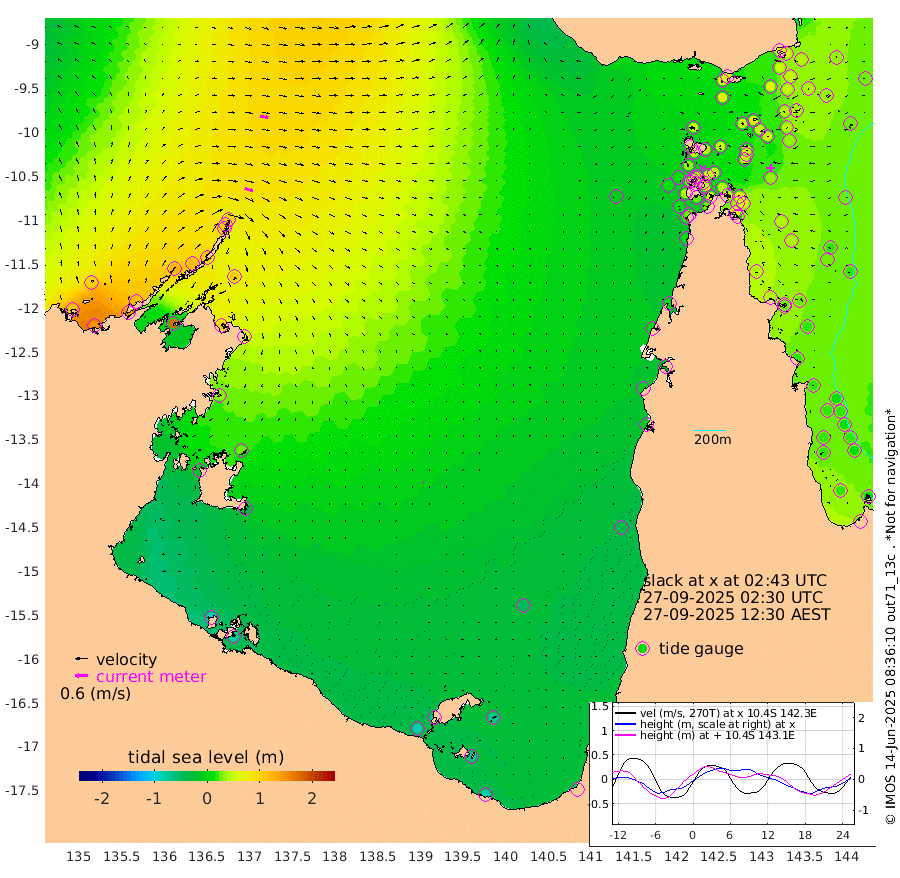 41cm/s 109T +3cm/s rms + 7cm/s -42T. ARA-GOC87 57m 4cm/s 101T +3cm/s rms + 2cm/s -2T. ARA-GOC87 60m 38cm/s 99T +2cm/s rms + 3cm/s 61T. ARA-GOC87 47m 56cm Daru 55cm Bobo Island 25cm Meer Island Barge 37cm Bramble Cay 46cm Unnamed Cay 47cm Pearce Cay 38cm Stephens Island 42cm Merrie England Shoals 50cm Mutacomal Reef 37cm Darnley Island Barge 25cm East Cay 44cm Yorke Island Barge 42cm Rennel Island 42cm Aureed Island 48cm Dungeness Reef 62cm Zagai Island 51cm Yam Island 62cm Dauan Island 57cm Saibai Island 70cm Phipi Reef 61cm Warrior Reef - West 46cm Mabuiag Island Barge 37cm Half Way Island 56cm Coconut Island 36cm Dugong Islet 49cm Poll Island 44cm Kirkcaldie Reef 46cm Suarji Island 48cm Sue Islet 37cm Hawkesbury Island 46cm Alert Patches 46cm Twin Island 51cm Badu Island 50cm St Pauls (Moa Island) 41cm Kubin (Moa Island) 40cm Ince Point 36cm Thursday Island 38cm Nardana Patches 34cm Turtle Head 46cm Round Island 27cm Goods Island 14cm Booby Island 11cm White Rocks Area -10cm Carpentaria 46cm Papou Point 40cm Bampfield Head 16cm Crab Island 9cm Red Wallis Island 29cm Packe Island 43cm Harrington Reef 27cm Herald Camp 10cm Sharp Point 29cm Red Island Point 47cm Possession Island 41cm Alpha Rock 49cm Frederick Point 61cm Wyborn Reef Light 62cm Tetley Island 29cm Triangle Reef 63cm Turtle Head Island 18cm Maclennan Cay 19cm Raine Island 40cm Mcsweeny Reef 38cm Collette Reef 28cm Shadwell Reef 42cm Hannibal Island 38cm Round Point 3cm Vrilya Point 25cm Cape Grenville 28cm Hicks Island 23cm Sir Charles Hardy Island 8cm Harvey Island 20cm Kay Reef 19cm Rocky Island 18cm Chapman Island 14cm Ham Reef 18cm Jubilee Reef 16cm Night Island 12cm Unnamed Reef No. 3 18cm Morris Island 18cm 1st 3 Mile Opening 15cm Creech Reef 16cm Fife Island 18cm Eden Reef 14cm Stanley Island 13cm Normanby River 111cm Yabooma Island 143cm Hutchison River 113cm Elcho Island 102cm North West Crocodile Island 93cm Cape Wessel 124cm Stevens Island 115cm Guluwuru Island 107cm Hopeful Bay 103cm Auster Point 102cm Two Island Bay 146cm Cadell Strait 174cm Mallison Island 103cm Melville Bay (Gove Harbour) 112cm Truant Island 73cm Cape Arnhem 37cm Cape Grey 25cm Hawk Island -17cm Milner Bay (Groote Eylandt) -35cm Cape Beatrice -83cm West Island -78cm Centre Island -65cm Mornington Island -79cm West Wellesley Islands -74cm Bountiful Island -77cm Albert River Mouth -72cm Sweers Island -72cm Karumba -51cm Nassau River Offshore -30cm Christmas Creek -8cm Archer River -4cm Boyd Point -4cm Weipa (Humbug Point) 6cm Pennefather River 0cm Cullen Point