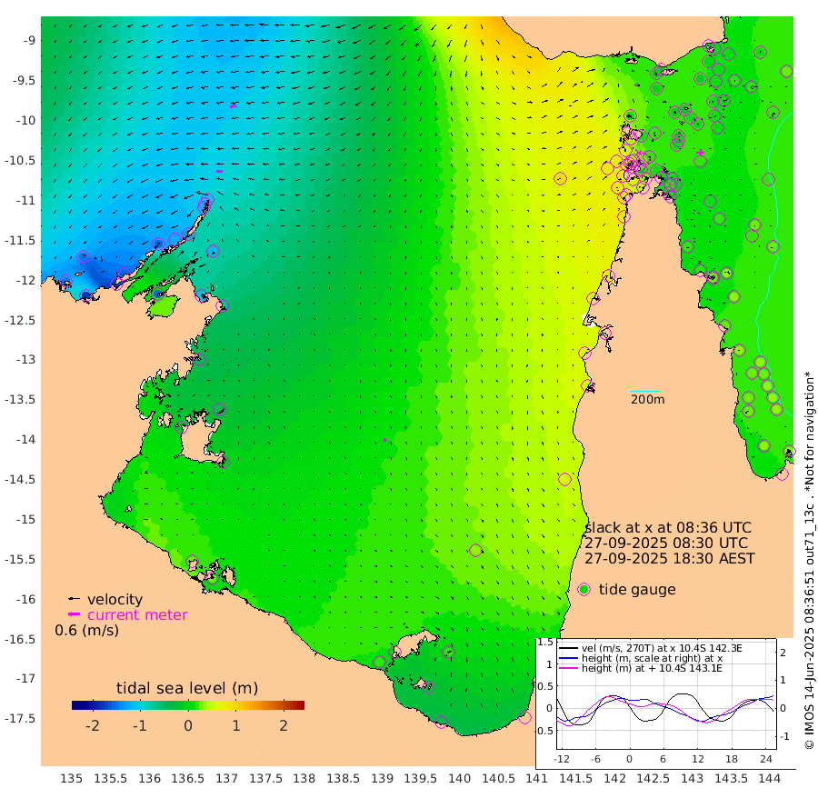 31cm/s -90T +3cm/s rms + 7cm/s -42T. ARA-GOC87 57m 18cm/s 164T +3cm/s rms + 2cm/s -2T. ARA-GOC87 60m 36cm/s -100T +2cm/s rms + 3cm/s 61T. ARA-GOC87 47m -1cm Daru 0cm Bobo Island 22cm Meer Island Barge 14cm Bramble Cay 10cm Unnamed Cay 13cm Pearce Cay 16cm Stephens Island 12cm Merrie England Shoals 4cm Mutacomal Reef 18cm Darnley Island Barge 26cm East Cay 12cm Yorke Island Barge 12cm Rennel Island 14cm Aureed Island 11cm Dungeness Reef -11cm Zagai Island -3cm Yam Island -9cm Dauan Island -5cm Saibai Island -4cm Phipi Reef -8cm Warrior Reef - West 14cm Mabuiag Island Barge 15cm Half Way Island 4cm Coconut Island 18cm Dugong Islet 5cm Poll Island 13cm Kirkcaldie Reef 18cm Suarji Island 9cm Sue Islet 59cm Hawkesbury Island 27cm Alert Patches 19cm Twin Island 39cm Badu Island 13cm St Pauls (Moa Island) 38cm Kubin (Moa Island) 28cm Ince Point 38cm Thursday Island 34cm Nardana Patches 47cm Turtle Head 42cm Round Island 64cm Goods Island 82cm Booby Island 76cm White Rocks Area 91cm Carpentaria 10cm Papou Point 77cm Bampfield Head 63cm Crab Island 77cm Red Wallis Island 56cm Packe Island 17cm Harrington Reef 72cm Herald Camp 1cm Sharp Point 46cm Red Island Point 30cm Possession Island 10cm Alpha Rock 15cm Frederick Point -2cm Wyborn Reef Light -3cm Tetley Island 20cm Triangle Reef 8cm Turtle Head Island 30cm Maclennan Cay 26cm Raine Island 15cm Mcsweeny Reef 16cm Collette Reef 21cm Shadwell Reef 15cm Hannibal Island 18cm Round Point 73cm Vrilya Point 27cm Cape Grenville 23cm Hicks Island 32cm Sir Charles Hardy Island 8cm Harvey Island 31cm Kay Reef 30cm Rocky Island 33cm Chapman Island 33cm Ham Reef 28cm Jubilee Reef 27cm Night Island 35cm Unnamed Reef No. 3 30cm Morris Island 32cm 1st 3 Mile Opening 34cm Creech Reef 27cm Fife Island 33cm Eden Reef 34cm Stanley Island 33cm Normanby River -143cm Yabooma Island -178cm Hutchison River -154cm Elcho Island -147cm North West Crocodile Island -110cm Cape Wessel -155cm Stevens Island -122cm Guluwuru Island -130cm Hopeful Bay -117cm Auster Point -125cm Two Island Bay -170cm Cadell Strait -150cm Mallison Island -109cm Melville Bay (Gove Harbour) -114cm Truant Island -76cm Cape Arnhem -50cm Cape Grey -44cm Hawk Island -26cm Milner Bay (Groote Eylandt) -14cm Cape Beatrice 24cm West Island 25cm Centre Island 12cm Mornington Island 21cm West Wellesley Islands 18cm Bountiful Island -38cm Albert River Mouth -31cm Sweers Island -21cm Karumba 37cm Nassau River Offshore 53cm Christmas Creek 60cm Archer River 62cm Boyd Point 65cm Weipa (Humbug Point) 54cm Pennefather River 70cm Cullen Point