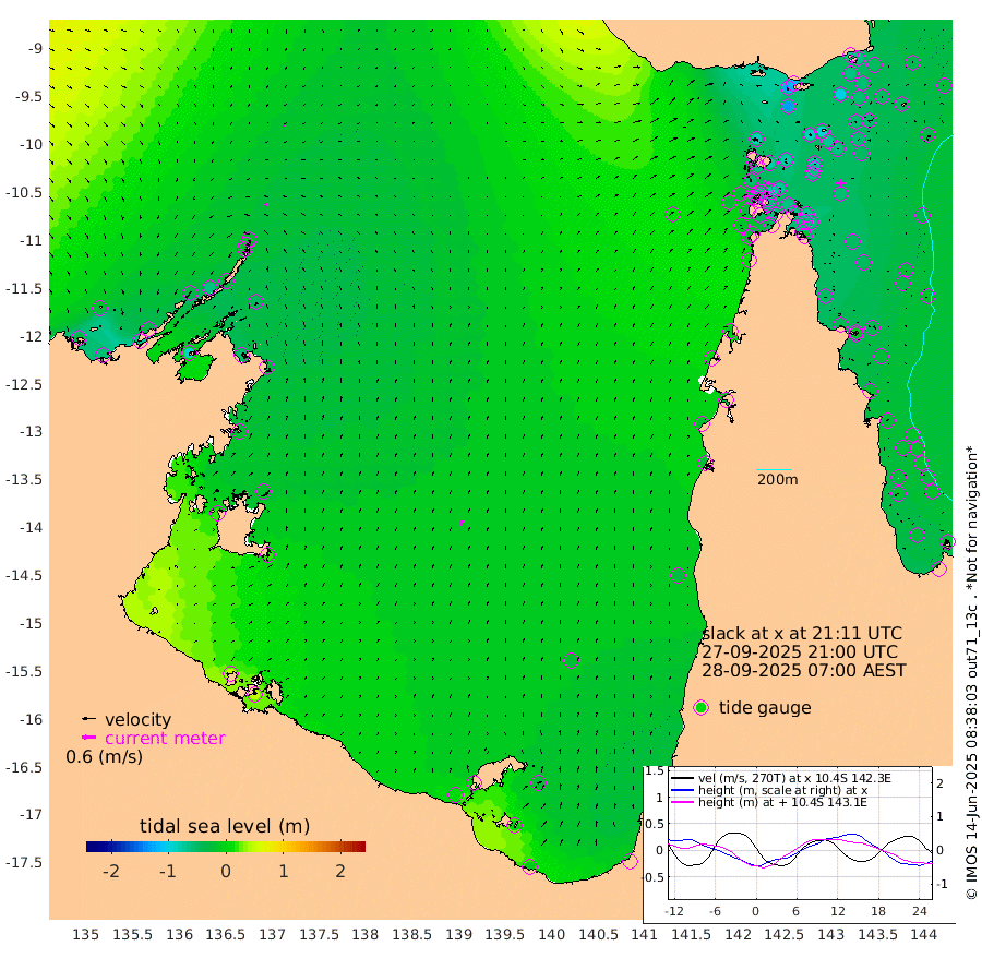 11cm/s -48T +3cm/s rms + 7cm/s -42T. ARA-GOC87 57m 24cm/s 5T +3cm/s rms + 2cm/s -2T. ARA-GOC87 60m 4cm/s -60T +2cm/s rms + 3cm/s 61T. ARA-GOC87 47m -72cm Daru -63cm Bobo Island -32cm Meer Island Barge -42cm Bramble Cay -57cm Unnamed Cay -58cm Pearce Cay -46cm Stephens Island -48cm Merrie England Shoals -63cm Mutacomal Reef -48cm Darnley Island Barge -30cm East Cay -59cm Yorke Island Barge -55cm Rennel Island -58cm Aureed Island -72cm Dungeness Reef -90cm Zagai Island -83cm Yam Island -122cm Dauan Island -113cm Saibai Island -129cm Phipi Reef -105cm Warrior Reef - West -83cm Mabuiag Island Barge -48cm Half Way Island -67cm Coconut Island -56cm Dugong Islet -71cm Poll Island -67cm Kirkcaldie Reef -82cm Suarji Island -76cm Sue Islet -58cm Hawkesbury Island -75cm Alert Patches -70cm Twin Island -77cm Badu Island -81cm St Pauls (Moa Island) -61cm Kubin (Moa Island) -68cm Ince Point -61cm Thursday Island -65cm Nardana Patches -63cm Turtle Head -55cm Round Island -50cm Goods Island -29cm Booby Island -24cm White Rocks Area 11cm Carpentaria -65cm Papou Point -33cm Bampfield Head -16cm Crab Island -21cm Red Wallis Island -47cm Packe Island -55cm Harrington Reef -44cm Herald Camp -22cm Sharp Point -51cm Red Island Point -61cm Possession Island -61cm Alpha Rock -67cm Frederick Point -67cm Wyborn Reef Light -69cm Tetley Island -38cm Triangle Reef -62cm Turtle Head Island -29cm Maclennan Cay -22cm Raine Island -50cm Mcsweeny Reef -48cm Collette Reef -36cm Shadwell Reef -49cm Hannibal Island -39cm Round Point 1cm Vrilya Point -31cm Cape Grenville -34cm Hicks Island -41cm Sir Charles Hardy Island -9cm Harvey Island -26cm Kay Reef -28cm Rocky Island -25cm Chapman Island -21cm Ham Reef -26cm Jubilee Reef -20cm Night Island -18cm Unnamed Reef No. 3 -24cm Morris Island -25cm 1st 3 Mile Opening -22cm Creech Reef -19cm Fife Island -25cm Eden Reef -19cm Stanley Island -17cm Normanby River -30cm Yabooma Island -56cm Hutchison River -32cm Elcho Island -29cm North West Crocodile Island -20cm Cape Wessel -32cm Stevens Island -61cm Guluwuru Island -28cm Hopeful Bay -25cm Auster Point -22cm Two Island Bay -61cm Cadell Strait -96cm Mallison Island -53cm Melville Bay (Gove Harbour) -51cm Truant Island -37cm Cape Arnhem -25cm Cape Grey -16cm Hawk Island 20cm Milner Bay (Groote Eylandt) 20cm Cape Beatrice 46cm West Island 50cm Centre Island -1cm Mornington Island 7cm West Wellesley Islands -29cm Bountiful Island -9cm Albert River Mouth -6cm Sweers Island -15cm Karumba -24cm Nassau River Offshore -36cm Christmas Creek -29cm Archer River -25cm Boyd Point -32cm Weipa (Humbug Point) -6cm Pennefather River -8cm Cullen Point