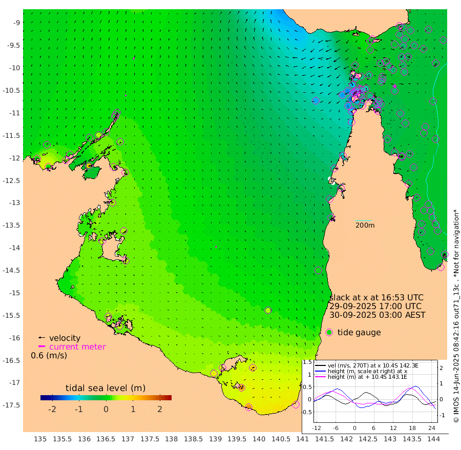 14cm/s 16T +3cm/s rms + 7cm/s -42T. ARA-GOC87 57m 12cm/s -56T +3cm/s rms + 2cm/s -2T. ARA-GOC87 60m 19cm/s 21T +2cm/s rms + 3cm/s 61T. ARA-GOC87 47m -44cm Daru -45cm Bobo Island -31cm Meer Island Barge -38cm Bramble Cay -45cm Unnamed Cay -54cm Pearce Cay -49cm Stephens Island -48cm Merrie England Shoals -50cm Mutacomal Reef -36cm Darnley Island Barge -39cm East Cay -38cm Yorke Island Barge -54cm Rennel Island -48cm Aureed Island -52cm Dungeness Reef -31cm Zagai Island -44cm Yam Island -17cm Dauan Island -8cm Saibai Island -20cm Phipi Reef -29cm Warrior Reef - West -49cm Mabuiag Island Barge -56cm Half Way Island -57cm Coconut Island -57cm Dugong Islet -57cm Poll Island -58cm Kirkcaldie Reef -66cm Suarji Island -41cm Sue Islet -119cm Hawkesbury Island -76cm Alert Patches -75cm Twin Island -97cm Badu Island -69cm St Pauls (Moa Island) -104cm Kubin (Moa Island) -81cm Ince Point -92cm Thursday Island -87cm Nardana Patches -99cm Turtle Head -110cm Round Island -119cm Goods Island -134cm Booby Island -136cm White Rocks Area -124cm Carpentaria -65cm Papou Point -152cm Bampfield Head -110cm Crab Island -133cm Red Wallis Island -123cm Packe Island -71cm Harrington Reef -129cm Herald Camp -9cm Sharp Point -87cm Red Island Point -88cm Possession Island -61cm Alpha Rock -71cm Frederick Point -57cm Wyborn Reef Light -58cm Tetley Island -36cm Triangle Reef -72cm Turtle Head Island -40cm Maclennan Cay -31cm Raine Island -47cm Mcsweeny Reef -39cm Collette Reef -29cm Shadwell Reef -41cm Hannibal Island -48cm Round Point -107cm Vrilya Point -44cm Cape Grenville -41cm Hicks Island -38cm Sir Charles Hardy Island -13cm Harvey Island -38cm Kay Reef -32cm Rocky Island -33cm Chapman Island -30cm Ham Reef -30cm Jubilee Reef -35cm Night Island -35cm Unnamed Reef No. 3 -35cm Morris Island -35cm 1st 3 Mile Opening -35cm Creech Reef -38cm Fife Island -32cm Eden Reef -35cm Stanley Island -39cm Normanby River -4cm Yabooma Island 10cm Hutchison River 11cm Elcho Island 12cm North West Crocodile Island 7cm Cape Wessel 13cm Stevens Island 45cm Guluwuru Island 13cm Hopeful Bay 5cm Auster Point 8cm Two Island Bay 33cm Cadell Strait 117cm Mallison Island 32cm Melville Bay (Gove Harbour) 26cm Truant Island 27cm Cape Arnhem 38cm Cape Grey 39cm Hawk Island 46cm Milner Bay (Groote Eylandt) 48cm Cape Beatrice 48cm West Island 45cm Centre Island 80cm Mornington Island 79cm West Wellesley Islands 104cm Bountiful Island 148cm Albert River Mouth 151cm Sweers Island 131cm Karumba 41cm Nassau River Offshore 3cm Christmas Creek -35cm Archer River -55cm Boyd Point -58cm Weipa (Humbug Point) -67cm Pennefather River -95cm Cullen Point