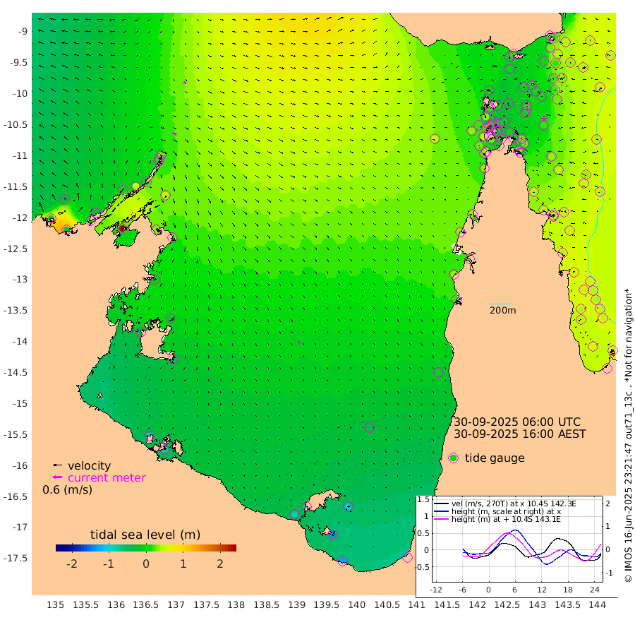 26cm/s 115T +3cm/s rms + 7cm/s -42T. ARA-GOC87 57m 23cm/s 154T +3cm/s rms + 2cm/s -2T. ARA-GOC87 60m 17cm/s 115T +2cm/s rms + 3cm/s 61T. ARA-GOC87 47m 23cm Daru 19cm Bobo Island 45cm Meer Island Barge 41cm Bramble Cay 38cm Unnamed Cay 21cm Pearce Cay 32cm Stephens Island 39cm Merrie England Shoals 27cm Mutacomal Reef 42cm Darnley Island Barge 39cm East Cay 34cm Yorke Island Barge 20cm Rennel Island 19cm Aureed Island 13cm Dungeness Reef 9cm Zagai Island 6cm Yam Island 15cm Dauan Island 20cm Saibai Island 1cm Phipi Reef 7cm Warrior Reef - West 9cm Mabuiag Island Barge 23cm Half Way Island 14cm Coconut Island 18cm Dugong Islet 7cm Poll Island 9cm Kirkcaldie Reef -10cm Suarji Island 18cm Sue Islet 32cm Hawkesbury Island 5cm Alert Patches 3cm Twin Island 24cm Badu Island 1cm St Pauls (Moa Island) 22cm Kubin (Moa Island) 7cm Ince Point 11cm Thursday Island 10cm Nardana Patches 17cm Turtle Head 25cm Round Island 29cm Goods Island 36cm Booby Island 22cm White Rocks Area 47cm Carpentaria -2cm Papou Point 51cm Bampfield Head 28cm Crab Island 30cm Red Wallis Island 27cm Packe Island 8cm Harrington Reef 39cm Herald Camp -3cm Sharp Point 3cm Red Island Point 7cm Possession Island 13cm Alpha Rock 7cm Frederick Point 26cm Wyborn Reef Light 23cm Tetley Island 38cm Triangle Reef 25cm Turtle Head Island 37cm Maclennan Cay 42cm Raine Island 32cm Mcsweeny Reef 38cm Collette Reef 46cm Shadwell Reef 43cm Hannibal Island 40cm Round Point 36cm Vrilya Point 42cm Cape Grenville 38cm Hicks Island 52cm Sir Charles Hardy Island 12cm Harvey Island 49cm Kay Reef 44cm Rocky Island 48cm Chapman Island 47cm Ham Reef 47cm Jubilee Reef 39cm Night Island 45cm Unnamed Reef No. 3 44cm Morris Island 47cm 1st 3 Mile Opening 46cm Creech Reef 38cm Fife Island 56cm Eden Reef 51cm Stanley Island 44cm Normanby River -13cm Yabooma Island -15cm Hutchison River -19cm Elcho Island -30cm North West Crocodile Island 23cm Cape Wessel 7cm Stevens Island 57cm Guluwuru Island 8cm Hopeful Bay 13cm Auster Point 18cm Two Island Bay 21cm Cadell Strait 227cm Mallison Island 37cm Melville Bay (Gove Harbour) 46cm Truant Island 31cm Cape Arnhem -1cm Cape Grey -12cm Hawk Island -42cm Milner Bay (Groote Eylandt) -51cm Cape Beatrice -75cm West Island -74cm Centre Island -78cm Mornington Island -76cm West Wellesley Islands -96cm Bountiful Island -132cm Albert River Mouth -138cm Sweers Island -132cm Karumba -44cm Nassau River Offshore -5cm Christmas Creek 20cm Archer River 32cm Boyd Point 30cm Weipa (Humbug Point) 31cm Pennefather River 37cm Cullen Point