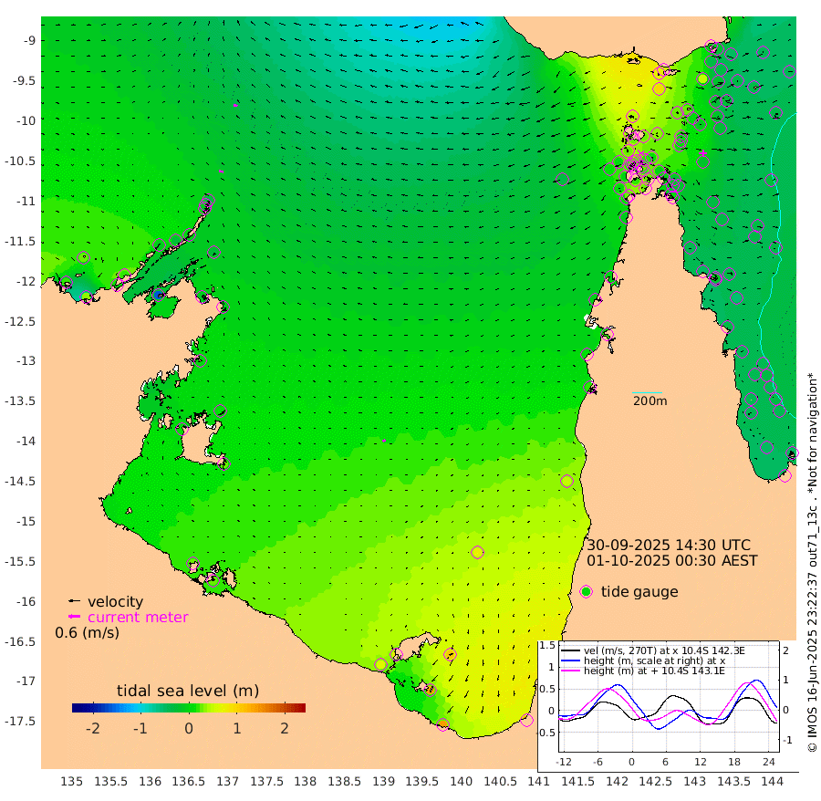 22cm/s -83T +3cm/s rms + 7cm/s -42T. ARA-GOC87 57m 16cm/s -121T +3cm/s rms + 2cm/s -2T. ARA-GOC87 60m 20cm/s -78T +2cm/s rms + 3cm/s 61T. ARA-GOC87 47m -14cm Daru -21cm Bobo Island -34cm Meer Island Barge -42cm Bramble Cay -37cm Unnamed Cay -22cm Pearce Cay -34cm Stephens Island -50cm Merrie England Shoals -32cm Mutacomal Reef -34cm Darnley Island Barge -39cm East Cay -24cm Yorke Island Barge -23cm Rennel Island -17cm Aureed Island 4cm Dungeness Reef 27cm Zagai Island 26cm Yam Island 81cm Dauan Island 59cm Saibai Island 91cm Phipi Reef 45cm Warrior Reef - West 41cm Mabuiag Island Barge -26cm Half Way Island -13cm Coconut Island -17cm Dugong Islet 6cm Poll Island 2cm Kirkcaldie Reef 33cm Suarji Island 3cm Sue Islet 25cm Hawkesbury Island 19cm Alert Patches 14cm Twin Island 37cm Badu Island 30cm St Pauls (Moa Island) 29cm Kubin (Moa Island) 24cm Ince Point 22cm Thursday Island 25cm Nardana Patches 29cm Turtle Head 24cm Round Island 22cm Goods Island 9cm Booby Island 4cm White Rocks Area -34cm Carpentaria 20cm Papou Point -6cm Bampfield Head 5cm Crab Island 3cm Red Wallis Island 16cm Packe Island -22cm Harrington Reef 24cm Herald Camp 11cm Sharp Point 25cm Red Island Point 23cm Possession Island -5cm Alpha Rock -1cm Frederick Point -29cm Wyborn Reef Light -24cm Tetley Island -26cm Triangle Reef -26cm Turtle Head Island -30cm Maclennan Cay -33cm Raine Island -33cm Mcsweeny Reef -37cm Collette Reef -34cm Shadwell Reef -44cm Hannibal Island -46cm Round Point -13cm Vrilya Point -46cm Cape Grenville -34cm Hicks Island -37cm Sir Charles Hardy Island -11cm Harvey Island -53cm Kay Reef -35cm Rocky Island -41cm Chapman Island -39cm Ham Reef -38cm Jubilee Reef -33cm Night Island -43cm Unnamed Reef No. 3 -39cm Morris Island -33cm 1st 3 Mile Opening -38cm Creech Reef -41cm Fife Island -46cm Eden Reef -47cm Stanley Island -50cm Normanby River 16cm Yabooma Island 32cm Hutchison River 22cm Elcho Island 30cm North West Crocodile Island -32cm Cape Wessel -12cm Stevens Island -26cm Guluwuru Island -7cm Hopeful Bay -15cm Auster Point -11cm Two Island Bay 9cm Cadell Strait -165cm Mallison Island -14cm Melville Bay (Gove Harbour) -25cm Truant Island -13cm Cape Arnhem 4cm Cape Grey 15cm Hawk Island 11cm Milner Bay (Groote Eylandt) 23cm Cape Beatrice 26cm West Island 24cm Centre Island 76cm Mornington Island 66cm West Wellesley Islands 112cm Bountiful Island 135cm Albert River Mouth 133cm Sweers Island 143cm Karumba 71cm Nassau River Offshore 49cm Christmas Creek 21cm Archer River 10cm Boyd Point 22cm Weipa (Humbug Point) -6cm Pennefather River -1cm Cullen Point