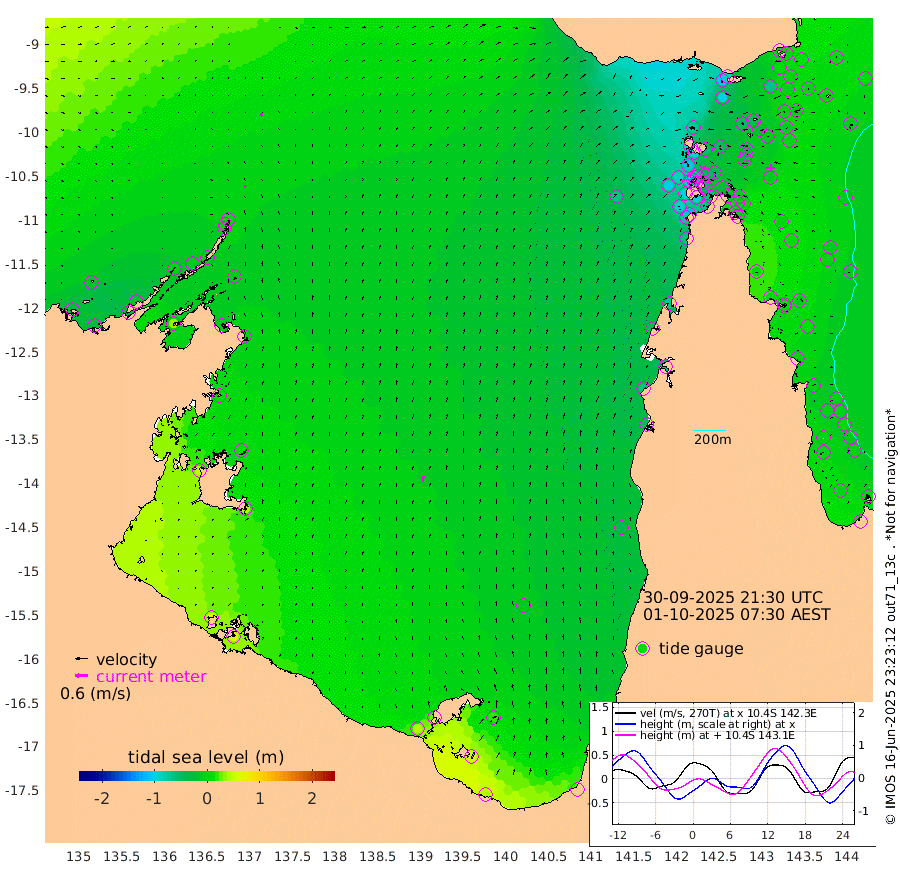 14cm/s 9T +3cm/s rms + 7cm/s -42T. ARA-GOC87 57m 29cm/s 4T +3cm/s rms + 2cm/s -2T. ARA-GOC87 60m 13cm/s 36T +2cm/s rms + 3cm/s 61T. ARA-GOC87 47m -13cm Daru -3cm Bobo Island -8cm Meer Island Barge 3cm Bramble Cay 0cm Unnamed Cay -7cm Pearce Cay -1cm Stephens Island 13cm Merrie England Shoals 2cm Mutacomal Reef -6cm Darnley Island Barge 1cm East Cay -10cm Yorke Island Barge -5cm Rennel Island -9cm Aureed Island -29cm Dungeness Reef -47cm Zagai Island -49cm Yam Island -110cm Dauan Island -85cm Saibai Island -103cm Phipi Reef -64cm Warrior Reef - West -73cm Mabuiag Island Barge -6cm Half Way Island -12cm Coconut Island -14cm Dugong Islet -31cm Poll Island -27cm Kirkcaldie Reef -48cm Suarji Island -29cm Sue Islet -105cm Hawkesbury Island -50cm Alert Patches -44cm Twin Island -104cm Badu Island -59cm St Pauls (Moa Island) -96cm Kubin (Moa Island) -64cm Ince Point -71cm Thursday Island -71cm Nardana Patches -89cm Turtle Head -93cm Round Island -102cm Goods Island -102cm Booby Island -85cm White Rocks Area -62cm Carpentaria -45cm Papou Point -101cm Bampfield Head -80cm Crab Island -91cm Red Wallis Island -95cm Packe Island -3cm Harrington Reef -115cm Herald Camp -11cm Sharp Point -64cm Red Island Point -62cm Possession Island -26cm Alpha Rock -27cm Frederick Point -4cm Wyborn Reef Light -10cm Tetley Island -13cm Triangle Reef -13cm Turtle Head Island -10cm Maclennan Cay -8cm Raine Island -1cm Mcsweeny Reef 1cm Collette Reef -7cm Shadwell Reef 5cm Hannibal Island 6cm Round Point -65cm Vrilya Point 5cm Cape Grenville -5cm Hicks Island -14cm Sir Charles Hardy Island -1cm Harvey Island 9cm Kay Reef -6cm Rocky Island -3cm Chapman Island -4cm Ham Reef -6cm Jubilee Reef -6cm Night Island 0cm Unnamed Reef No. 3 -3cm Morris Island -15cm 1st 3 Mile Opening -7cm Creech Reef 3cm Fife Island -5cm Eden Reef 0cm Stanley Island 8cm Normanby River -23cm Yabooma Island -35cm Hutchison River -20cm Elcho Island -17cm North West Crocodile Island 7cm Cape Wessel -1cm Stevens Island -13cm Guluwuru Island -3cm Hopeful Bay -3cm Auster Point -14cm Two Island Bay -30cm Cadell Strait 30cm Mallison Island -12cm Melville Bay (Gove Harbour) -11cm Truant Island -7cm Cape Arnhem 12cm Cape Grey 13cm Hawk Island 46cm Milner Bay (Groote Eylandt) 42cm Cape Beatrice 64cm West Island 65cm Centre Island 30cm Mornington Island 38cm West Wellesley Islands 18cm Bountiful Island 38cm Albert River Mouth 54cm Sweers Island 27cm Karumba -13cm Nassau River Offshore -41cm Christmas Creek -51cm Archer River -61cm Boyd Point -73cm Weipa (Humbug Point) -47cm Pennefather River -73cm Cullen Point