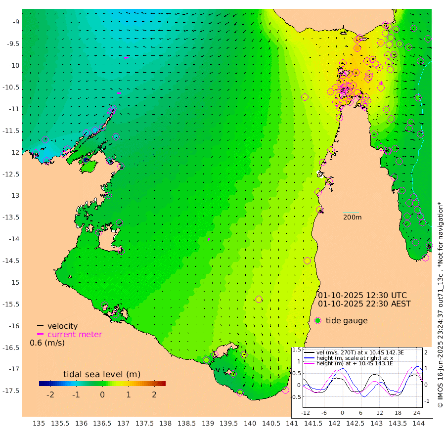 38cm/s -92T +3cm/s rms + 7cm/s -42T. ARA-GOC87 57m 23cm/s -167T +3cm/s rms + 2cm/s -2T. ARA-GOC87 60m 42cm/s -96T +2cm/s rms + 3cm/s 61T. ARA-GOC87 47m 57cm Daru 48cm Bobo Island -4cm Meer Island Barge 10cm Bramble Cay 31cm Unnamed Cay 47cm Pearce Cay 28cm Stephens Island 26cm Merrie England Shoals 55cm Mutacomal Reef 15cm Darnley Island Barge 4cm East Cay 34cm Yorke Island Barge 52cm Rennel Island 52cm Aureed Island 73cm Dungeness Reef 83cm Zagai Island 92cm Yam Island 114cm Dauan Island 94cm Saibai Island 124cm Phipi Reef 104cm Warrior Reef - West 98cm Mabuiag Island Barge 46cm Half Way Island 68cm Coconut Island 61cm Dugong Islet 85cm Poll Island 79cm Kirkcaldie Reef 117cm Suarji Island 71cm Sue Islet 107cm Hawkesbury Island 109cm Alert Patches 105cm Twin Island 104cm Badu Island 113cm St Pauls (Moa Island) 108cm Kubin (Moa Island) 108cm Ince Point 107cm Thursday Island 108cm Nardana Patches 111cm Turtle Head 103cm Round Island 101cm Goods Island 92cm Booby Island 97cm White Rocks Area 54cm Carpentaria 91cm Papou Point 89cm Bampfield Head 72cm Crab Island 98cm Red Wallis Island 115cm Packe Island 72cm Harrington Reef 110cm Herald Camp 33cm Sharp Point 95cm Red Island Point 101cm Possession Island 84cm Alpha Rock 91cm Frederick Point 58cm Wyborn Reef Light 66cm Tetley Island 18cm Triangle Reef 53cm Turtle Head Island 10cm Maclennan Cay -9cm Raine Island 34cm Mcsweeny Reef 23cm Collette Reef 2cm Shadwell Reef 19cm Hannibal Island 16cm Round Point 56cm Vrilya Point 11cm Cape Grenville 8cm Hicks Island 8cm Sir Charles Hardy Island 4cm Harvey Island -4cm Kay Reef -3cm Rocky Island -5cm Chapman Island -9cm Ham Reef -9cm Jubilee Reef 2cm Night Island -5cm Unnamed Reef No. 3 -5cm Morris Island -9cm 1st 3 Mile Opening -6cm Creech Reef 1cm Fife Island -19cm Eden Reef -12cm Stanley Island -11cm Normanby River -74cm Yabooma Island -81cm Hutchison River -76cm Elcho Island -65cm North West Crocodile Island -84cm Cape Wessel -91cm Stevens Island -101cm Guluwuru Island -79cm Hopeful Bay -81cm Auster Point -85cm Two Island Bay -102cm Cadell Strait -203cm Mallison Island -77cm Melville Bay (Gove Harbour) -85cm Truant Island -56cm Cape Arnhem -43cm Cape Grey -20cm Hawk Island -26cm Milner Bay (Groote Eylandt) -7cm Cape Beatrice 12cm West Island 10cm Centre Island 43cm Mornington Island 36cm West Wellesley Islands 51cm Bountiful Island 32cm Albert River Mouth 26cm Sweers Island 55cm Karumba 66cm Nassau River Offshore 69cm Christmas Creek 56cm Archer River 55cm Boyd Point 63cm Weipa (Humbug Point) 41cm Pennefather River 64cm Cullen Point