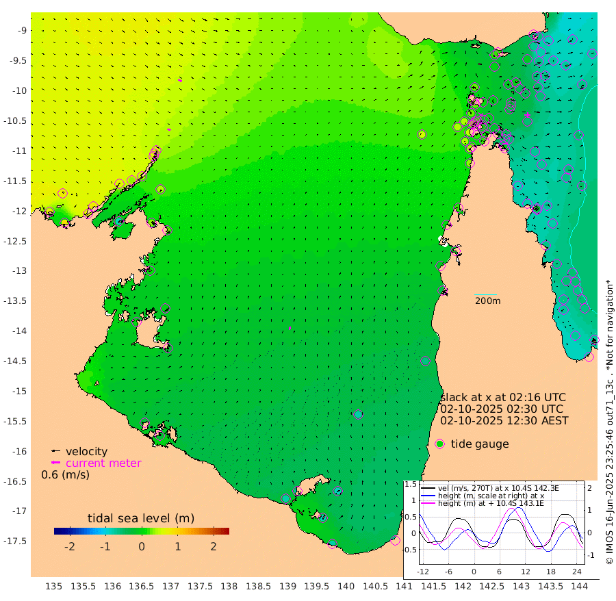 22cm/s 116T +3cm/s rms + 7cm/s -42T. ARA-GOC87 57m 22cm/s 17T +3cm/s rms + 2cm/s -2T. ARA-GOC87 60m 27cm/s 114T +2cm/s rms + 3cm/s 61T. ARA-GOC87 47m -61cm Daru -54cm Bobo Island -61cm Meer Island Barge -76cm Bramble Cay -78cm Unnamed Cay -60cm Pearce Cay -70cm Stephens Island -89cm Merrie England Shoals -74cm Mutacomal Reef -69cm Darnley Island Barge -68cm East Cay -61cm Yorke Island Barge -64cm Rennel Island -52cm Aureed Island -44cm Dungeness Reef -3cm Zagai Island -8cm Yam Island 18cm Dauan Island 16cm Saibai Island -2cm Phipi Reef -12cm Warrior Reef - West 26cm Mabuiag Island Barge -59cm Half Way Island -40cm Coconut Island -55cm Dugong Islet -24cm Poll Island -34cm Kirkcaldie Reef -1cm Suarji Island -29cm Sue Islet 26cm Hawkesbury Island -9cm Alert Patches -3cm Twin Island 40cm Badu Island 8cm St Pauls (Moa Island) 28cm Kubin (Moa Island) 10cm Ince Point 19cm Thursday Island 17cm Nardana Patches 18cm Turtle Head 25cm Round Island 31cm Goods Island 44cm Booby Island 42cm White Rocks Area 53cm Carpentaria 15cm Papou Point 46cm Bampfield Head 39cm Crab Island 40cm Red Wallis Island 20cm Packe Island -51cm Harrington Reef 26cm Herald Camp -1cm Sharp Point 19cm Red Island Point 10cm Possession Island -18cm Alpha Rock -24cm Frederick Point -57cm Wyborn Reef Light -48cm Tetley Island -50cm Triangle Reef -49cm Turtle Head Island -55cm Maclennan Cay -52cm Raine Island -69cm Mcsweeny Reef -74cm Collette Reef -66cm Shadwell Reef -83cm Hannibal Island -80cm Round Point 34cm Vrilya Point -78cm Cape Grenville -65cm Hicks Island -68cm Sir Charles Hardy Island -22cm Harvey Island -80cm Kay Reef -64cm Rocky Island -63cm Chapman Island -59cm Ham Reef -60cm Jubilee Reef -57cm Night Island -61cm Unnamed Reef No. 3 -66cm Morris Island -54cm 1st 3 Mile Opening -61cm Creech Reef -68cm Fife Island -75cm Eden Reef -74cm Stanley Island -77cm Normanby River 77cm Yabooma Island 88cm Hutchison River 80cm Elcho Island 77cm North West Crocodile Island 60cm Cape Wessel 63cm Stevens Island 35cm Guluwuru Island 47cm Hopeful Bay 60cm Auster Point 64cm Two Island Bay 68cm Cadell Strait -86cm Mallison Island 32cm Melville Bay (Gove Harbour) 41cm Truant Island 23cm Cape Arnhem 10cm Cape Grey -7cm Hawk Island 0cm Milner Bay (Groote Eylandt) -16cm Cape Beatrice -28cm West Island -25cm Centre Island -74cm Mornington Island -78cm West Wellesley Islands -84cm Bountiful Island -76cm Albert River Mouth -83cm Sweers Island -86cm Karumba -79cm Nassau River Offshore -65cm Christmas Creek -34cm Archer River -11cm Boyd Point -13cm Weipa (Humbug Point) 1cm Pennefather River 22cm Cullen Point