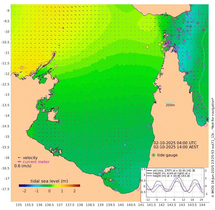 31cm/s 117T +3cm/s rms + 7cm/s -42T. ARA-GOC87 57m 10cm/s 41T +3cm/s rms + 2cm/s -2T. ARA-GOC87 60m 32cm/s 115T +2cm/s rms + 3cm/s 61T. ARA-GOC87 47m -75cm Daru -69cm Bobo Island -36cm Meer Island Barge -63cm Bramble Cay -77cm Unnamed Cay -68cm Pearce Cay -67cm Stephens Island -88cm Merrie England Shoals -89cm Mutacomal Reef -57cm Darnley Island Barge -49cm East Cay -61cm Yorke Island Barge -74cm Rennel Island -64cm Aureed Island -60cm Dungeness Reef -31cm Zagai Island -36cm Yam Island 3cm Dauan Island -1cm Saibai Island -24cm Phipi Reef -39cm Warrior Reef - West 3cm Mabuiag Island Barge -66cm Half Way Island -65cm Coconut Island -67cm Dugong Islet -52cm Poll Island -57cm Kirkcaldie Reef -43cm Suarji Island -50cm Sue Islet 31cm Hawkesbury Island -41cm Alert Patches -37cm Twin Island 36cm Badu Island -27cm St Pauls (Moa Island) 22cm Kubin (Moa Island) -15cm Ince Point -1cm Thursday Island -4cm Nardana Patches 9cm Turtle Head 20cm Round Island 37cm Goods Island 57cm Booby Island 43cm White Rocks Area 63cm Carpentaria -17cm Papou Point 54cm Bampfield Head 47cm Crab Island 45cm Red Wallis Island 18cm Packe Island -77cm Harrington Reef 36cm Herald Camp -15cm Sharp Point 4cm Red Island Point -14cm Possession Island -47cm Alpha Rock -55cm Frederick Point -77cm Wyborn Reef Light -72cm Tetley Island -37cm Triangle Reef -64cm Turtle Head Island -36cm Maclennan Cay -24cm Raine Island -70cm Mcsweeny Reef -69cm Collette Reef -44cm Shadwell Reef -75cm Hannibal Island -70cm Round Point 46cm Vrilya Point -63cm Cape Grenville -48cm Hicks Island -42cm Sir Charles Hardy Island -17cm Harvey Island -56cm Kay Reef -38cm Rocky Island -35cm Chapman Island -30cm Ham Reef -31cm Jubilee Reef -35cm Night Island -35cm Unnamed Reef No. 3 -39cm Morris Island -22cm 1st 3 Mile Opening -32cm Creech Reef -46cm Fife Island -36cm Eden Reef -42cm Stanley Island -49cm Normanby River 94cm Yabooma Island 106cm Hutchison River 93cm Elcho Island 85cm North West Crocodile Island 72cm Cape Wessel 77cm Stevens Island 67cm Guluwuru Island 64cm Hopeful Bay 74cm Auster Point 85cm Two Island Bay 98cm Cadell Strait 4cm Mallison Island 54cm Melville Bay (Gove Harbour) 63cm Truant Island 37cm Cape Arnhem 11cm Cape Grey -12cm Hawk Island -19cm Milner Bay (Groote Eylandt) -36cm Cape Beatrice -62cm West Island -59cm Centre Island -97cm Mornington Island -98cm West Wellesley Islands -104cm Bountiful Island -104cm Albert River Mouth -119cm Sweers Island -117cm Karumba -82cm Nassau River Offshore -54cm Christmas Creek -16cm Archer River 8cm Boyd Point 10cm Weipa (Humbug Point) 14cm Pennefather River 37cm Cullen Point