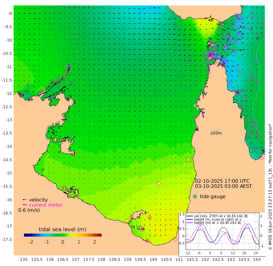 16cm/s -65T +3cm/s rms + 7cm/s -42T. ARA-GOC87 57m 15cm/s -89T +3cm/s rms + 2cm/s -2T. ARA-GOC87 60m 14cm/s -48T +2cm/s rms + 3cm/s 61T. ARA-GOC87 47m -100cm Daru -99cm Bobo Island -47cm Meer Island Barge -77cm Bramble Cay -99cm Unnamed Cay -94cm Pearce Cay -89cm Stephens Island -107cm Merrie England Shoals -116cm Mutacomal Reef -75cm Darnley Island Barge -60cm East Cay -84cm Yorke Island Barge -98cm Rennel Island -89cm Aureed Island -86cm Dungeness Reef -72cm Zagai Island -80cm Yam Island -19cm Dauan Island -30cm Saibai Island -15cm Phipi Reef -63cm Warrior Reef - West -51cm Mabuiag Island Barge -98cm Half Way Island -106cm Coconut Island -101cm Dugong Islet -95cm Poll Island -97cm Kirkcaldie Reef -85cm Suarji Island -87cm Sue Islet -53cm Hawkesbury Island -89cm Alert Patches -96cm Twin Island -49cm Badu Island -86cm St Pauls (Moa Island) -59cm Kubin (Moa Island) -77cm Ince Point -73cm Thursday Island -72cm Nardana Patches -57cm Turtle Head -51cm Round Island -48cm Goods Island -45cm Booby Island -61cm White Rocks Area -58cm Carpentaria -82cm Papou Point -61cm Bampfield Head -33cm Crab Island -55cm Red Wallis Island -63cm Packe Island -120cm Harrington Reef -39cm Herald Camp -21cm Sharp Point -54cm Red Island Point -68cm Possession Island -100cm Alpha Rock -106cm Frederick Point -120cm Wyborn Reef Light -119cm Tetley Island -53cm Triangle Reef -117cm Turtle Head Island -53cm Maclennan Cay -34cm Raine Island -92cm Mcsweeny Reef -82cm Collette Reef -50cm Shadwell Reef -89cm Hannibal Island -84cm Round Point -36cm Vrilya Point -74cm Cape Grenville -60cm Hicks Island -60cm Sir Charles Hardy Island -20cm Harvey Island -65cm Kay Reef -42cm Rocky Island -41cm Chapman Island -38cm Ham Reef -42cm Jubilee Reef -40cm Night Island -44cm Unnamed Reef No. 3 -46cm Morris Island -35cm 1st 3 Mile Opening -41cm Creech Reef -48cm Fife Island -40cm Eden Reef -47cm Stanley Island -56cm Normanby River -4cm Yabooma Island 0cm Hutchison River 5cm Elcho Island 7cm North West Crocodile Island -36cm Cape Wessel -23cm Stevens Island -24cm Guluwuru Island -7cm Hopeful Bay -21cm Auster Point -14cm Two Island Bay -4cm Cadell Strait -80cm Mallison Island -18cm Melville Bay (Gove Harbour) -27cm Truant Island -12cm Cape Arnhem 4cm Cape Grey 19cm Hawk Island 25cm Milner Bay (Groote Eylandt) 33cm Cape Beatrice 38cm West Island 43cm Centre Island 87cm Mornington Island 79cm West Wellesley Islands 112cm Bountiful Island 153cm Albert River Mouth 159cm Sweers Island 153cm Karumba 67cm Nassau River Offshore 39cm Christmas Creek 13cm Archer River -5cm Boyd Point 6cm Weipa (Humbug Point) -14cm Pennefather River -22cm Cullen Point