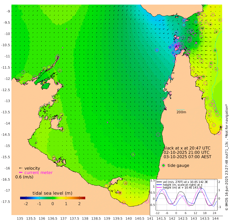 17cm/s 31T +3cm/s rms + 7cm/s -42T. ARA-GOC87 57m 23cm/s -11T +3cm/s rms + 2cm/s -2T. ARA-GOC87 60m 23cm/s 39T +2cm/s rms + 3cm/s 61T. ARA-GOC87 47m 21cm Daru 28cm Bobo Island 37cm Meer Island Barge 51cm Bramble Cay 45cm Unnamed Cay 29cm Pearce Cay 42cm Stephens Island 59cm Merrie England Shoals 33cm Mutacomal Reef 41cm Darnley Island Barge 45cm East Cay 29cm Yorke Island Barge 27cm Rennel Island 18cm Aureed Island -4cm Dungeness Reef -45cm Zagai Island -50cm Yam Island -114cm Dauan Island -96cm Saibai Island -86cm Phipi Reef -59cm Warrior Reef - West -96cm Mabuiag Island Barge 24cm Half Way Island 5cm Coconut Island 11cm Dugong Islet -25cm Poll Island -14cm Kirkcaldie Reef -58cm Suarji Island -19cm Sue Islet -130cm Hawkesbury Island -58cm Alert Patches -58cm Twin Island -131cm Badu Island -75cm St Pauls (Moa Island) -120cm Kubin (Moa Island) -85cm Ince Point -97cm Thursday Island -95cm Nardana Patches -110cm Turtle Head -109cm Round Island -130cm Goods Island -143cm Booby Island -131cm White Rocks Area -123cm Carpentaria -62cm Papou Point -131cm Bampfield Head -115cm Crab Island -141cm Red Wallis Island -127cm Packe Island 15cm Harrington Reef -137cm Herald Camp -17cm Sharp Point -86cm Red Island Point -69cm Possession Island -36cm Alpha Rock -27cm Frederick Point 21cm Wyborn Reef Light 8cm Tetley Island 17cm Triangle Reef 21cm Turtle Head Island 26cm Maclennan Cay 31cm Raine Island 37cm Mcsweeny Reef 44cm Collette Reef 37cm Shadwell Reef 54cm Hannibal Island 52cm Round Point -104cm Vrilya Point 49cm Cape Grenville 41cm Hicks Island 29cm Sir Charles Hardy Island 14cm Harvey Island 54cm Kay Reef 38cm Rocky Island 35cm Chapman Island 34cm Ham Reef 36cm Jubilee Reef 30cm Night Island 34cm Unnamed Reef No. 3 41cm Morris Island 29cm 1st 3 Mile Opening 34cm Creech Reef 42cm Fife Island 49cm Eden Reef 48cm Stanley Island 57cm Normanby River 15cm Yabooma Island 17cm Hutchison River 18cm Elcho Island 16cm North West Crocodile Island 22cm Cape Wessel 36cm Stevens Island 33cm Guluwuru Island 37cm Hopeful Bay 28cm Auster Point 18cm Two Island Bay 27cm Cadell Strait 115cm Mallison Island 30cm Melville Bay (Gove Harbour) 27cm Truant Island 21cm Cape Arnhem 40cm Cape Grey 41cm Hawk Island 54cm Milner Bay (Groote Eylandt) 51cm Cape Beatrice 57cm West Island 58cm Centre Island 65cm Mornington Island 68cm West Wellesley Islands 72cm Bountiful Island 94cm Albert River Mouth 124cm Sweers Island 90cm Karumba 19cm Nassau River Offshore -18cm Christmas Creek -43cm Archer River -68cm Boyd Point -75cm Weipa (Humbug Point) -59cm Pennefather River -105cm Cullen Point