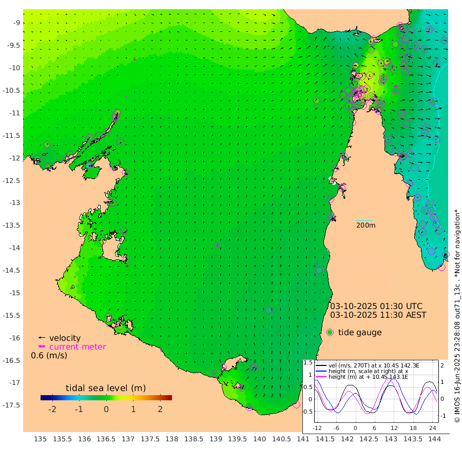 9cm/s 85T +3cm/s rms + 7cm/s -42T. ARA-GOC87 57m 30cm/s 13T +3cm/s rms + 2cm/s -2T. ARA-GOC87 60m 15cm/s 99T +2cm/s rms + 3cm/s 61T. ARA-GOC87 47m -21cm Daru -16cm Bobo Island -64cm Meer Island Barge -61cm Bramble Cay -47cm Unnamed Cay -32cm Pearce Cay -48cm Stephens Island -53cm Merrie England Shoals -27cm Mutacomal Reef -53cm Darnley Island Barge -63cm East Cay -35cm Yorke Island Barge -30cm Rennel Island -19cm Aureed Island -13cm Dungeness Reef 32cm Zagai Island 25cm Yam Island 24cm Dauan Island 36cm Saibai Island 17cm Phipi Reef 21cm Warrior Reef - West 41cm Mabuiag Island Barge -31cm Half Way Island 3cm Coconut Island -23cm Dugong Islet 13cm Poll Island 2cm Kirkcaldie Reef 42cm Suarji Island 11cm Sue Islet -3cm Hawkesbury Island 25cm Alert Patches 31cm Twin Island 18cm Badu Island 40cm St Pauls (Moa Island) 10cm Kubin (Moa Island) 28cm Ince Point 25cm Thursday Island 26cm Nardana Patches 7cm Turtle Head 11cm Round Island -5cm Goods Island -2cm Booby Island 7cm White Rocks Area 19cm Carpentaria 41cm Papou Point 10cm Bampfield Head 1cm Crab Island 2cm Red Wallis Island -2cm Packe Island -4cm Harrington Reef -11cm Herald Camp 16cm Sharp Point 19cm Red Island Point 27cm Possession Island 23cm Alpha Rock 17cm Frederick Point -10cm Wyborn Reef Light 0cm Tetley Island -44cm Triangle Reef -16cm Turtle Head Island -56cm Maclennan Cay -63cm Raine Island -40cm Mcsweeny Reef -49cm Collette Reef -62cm Shadwell Reef -57cm Hannibal Island -62cm Round Point -3cm Vrilya Point -64cm Cape Grenville -61cm Hicks Island -69cm Sir Charles Hardy Island -19cm Harvey Island -72cm Kay Reef -68cm Rocky Island -68cm Chapman Island -66cm Ham Reef -67cm Jubilee Reef -62cm Night Island -65cm Unnamed Reef No. 3 -71cm Morris Island -69cm 1st 3 Mile Opening -70cm Creech Reef -70cm Fife Island -89cm Eden Reef -80cm Stanley Island -80cm Normanby River 8cm Yabooma Island 12cm Hutchison River 14cm Elcho Island 16cm North West Crocodile Island 25cm Cape Wessel 15cm Stevens Island -2cm Guluwuru Island 3cm Hopeful Bay 18cm Auster Point 10cm Two Island Bay -2cm Cadell Strait -90cm Mallison Island 2cm Melville Bay (Gove Harbour) 7cm Truant Island 5cm Cape Arnhem 11cm Cape Grey 3cm Hawk Island 25cm Milner Bay (Groote Eylandt) 10cm Cape Beatrice 19cm West Island 24cm Centre Island -30cm Mornington Island -33cm West Wellesley Islands -40cm Bountiful Island -36cm Albert River Mouth -26cm Sweers Island -41cm Karumba -59cm Nassau River Offshore -64cm Christmas Creek -49cm Archer River -35cm Boyd Point -45cm Weipa (Humbug Point) -22cm Pennefather River -13cm Cullen Point