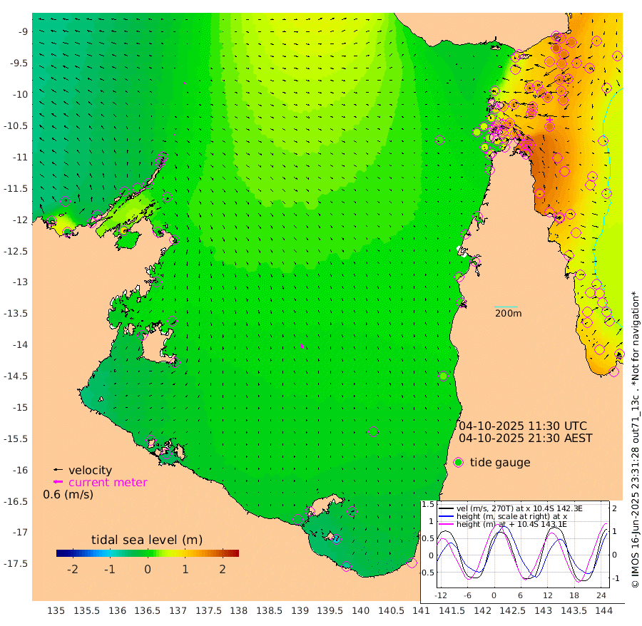 5cm/s -150T +3cm/s rms + 7cm/s -42T. ARA-GOC87 57m 31cm/s 170T +3cm/s rms + 2cm/s -2T. ARA-GOC87 60m 13cm/s -107T +2cm/s rms + 3cm/s 61T. ARA-GOC87 47m 168cm Daru 156cm Bobo Island 80cm Meer Island Barge 123cm Bramble Cay 158cm Unnamed Cay 151cm Pearce Cay 142cm Stephens Island 164cm Merrie England Shoals 182cm Mutacomal Reef 123cm Darnley Island Barge 93cm East Cay 139cm Yorke Island Barge 158cm Rennel Island 143cm Aureed Island 153cm Dungeness Reef 129cm Zagai Island 143cm Yam Island 95cm Dauan Island 87cm Saibai Island 99cm Phipi Reef 141cm Warrior Reef - West 86cm Mabuiag Island Barge 156cm Half Way Island 159cm Coconut Island 165cm Dugong Islet 154cm Poll Island 159cm Kirkcaldie Reef 137cm Suarji Island 143cm Sue Islet 75cm Hawkesbury Island 140cm Alert Patches 145cm Twin Island 71cm Badu Island 140cm St Pauls (Moa Island) 92cm Kubin (Moa Island) 120cm Ince Point 106cm Thursday Island 109cm Nardana Patches 91cm Turtle Head 69cm Round Island 63cm Goods Island 39cm Booby Island 54cm White Rocks Area 18cm Carpentaria 119cm Papou Point 35cm Bampfield Head 27cm Crab Island 54cm Red Wallis Island 92cm Packe Island 178cm Harrington Reef 55cm Herald Camp 39cm Sharp Point 75cm Red Island Point 96cm Possession Island 146cm Alpha Rock 160cm Frederick Point 178cm Wyborn Reef Light 177cm Tetley Island 86cm Triangle Reef 171cm Turtle Head Island 85cm Maclennan Cay 54cm Raine Island 145cm Mcsweeny Reef 130cm Collette Reef 85cm Shadwell Reef 141cm Hannibal Island 129cm Round Point 21cm Vrilya Point 113cm Cape Grenville 96cm Hicks Island 99cm Sir Charles Hardy Island 33cm Harvey Island 96cm Kay Reef 69cm Rocky Island 60cm Chapman Island 57cm Ham Reef 66cm Jubilee Reef 68cm Night Island 63cm Unnamed Reef No. 3 74cm Morris Island 57cm 1st 3 Mile Opening 66cm Creech Reef 79cm Fife Island 69cm Eden Reef 74cm Stanley Island 85cm Normanby River -29cm Yabooma Island -24cm Hutchison River -35cm Elcho Island -32cm North West Crocodile Island -5cm Cape Wessel -10cm Stevens Island 14cm Guluwuru Island -24cm Hopeful Bay -17cm Auster Point -15cm Two Island Bay -7cm Cadell Strait 98cm Mallison Island 7cm Melville Bay (Gove Harbour) 9cm Truant Island 3cm Cape Arnhem -13cm Cape Grey -14cm Hawk Island -42cm Milner Bay (Groote Eylandt) -29cm Cape Beatrice -37cm West Island -50cm Centre Island -28cm Mornington Island -25cm West Wellesley Islands -44cm Bountiful Island -75cm Albert River Mouth -98cm Sweers Island -68cm Karumba 9cm Nassau River Offshore 28cm Christmas Creek 20cm Archer River 25cm Boyd Point 20cm Weipa (Humbug Point) 19cm Pennefather River 19cm Cullen Point