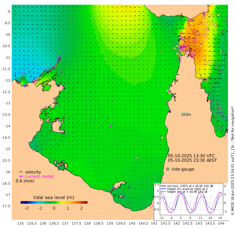 10cm/s -88T +3cm/s rms + 7cm/s -42T. ARA-GOC87 57m 25cm/s 170T +3cm/s rms + 2cm/s -2T. ARA-GOC87 60m 20cm/s -90T +2cm/s rms + 3cm/s 61T. ARA-GOC87 47m 115cm Daru 98cm Bobo Island 1cm Meer Island Barge 34cm Bramble Cay 78cm Unnamed Cay 80cm Pearce Cay 60cm Stephens Island 74cm Merrie England Shoals 118cm Mutacomal Reef 47cm Darnley Island Barge 5cm East Cay 78cm Yorke Island Barge 92cm Rennel Island 89cm Aureed Island 112cm Dungeness Reef 142cm Zagai Island 147cm Yam Island 147cm Dauan Island 140cm Saibai Island 137cm Phipi Reef 157cm Warrior Reef - West 119cm Mabuiag Island Barge 91cm Half Way Island 119cm Coconut Island 109cm Dugong Islet 135cm Poll Island 130cm Kirkcaldie Reef 144cm Suarji Island 130cm Sue Islet 60cm Hawkesbury Island 136cm Alert Patches 142cm Twin Island 76cm Badu Island 154cm St Pauls (Moa Island) 87cm Kubin (Moa Island) 125cm Ince Point 109cm Thursday Island 114cm Nardana Patches 86cm Turtle Head 60cm Round Island 46cm Goods Island 23cm Booby Island 33cm White Rocks Area 15cm Carpentaria 126cm Papou Point 9cm Bampfield Head 19cm Crab Island 42cm Red Wallis Island 79cm Packe Island 122cm Harrington Reef 40cm Herald Camp 54cm Sharp Point 72cm Red Island Point 93cm Possession Island 138cm Alpha Rock 136cm Frederick Point 122cm Wyborn Reef Light 132cm Tetley Island 26cm Triangle Reef 103cm Turtle Head Island 11cm Maclennan Cay -22cm Raine Island 72cm Mcsweeny Reef 55cm Collette Reef 12cm Shadwell Reef 55cm Hannibal Island 35cm Round Point 14cm Vrilya Point 25cm Cape Grenville 12cm Hicks Island 14cm Sir Charles Hardy Island 7cm Harvey Island 1cm Kay Reef -13cm Rocky Island -21cm Chapman Island -20cm Ham Reef -14cm Jubilee Reef -5cm Night Island -16cm Unnamed Reef No. 3 -14cm Morris Island -23cm 1st 3 Mile Opening -16cm Creech Reef -7cm Fife Island -32cm Eden Reef -18cm Stanley Island -18cm Normanby River -104cm Yabooma Island -102cm Hutchison River -98cm Elcho Island -89cm North West Crocodile Island -51cm Cape Wessel -74cm Stevens Island -29cm Guluwuru Island -86cm Hopeful Bay -71cm Auster Point -67cm Two Island Bay -72cm Cadell Strait 31cm Mallison Island -33cm Melville Bay (Gove Harbour) -33cm Truant Island -18cm Cape Arnhem -24cm Cape Grey -15cm Hawk Island -27cm Milner Bay (Groote Eylandt) -13cm Cape Beatrice -4cm West Island -13cm Centre Island 1cm Mornington Island -1cm West Wellesley Islands -23cm Bountiful Island -31cm Albert River Mouth -56cm Sweers Island -26cm Karumba 17cm Nassau River Offshore 24cm Christmas Creek 6cm Archer River 14cm Boyd Point 3cm Weipa (Humbug Point) 10cm Pennefather River 15cm Cullen Point