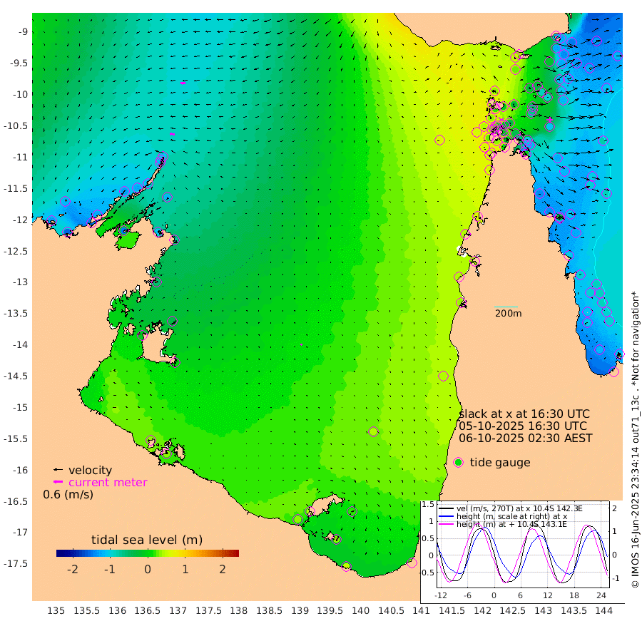 30cm/s -87T +3cm/s rms + 7cm/s -42T. ARA-GOC87 57m 10cm/s -156T +3cm/s rms + 2cm/s -2T. ARA-GOC87 60m 32cm/s -95T +2cm/s rms + 3cm/s 61T. ARA-GOC87 47m -111cm Daru -121cm Bobo Island -106cm Meer Island Barge -131cm Bramble Cay -135cm Unnamed Cay -126cm Pearce Cay -133cm Stephens Island -143cm Merrie England Shoals -121cm Mutacomal Reef -123cm Darnley Island Barge -119cm East Cay -114cm Yorke Island Barge -118cm Rennel Island -107cm Aureed Island -88cm Dungeness Reef -31cm Zagai Island -33cm Yam Island 52cm Dauan Island 44cm Saibai Island 26cm Phipi Reef -17cm Warrior Reef - West 32cm Mabuiag Island Barge -116cm Half Way Island -95cm Coconut Island -106cm Dugong Islet -62cm Poll Island -74cm Kirkcaldie Reef -29cm Suarji Island -58cm Sue Islet 33cm Hawkesbury Island -25cm Alert Patches -30cm Twin Island 40cm Badu Island -13cm St Pauls (Moa Island) 22cm Kubin (Moa Island) 2cm Ince Point 13cm Thursday Island 12cm Nardana Patches 23cm Turtle Head 20cm Round Island 37cm Goods Island 56cm Booby Island 38cm White Rocks Area 60cm Carpentaria -21cm Papou Point 25cm Bampfield Head 56cm Crab Island 59cm Red Wallis Island 35cm Packe Island -116cm Harrington Reef 42cm Herald Camp 7cm Sharp Point 14cm Red Island Point -13cm Possession Island -39cm Alpha Rock -66cm Frederick Point -116cm Wyborn Reef Light -102cm Tetley Island -82cm Triangle Reef -133cm Turtle Head Island -98cm Maclennan Cay -87cm Raine Island -122cm Mcsweeny Reef -119cm Collette Reef -97cm Shadwell Reef -136cm Hannibal Island -135cm Round Point 60cm Vrilya Point -122cm Cape Grenville -117cm Hicks Island -111cm Sir Charles Hardy Island -37cm Harvey Island -121cm Kay Reef -101cm Rocky Island -93cm Chapman Island -89cm Ham Reef -97cm Jubilee Reef -86cm Night Island -90cm Unnamed Reef No. 3 -107cm Morris Island -95cm 1st 3 Mile Opening -97cm Creech Reef -102cm Fife Island -119cm Eden Reef -110cm Stanley Island -129cm Normanby River -134cm Yabooma Island -156cm Hutchison River -123cm Elcho Island -114cm North West Crocodile Island -111cm Cape Wessel -135cm Stevens Island -122cm Guluwuru Island -119cm Hopeful Bay -119cm Auster Point -115cm Two Island Bay -147cm Cadell Strait -148cm Mallison Island -108cm Melville Bay (Gove Harbour) -115cm Truant Island -71cm Cape Arnhem -58cm Cape Grey -33cm Hawk Island -12cm Milner Bay (Groote Eylandt) 2cm Cape Beatrice 31cm West Island 36cm Centre Island 39cm Mornington Island 35cm West Wellesley Islands 21cm Bountiful Island 50cm Albert River Mouth 32cm Sweers Island 51cm Karumba 42cm Nassau River Offshore 40cm Christmas Creek 37cm Archer River 40cm Boyd Point 42cm Weipa (Humbug Point) 42cm Pennefather River 62cm Cullen Point