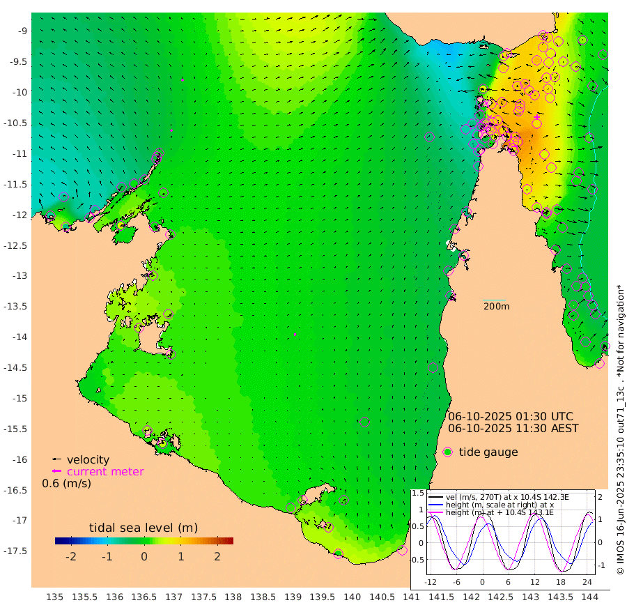 14cm/s 53T +3cm/s rms + 7cm/s -42T. ARA-GOC87 57m 18cm/s 18T +3cm/s rms + 2cm/s -2T. ARA-GOC87 60m 17cm/s 49T +2cm/s rms + 3cm/s 61T. ARA-GOC87 47m 102cm Daru 97cm Bobo Island 3cm Meer Island Barge 33cm Bramble Cay 73cm Unnamed Cay 70cm Pearce Cay 56cm Stephens Island 69cm Merrie England Shoals 100cm Mutacomal Reef 48cm Darnley Island Barge 7cm East Cay 75cm Yorke Island Barge 78cm Rennel Island 84cm Aureed Island 92cm Dungeness Reef 121cm Zagai Island 107cm Yam Island 76cm Dauan Island 87cm Saibai Island 98cm Phipi Reef 113cm Warrior Reef - West 66cm Mabuiag Island Barge 73cm Half Way Island 110cm Coconut Island 84cm Dugong Islet 105cm Poll Island 100cm Kirkcaldie Reef 122cm Suarji Island 108cm Sue Islet -42cm Hawkesbury Island 97cm Alert Patches 100cm Twin Island -10cm Badu Island 107cm St Pauls (Moa Island) 1cm Kubin (Moa Island) 65cm Ince Point 43cm Thursday Island 50cm Nardana Patches 7cm Turtle Head 5cm Round Island -49cm Goods Island -75cm Booby Island -62cm White Rocks Area -57cm Carpentaria 90cm Papou Point -36cm Bampfield Head -62cm Crab Island -68cm Red Wallis Island -24cm Packe Island 109cm Harrington Reef -43cm Herald Camp 43cm Sharp Point 10cm Red Island Point 69cm Possession Island 101cm Alpha Rock 106cm Frederick Point 111cm Wyborn Reef Light 116cm Tetley Island 17cm Triangle Reef 100cm Turtle Head Island 4cm Maclennan Cay -21cm Raine Island 66cm Mcsweeny Reef 55cm Collette Reef 12cm Shadwell Reef 57cm Hannibal Island 32cm Round Point -66cm Vrilya Point 23cm Cape Grenville 14cm Hicks Island 3cm Sir Charles Hardy Island 7cm Harvey Island 3cm Kay Reef -12cm Rocky Island -21cm Chapman Island -22cm Ham Reef -15cm Jubilee Reef -9cm Night Island -21cm Unnamed Reef No. 3 -14cm Morris Island -20cm 1st 3 Mile Opening -18cm Creech Reef -13cm Fife Island -32cm Eden Reef -18cm Stanley Island -18cm Normanby River -76cm Yabooma Island -66cm Hutchison River -66cm Elcho Island -68cm North West Crocodile Island -12cm Cape Wessel -33cm Stevens Island 15cm Guluwuru Island -41cm Hopeful Bay -20cm Auster Point -34cm Two Island Bay -44cm Cadell Strait 68cm Mallison Island 13cm Melville Bay (Gove Harbour) 15cm Truant Island 20cm Cape Arnhem 31cm Cape Grey 33cm Hawk Island 40cm Milner Bay (Groote Eylandt) 27cm Cape Beatrice 39cm West Island 45cm Centre Island 30cm Mornington Island 22cm West Wellesley Islands 20cm Bountiful Island 12cm Albert River Mouth 41cm Sweers Island 17cm Karumba -12cm Nassau River Offshore -29cm Christmas Creek -50cm Archer River -49cm Boyd Point -67cm Weipa (Humbug Point) -44cm Pennefather River -63cm Cullen Point