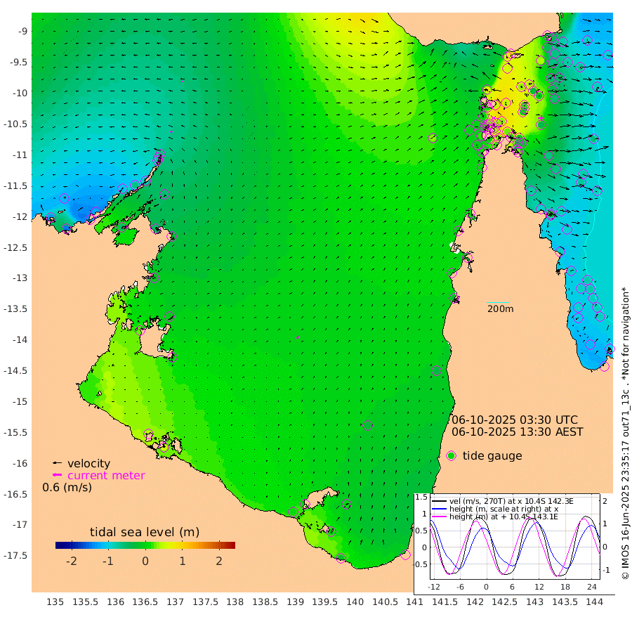 9cm/s -43T +3cm/s rms + 7cm/s -42T. ARA-GOC87 57m 19cm/s 26T +3cm/s rms + 2cm/s -2T. ARA-GOC87 60m 5cm/s -52T +2cm/s rms + 3cm/s 61T. ARA-GOC87 47m -37cm Daru -42cm Bobo Island -84cm Meer Island Barge -89cm Bramble Cay -67cm Unnamed Cay -67cm Pearce Cay -79cm Stephens Island -79cm Merrie England Shoals -44cm Mutacomal Reef -71cm Darnley Island Barge -92cm East Cay -48cm Yorke Island Barge -56cm Rennel Island -39cm Aureed Island -25cm Dungeness Reef 46cm Zagai Island 33cm Yam Island 69cm Dauan Island 88cm Saibai Island 59cm Phipi Reef 40cm Warrior Reef - West 70cm Mabuiag Island Barge -57cm Half Way Island -14cm Coconut Island -42cm Dugong Islet 6cm Poll Island -7cm Kirkcaldie Reef 52cm Suarji Island 21cm Sue Islet -2cm Hawkesbury Island 35cm Alert Patches 33cm Twin Island 24cm Badu Island 51cm St Pauls (Moa Island) 10cm Kubin (Moa Island) 36cm Ince Point 33cm Thursday Island 35cm Nardana Patches 13cm Turtle Head 22cm Round Island -7cm Goods Island -2cm Booby Island -5cm White Rocks Area 34cm Carpentaria 40cm Papou Point 22cm Bampfield Head -2cm Crab Island -2cm Red Wallis Island -3cm Packe Island -32cm Harrington Reef 9cm Herald Camp 28cm Sharp Point 15cm Red Island Point 36cm Possession Island 30cm Alpha Rock 7cm Frederick Point -27cm Wyborn Reef Light -14cm Tetley Island -58cm Triangle Reef -46cm Turtle Head Island -77cm Maclennan Cay -85cm Raine Island -63cm Mcsweeny Reef -65cm Collette Reef -73cm Shadwell Reef -78cm Hannibal Island -95cm Round Point 0cm Vrilya Point -86cm Cape Grenville -87cm Hicks Island -84cm Sir Charles Hardy Island -27cm Harvey Island -94cm Kay Reef -87cm Rocky Island -85cm Chapman Island -82cm Ham Reef -86cm Jubilee Reef -81cm Night Island -85cm Unnamed Reef No. 3 -96cm Morris Island -87cm 1st 3 Mile Opening -90cm Creech Reef -99cm Fife Island -117cm Eden Reef -101cm Stanley Island -114cm Normanby River -129cm Yabooma Island -146cm Hutchison River -123cm Elcho Island -119cm North West Crocodile Island -60cm Cape Wessel -105cm Stevens Island -61cm Guluwuru Island -97cm Hopeful Bay -76cm Auster Point -87cm Two Island Bay -131cm Cadell Strait -57cm Mallison Island -56cm Melville Bay (Gove Harbour) -54cm Truant Island -28cm Cape Arnhem -8cm Cape Grey -3cm Hawk Island 27cm Milner Bay (Groote Eylandt) 13cm Cape Beatrice 45cm West Island 55cm Centre Island 5cm Mornington Island 2cm West Wellesley Islands 0cm Bountiful Island -17cm Albert River Mouth 5cm Sweers Island -16cm Karumba -27cm Nassau River Offshore -31cm Christmas Creek -28cm Archer River -13cm Boyd Point -27cm Weipa (Humbug Point) -12cm Pennefather River 3cm Cullen Point