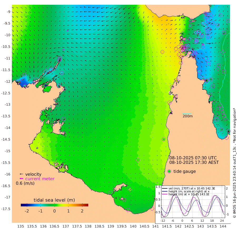 34cm/s -87T +3cm/s rms + 7cm/s -42T. ARA-GOC87 57m 4cm/s -6T +3cm/s rms + 2cm/s -2T. ARA-GOC87 60m 31cm/s -102T +2cm/s rms + 3cm/s 61T. ARA-GOC87 47m -128cm Daru -129cm Bobo Island -56cm Meer Island Barge -86cm Bramble Cay -110cm Unnamed Cay -119cm Pearce Cay -106cm Stephens Island -111cm Merrie England Shoals -123cm Mutacomal Reef -95cm Darnley Island Barge -61cm East Cay -108cm Yorke Island Barge -113cm Rennel Island -111cm Aureed Island -110cm Dungeness Reef -101cm Zagai Island -94cm Yam Island -51cm Dauan Island -42cm Saibai Island -64cm Phipi Reef -101cm Warrior Reef - West -18cm Mabuiag Island Barge -114cm Half Way Island -118cm Coconut Island -114cm Dugong Islet -105cm Poll Island -107cm Kirkcaldie Reef -76cm Suarji Island -95cm Sue Islet 49cm Hawkesbury Island -64cm Alert Patches -76cm Twin Island 28cm Badu Island -76cm St Pauls (Moa Island) 6cm Kubin (Moa Island) -39cm Ince Point -17cm Thursday Island -23cm Nardana Patches 8cm Turtle Head 31cm Round Island 53cm Goods Island 87cm Booby Island 75cm White Rocks Area 92cm Carpentaria -67cm Papou Point 91cm Bampfield Head 64cm Crab Island 73cm Red Wallis Island 26cm Packe Island -127cm Harrington Reef 72cm Herald Camp -25cm Sharp Point 7cm Red Island Point -29cm Possession Island -76cm Alpha Rock -99cm Frederick Point -124cm Wyborn Reef Light -121cm Tetley Island -53cm Triangle Reef -130cm Turtle Head Island -50cm Maclennan Cay -29cm Raine Island -102cm Mcsweeny Reef -90cm Collette Reef -53cm Shadwell Reef -100cm Hannibal Island -86cm Round Point 67cm Vrilya Point -68cm Cape Grenville -65cm Hicks Island -50cm Sir Charles Hardy Island -22cm Harvey Island -49cm Kay Reef -35cm Rocky Island -23cm Chapman Island -23cm Ham Reef -36cm Jubilee Reef -39cm Night Island -26cm Unnamed Reef No. 3 -40cm Morris Island -29cm 1st 3 Mile Opening -35cm Creech Reef -47cm Fife Island -40cm Eden Reef -37cm Stanley Island -48cm Normanby River -38cm Yabooma Island -76cm Hutchison River -52cm Elcho Island -47cm North West Crocodile Island -64cm Cape Wessel -73cm Stevens Island -109cm Guluwuru Island -46cm Hopeful Bay -58cm Auster Point -67cm Two Island Bay -115cm Cadell Strait -180cm Mallison Island -87cm Melville Bay (Gove Harbour) -92cm Truant Island -66cm Cape Arnhem -40cm Cape Grey -32cm Hawk Island -1cm Milner Bay (Groote Eylandt) 0cm Cape Beatrice 31cm West Island 34cm Centre Island 6cm Mornington Island 14cm West Wellesley Islands 37cm Bountiful Island 9cm Albert River Mouth 21cm Sweers Island 13cm Karumba 15cm Nassau River Offshore 22cm Christmas Creek 42cm Archer River 46cm Boyd Point 60cm Weipa (Humbug Point) 36cm Pennefather River 73cm Cullen Point