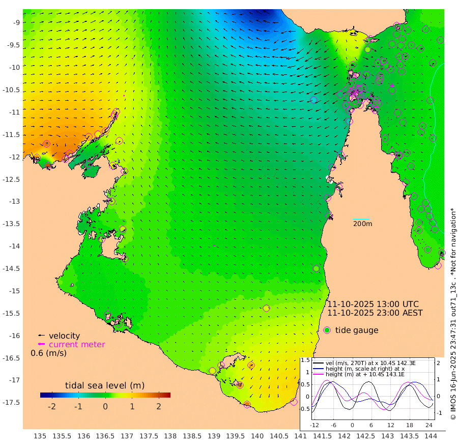 10cm/s -67T +3cm/s rms + 7cm/s -42T. ARA-GOC87 57m 18cm/s -90T +3cm/s rms + 2cm/s -2T. ARA-GOC87 60m 8cm/s -19T +2cm/s rms + 3cm/s 61T. ARA-GOC87 47m 1cm Daru 6cm Bobo Island 4cm Meer Island Barge 8cm Bramble Cay 0cm Unnamed Cay 11cm Pearce Cay 2cm Stephens Island -6cm Merrie England Shoals -4cm Mutacomal Reef -2cm Darnley Island Barge 8cm East Cay -3cm Yorke Island Barge 2cm Rennel Island 5cm Aureed Island 5cm Dungeness Reef 1cm Zagai Island -2cm Yam Island 19cm Dauan Island 3cm Saibai Island 33cm Phipi Reef 14cm Warrior Reef - West -13cm Mabuiag Island Barge -8cm Half Way Island -4cm Coconut Island -7cm Dugong Islet -4cm Poll Island -14cm Kirkcaldie Reef 4cm Suarji Island -16cm Sue Islet -30cm Hawkesbury Island -19cm Alert Patches -18cm Twin Island -18cm Badu Island -15cm St Pauls (Moa Island) -17cm Kubin (Moa Island) -21cm Ince Point -28cm Thursday Island -23cm Nardana Patches -18cm Turtle Head -20cm Round Island -25cm Goods Island -49cm Booby Island -37cm White Rocks Area -97cm Carpentaria -17cm Papou Point -52cm Bampfield Head -54cm Crab Island -48cm Red Wallis Island -24cm Packe Island -10cm Harrington Reef -32cm Herald Camp -10cm Sharp Point -24cm Red Island Point -18cm Possession Island -22cm Alpha Rock -13cm Frederick Point -6cm Wyborn Reef Light -8cm Tetley Island 5cm Triangle Reef -16cm Turtle Head Island 3cm Maclennan Cay 5cm Raine Island -2cm Mcsweeny Reef -2cm Collette Reef 0cm Shadwell Reef -1cm Hannibal Island 8cm Round Point -81cm Vrilya Point -1cm Cape Grenville 7cm Hicks Island 7cm Sir Charles Hardy Island 0cm Harvey Island -1cm Kay Reef 9cm Rocky Island 9cm Chapman Island 2cm Ham Reef 2cm Jubilee Reef 3cm Night Island 1cm Unnamed Reef No. 3 7cm Morris Island 2cm 1st 3 Mile Opening 1cm Creech Reef 9cm Fife Island 11cm Eden Reef -1cm Stanley Island 8cm Normanby River 153cm Yabooma Island 189cm Hutchison River 160cm Elcho Island 159cm North West Crocodile Island 72cm Cape Wessel 124cm Stevens Island 63cm Guluwuru Island 120cm Hopeful Bay 90cm Auster Point 91cm Two Island Bay 136cm Cadell Strait -44cm Mallison Island 73cm Melville Bay (Gove Harbour) 66cm Truant Island 43cm Cape Arnhem 40cm Cape Grey 48cm Hawk Island 30cm Milner Bay (Groote Eylandt) 36cm Cape Beatrice 13cm West Island 7cm Centre Island 71cm Mornington Island 63cm West Wellesley Islands 127cm Bountiful Island 161cm Albert River Mouth 162cm Sweers Island 155cm Karumba 60cm Nassau River Offshore 27cm Christmas Creek -8cm Archer River -27cm Boyd Point -9cm Weipa (Humbug Point) -58cm Pennefather River -55cm Cullen Point