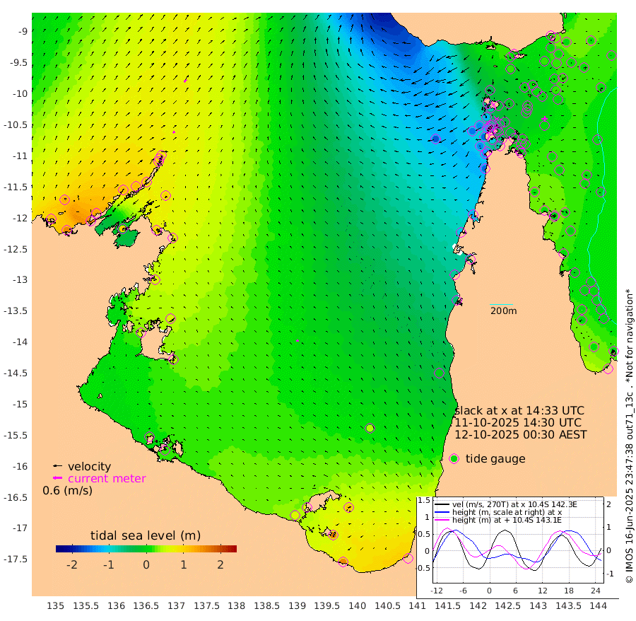 15cm/s 43T +3cm/s rms + 7cm/s -42T. ARA-GOC87 57m 14cm/s -75T +3cm/s rms + 2cm/s -2T. ARA-GOC87 60m 24cm/s 40T +2cm/s rms + 3cm/s 61T. ARA-GOC87 47m 15cm Daru 25cm Bobo Island 9cm Meer Island Barge 13cm Bramble Cay 10cm Unnamed Cay 21cm Pearce Cay 13cm Stephens Island 2cm Merrie England Shoals 5cm Mutacomal Reef 15cm Darnley Island Barge 8cm East Cay 16cm Yorke Island Barge 8cm Rennel Island 21cm Aureed Island 10cm Dungeness Reef 14cm Zagai Island 1cm Yam Island 8cm Dauan Island 3cm Saibai Island 16cm Phipi Reef 21cm Warrior Reef - West -40cm Mabuiag Island Barge 3cm Half Way Island 3cm Coconut Island 3cm Dugong Islet 0cm Poll Island -12cm Kirkcaldie Reef -9cm Suarji Island -4cm Sue Islet -116cm Hawkesbury Island -41cm Alert Patches -32cm Twin Island -95cm Badu Island -28cm St Pauls (Moa Island) -80cm Kubin (Moa Island) -54cm Ince Point -73cm Thursday Island -65cm Nardana Patches -83cm Turtle Head -92cm Round Island -115cm Goods Island -149cm Booby Island -137cm White Rocks Area -162cm Carpentaria -29cm Papou Point -151cm Bampfield Head -136cm Crab Island -142cm Red Wallis Island -102cm Packe Island -2cm Harrington Reef -120cm Herald Camp -6cm Sharp Point -81cm Red Island Point -54cm Possession Island -26cm Alpha Rock -17cm Frederick Point 4cm Wyborn Reef Light 1cm Tetley Island 5cm Triangle Reef -7cm Turtle Head Island 2cm Maclennan Cay -3cm Raine Island 8cm Mcsweeny Reef 6cm Collette Reef 2cm Shadwell Reef 10cm Hannibal Island 8cm Round Point -151cm Vrilya Point 0cm Cape Grenville 7cm Hicks Island 6cm Sir Charles Hardy Island 1cm Harvey Island -4cm Kay Reef 4cm Rocky Island -1cm Chapman Island -3cm Ham Reef 0cm Jubilee Reef 0cm Night Island -6cm Unnamed Reef No. 3 2cm Morris Island -5cm 1st 3 Mile Opening -3cm Creech Reef 5cm Fife Island 8cm Eden Reef -5cm Stanley Island 5cm Normanby River 114cm Yabooma Island 154cm Hutchison River 128cm Elcho Island 124cm North West Crocodile Island 89cm Cape Wessel 115cm Stevens Island 113cm Guluwuru Island 106cm Hopeful Bay 93cm Auster Point 102cm Two Island Bay 151cm Cadell Strait 99cm Mallison Island 105cm Melville Bay (Gove Harbour) 102cm Truant Island 74cm Cape Arnhem 64cm Cape Grey 67cm Hawk Island 47cm Milner Bay (Groote Eylandt) 47cm Cape Beatrice 23cm West Island 17cm Centre Island 72cm Mornington Island 65cm West Wellesley Islands 111cm Bountiful Island 152cm Albert River Mouth 160cm Sweers Island 138cm Karumba 38cm Nassau River Offshore -6cm Christmas Creek -56cm Archer River -74cm Boyd Point -72cm Weipa (Humbug Point) -105cm Pennefather River -121cm Cullen Point
