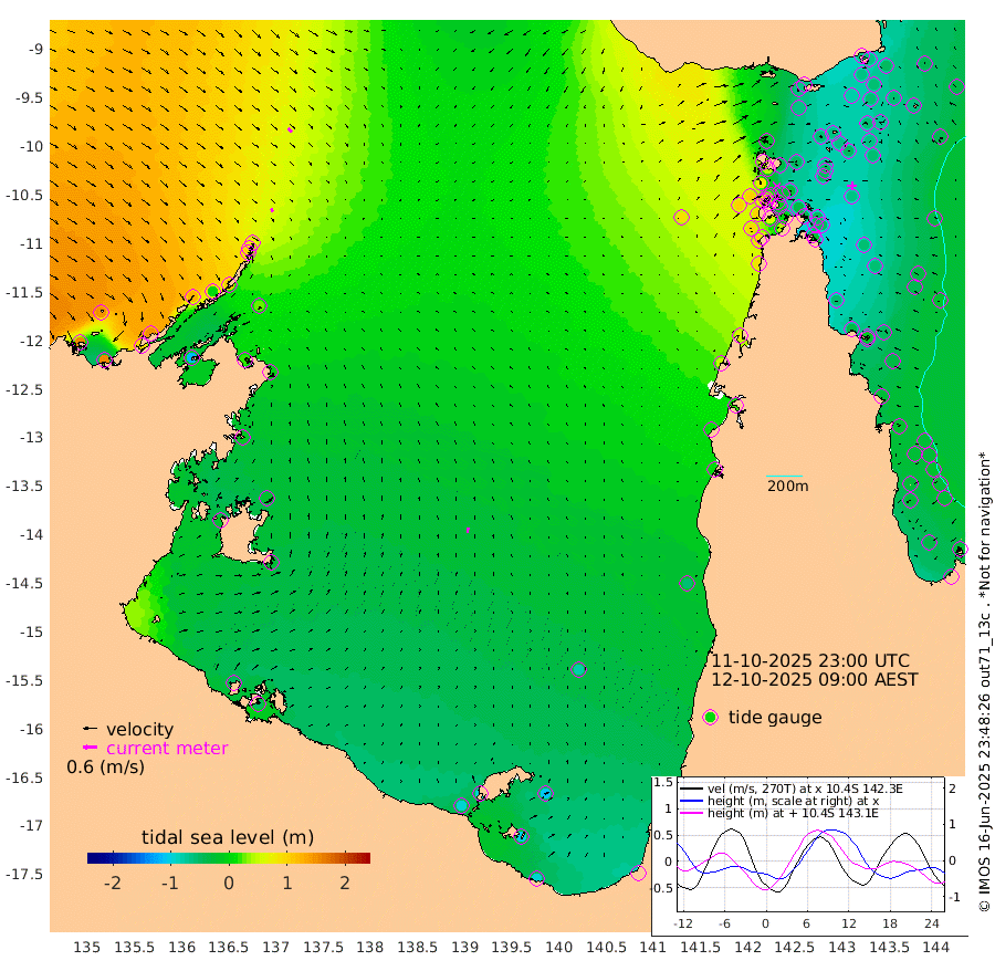 16cm/s 143T +3cm/s rms + 7cm/s -42T. ARA-GOC87 57m 24cm/s 7T +3cm/s rms + 2cm/s -2T. ARA-GOC87 60m 24cm/s 135T +2cm/s rms + 3cm/s 61T. ARA-GOC87 47m -67cm Daru -62cm Bobo Island -40cm Meer Island Barge -44cm Bramble Cay -58cm Unnamed Cay -54cm Pearce Cay -55cm Stephens Island -52cm Merrie England Shoals -60cm Mutacomal Reef -63cm Darnley Island Barge -34cm East Cay -68cm Yorke Island Barge -53cm Rennel Island -67cm Aureed Island -63cm Dungeness Reef -66cm Zagai Island -56cm Yam Island -62cm Dauan Island -61cm Saibai Island -66cm Phipi Reef -77cm Warrior Reef - West -8cm Mabuiag Island Barge -55cm Half Way Island -51cm Coconut Island -63cm Dugong Islet -52cm Poll Island -51cm Kirkcaldie Reef -51cm Suarji Island -61cm Sue Islet 82cm Hawkesbury Island -26cm Alert Patches -29cm Twin Island 63cm Badu Island -36cm St Pauls (Moa Island) 41cm Kubin (Moa Island) -5cm Ince Point 14cm Thursday Island 7cm Nardana Patches 31cm Turtle Head 57cm Round Island 74cm Goods Island 100cm Booby Island 101cm White Rocks Area 83cm Carpentaria -15cm Papou Point 103cm Bampfield Head 94cm Crab Island 94cm Red Wallis Island 54cm Packe Island -55cm Harrington Reef 67cm Herald Camp -20cm Sharp Point 45cm Red Island Point 6cm Possession Island -35cm Alpha Rock -40cm Frederick Point -52cm Wyborn Reef Light -50cm Tetley Island -35cm Triangle Reef -40cm Turtle Head Island -35cm Maclennan Cay -17cm Raine Island -55cm Mcsweeny Reef -53cm Collette Reef -38cm Shadwell Reef -57cm Hannibal Island -37cm Round Point 90cm Vrilya Point -40cm Cape Grenville -36cm Hicks Island -47cm Sir Charles Hardy Island -14cm Harvey Island -31cm Kay Reef -29cm Rocky Island -22cm Chapman Island -23cm Ham Reef -27cm Jubilee Reef -28cm Night Island -20cm Unnamed Reef No. 3 -27cm Morris Island -25cm 1st 3 Mile Opening -28cm Creech Reef -29cm Fife Island -31cm Eden Reef -29cm Stanley Island -28cm Normanby River 152cm Yabooma Island 154cm Hutchison River 145cm Elcho Island 144cm North West Crocodile Island 71cm Cape Wessel 120cm Stevens Island 7cm Guluwuru Island 108cm Hopeful Bay 91cm Auster Point 87cm Two Island Bay 94cm Cadell Strait -118cm Mallison Island 19cm Melville Bay (Gove Harbour) 25cm Truant Island 0cm Cape Arnhem -10cm Cape Grey -19cm Hawk Island -19cm Milner Bay (Groote Eylandt) -29cm Cape Beatrice -51cm West Island -47cm Centre Island -93cm Mornington Island -97cm West Wellesley Islands -110cm Bountiful Island -96cm Albert River Mouth -101cm Sweers Island -93cm Karumba -80cm Nassau River Offshore -58cm Christmas Creek 2cm Archer River 13cm Boyd Point 20cm Weipa (Humbug Point) 47cm Pennefather River 62cm Cullen Point