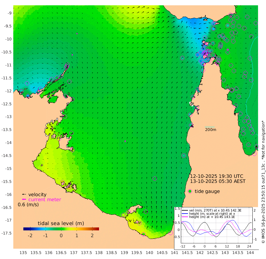21cm/s -5T +3cm/s rms + 7cm/s -42T. ARA-GOC87 57m 28cm/s 10T +3cm/s rms + 2cm/s -2T. ARA-GOC87 60m 19cm/s 6T +2cm/s rms + 3cm/s 61T. ARA-GOC87 47m -39cm Daru -36cm Bobo Island -29cm Meer Island Barge -31cm Bramble Cay -29cm Unnamed Cay -45cm Pearce Cay -30cm Stephens Island -22cm Merrie England Shoals -31cm Mutacomal Reef -25cm Darnley Island Barge -32cm East Cay -28cm Yorke Island Barge -36cm Rennel Island -37cm Aureed Island -53cm Dungeness Reef -60cm Zagai Island -62cm Yam Island -113cm Dauan Island -88cm Saibai Island -118cm Phipi Reef -79cm Warrior Reef - West -86cm Mabuiag Island Barge -29cm Half Way Island -47cm Coconut Island -33cm Dugong Islet -53cm Poll Island -47cm Kirkcaldie Reef -73cm Suarji Island -40cm Sue Islet -137cm Hawkesbury Island -74cm Alert Patches -68cm Twin Island -148cm Badu Island -74cm St Pauls (Moa Island) -122cm Kubin (Moa Island) -86cm Ince Point -95cm Thursday Island -94cm Nardana Patches -122cm Turtle Head -117cm Round Island -144cm Goods Island -139cm Booby Island -135cm White Rocks Area -73cm Carpentaria -64cm Papou Point -131cm Bampfield Head -112cm Crab Island -132cm Red Wallis Island -133cm Packe Island -33cm Harrington Reef -131cm Herald Camp -9cm Sharp Point -101cm Red Island Point -79cm Possession Island -43cm Alpha Rock -54cm Frederick Point -35cm Wyborn Reef Light -38cm Tetley Island -39cm Triangle Reef -35cm Turtle Head Island -34cm Maclennan Cay -38cm Raine Island -29cm Mcsweeny Reef -27cm Collette Reef -30cm Shadwell Reef -26cm Hannibal Island -34cm Round Point -84cm Vrilya Point -24cm Cape Grenville -33cm Hicks Island -41cm Sir Charles Hardy Island -7cm Harvey Island -25cm Kay Reef -35cm Rocky Island -41cm Chapman Island -32cm Ham Reef -32cm Jubilee Reef -30cm Night Island -34cm Unnamed Reef No. 3 -34cm Morris Island -37cm 1st 3 Mile Opening -33cm Creech Reef -30cm Fife Island -38cm Eden Reef -26cm Stanley Island -25cm Normanby River -93cm Yabooma Island -120cm Hutchison River -91cm Elcho Island -87cm North West Crocodile Island -31cm Cape Wessel -63cm Stevens Island -33cm Guluwuru Island -58cm Hopeful Bay -43cm Auster Point -39cm Two Island Bay -83cm Cadell Strait 37cm Mallison Island -36cm Melville Bay (Gove Harbour) -35cm Truant Island -18cm Cape Arnhem 7cm Cape Grey 13cm Hawk Island 53cm Milner Bay (Groote Eylandt) 48cm Cape Beatrice 84cm West Island 86cm Centre Island 30cm Mornington Island 39cm West Wellesley Islands 6cm Bountiful Island 20cm Albert River Mouth 48cm Sweers Island 13cm Karumba -29cm Nassau River Offshore -61cm Christmas Creek -77cm Archer River -77cm Boyd Point -99cm Weipa (Humbug Point) -60cm Pennefather River -87cm Cullen Point