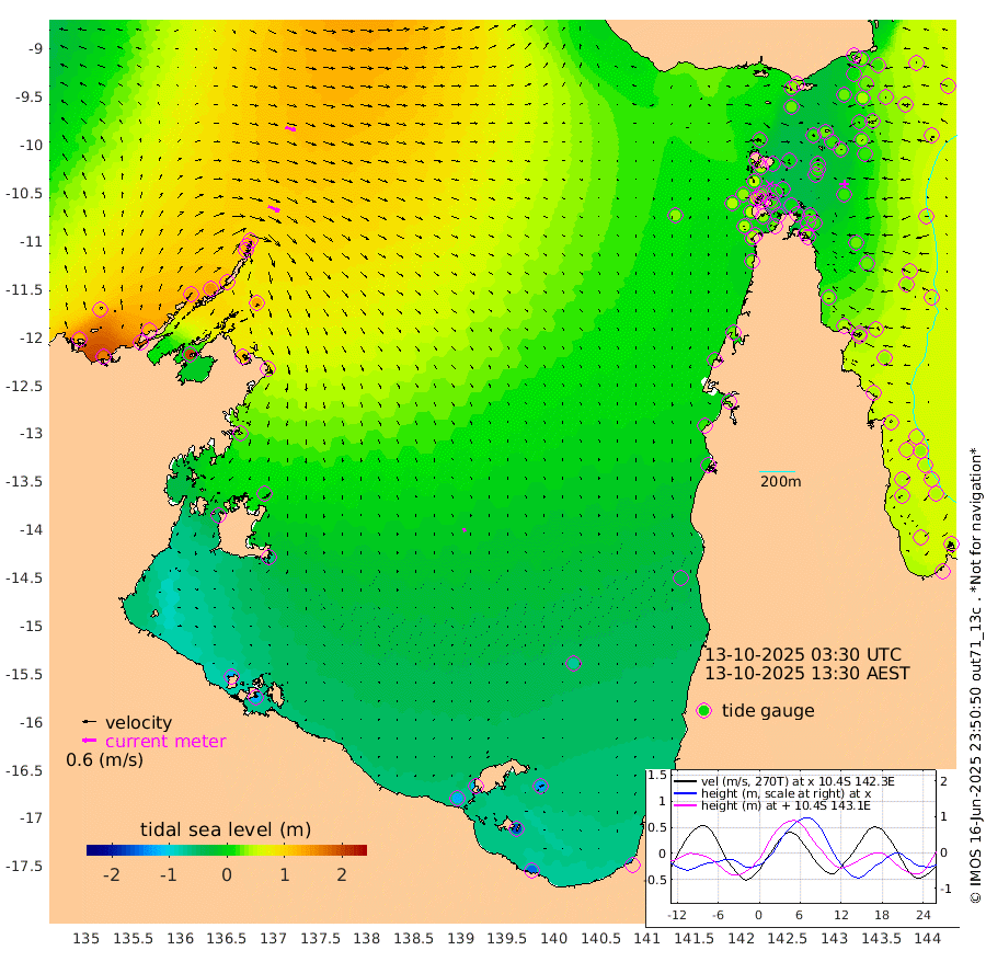 53cm/s 113T +3cm/s rms + 7cm/s -42T. ARA-GOC87 57m 14cm/s 150T +3cm/s rms + 2cm/s -2T. ARA-GOC87 60m 47cm/s 106T +2cm/s rms + 3cm/s 61T. ARA-GOC87 47m 21cm Daru 35cm Bobo Island 46cm Meer Island Barge 38cm Bramble Cay 24cm Unnamed Cay 41cm Pearce Cay 33cm Stephens Island 18cm Merrie England Shoals 11cm Mutacomal Reef 40cm Darnley Island Barge 44cm East Cay 32cm Yorke Island Barge 21cm Rennel Island 32cm Aureed Island 21cm Dungeness Reef 26cm Zagai Island 15cm Yam Island 35cm Dauan Island 33cm Saibai Island 23cm Phipi Reef 25cm Warrior Reef - West 18cm Mabuiag Island Barge 21cm Half Way Island 24cm Coconut Island 15cm Dugong Islet 15cm Poll Island 10cm Kirkcaldie Reef 3cm Suarji Island 14cm Sue Islet 46cm Hawkesbury Island 5cm Alert Patches 11cm Twin Island 51cm Badu Island 10cm St Pauls (Moa Island) 38cm Kubin (Moa Island) 14cm Ince Point 18cm Thursday Island 17cm Nardana Patches 28cm Turtle Head 30cm Round Island 45cm Goods Island 45cm Booby Island 36cm White Rocks Area 33cm Carpentaria 17cm Papou Point 51cm Bampfield Head 38cm Crab Island 39cm Red Wallis Island 36cm Packe Island 12cm Harrington Reef 36cm Herald Camp -9cm Sharp Point 26cm Red Island Point 15cm Possession Island 1cm Alpha Rock 13cm Frederick Point 19cm Wyborn Reef Light 18cm Tetley Island 41cm Triangle Reef 30cm Turtle Head Island 39cm Maclennan Cay 46cm Raine Island 26cm Mcsweeny Reef 28cm Collette Reef 37cm Shadwell Reef 31cm Hannibal Island 38cm Round Point 30cm Vrilya Point 29cm Cape Grenville 40cm Hicks Island 48cm Sir Charles Hardy Island 10cm Harvey Island 35cm Kay Reef 43cm Rocky Island 50cm Chapman Island 46cm Ham Reef 46cm Jubilee Reef 37cm Night Island 44cm Unnamed Reef No. 3 43cm Morris Island 46cm 1st 3 Mile Opening 45cm Creech Reef 40cm Fife Island 58cm Eden Reef 40cm Stanley Island 43cm Normanby River 127cm Yabooma Island 161cm Hutchison River 127cm Elcho Island 112cm North West Crocodile Island 122cm Cape Wessel 128cm Stevens Island 145cm Guluwuru Island 112cm Hopeful Bay 118cm Auster Point 125cm Two Island Bay 179cm Cadell Strait 199cm Mallison Island 118cm Melville Bay (Gove Harbour) 132cm Truant Island 84cm Cape Arnhem 30cm Cape Grey 2cm Hawk Island -51cm Milner Bay (Groote Eylandt) -67cm Cape Beatrice -127cm West Island -125cm Centre Island -117cm Mornington Island -122cm West Wellesley Islands -130cm Bountiful Island -150cm Albert River Mouth -167cm Sweers Island -152cm Karumba -75cm Nassau River Offshore -31cm Christmas Creek 7cm Archer River 21cm Boyd Point 23cm Weipa (Humbug Point) 18cm Pennefather River 27cm Cullen Point