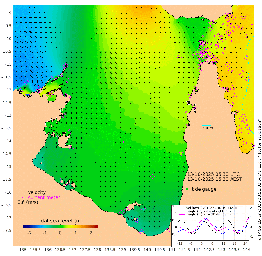 14cm/s 123T +3cm/s rms + 7cm/s -42T. ARA-GOC87 57m 37cm/s 160T +3cm/s rms + 2cm/s -2T. ARA-GOC87 60m 6cm/s -170T +2cm/s rms + 3cm/s 61T. ARA-GOC87 47m 91cm Daru 90cm Bobo Island 89cm Meer Island Barge 92cm Bramble Cay 98cm Unnamed Cay 96cm Pearce Cay 101cm Stephens Island 99cm Merrie England Shoals 91cm Mutacomal Reef 105cm Darnley Island Barge 89cm East Cay 101cm Yorke Island Barge 90cm Rennel Island 94cm Aureed Island 85cm Dungeness Reef 60cm Zagai Island 61cm Yam Island 41cm Dauan Island 44cm Saibai Island 36cm Phipi Reef 64cm Warrior Reef - West 28cm Mabuiag Island Barge 97cm Half Way Island 81cm Coconut Island 97cm Dugong Islet 71cm Poll Island 82cm Kirkcaldie Reef 51cm Suarji Island 78cm Sue Islet 35cm Hawkesbury Island 60cm Alert Patches 61cm Twin Island 27cm Badu Island 56cm St Pauls (Moa Island) 39cm Kubin (Moa Island) 49cm Ince Point 47cm Thursday Island 45cm Nardana Patches 43cm Turtle Head 24cm Round Island 37cm Goods Island 37cm Booby Island 27cm White Rocks Area 55cm Carpentaria 46cm Papou Point 34cm Bampfield Head 30cm Crab Island 37cm Red Wallis Island 45cm Packe Island 94cm Harrington Reef 40cm Herald Camp 14cm Sharp Point 34cm Red Island Point 40cm Possession Island 60cm Alpha Rock 74cm Frederick Point 85cm Wyborn Reef Light 80cm Tetley Island 76cm Triangle Reef 96cm Turtle Head Island 85cm Maclennan Cay 73cm Raine Island 96cm Mcsweeny Reef 94cm Collette Reef 84cm Shadwell Reef 102cm Hannibal Island 92cm Round Point 44cm Vrilya Point 93cm Cape Grenville 87cm Hicks Island 100cm Sir Charles Hardy Island 29cm Harvey Island 90cm Kay Reef 80cm Rocky Island 79cm Chapman Island 79cm Ham Reef 83cm Jubilee Reef 76cm Night Island 80cm Unnamed Reef No. 3 83cm Morris Island 82cm 1st 3 Mile Opening 86cm Creech Reef 83cm Fife Island 95cm Eden Reef 90cm Stanley Island 91cm Normanby River -134cm Yabooma Island -149cm Hutchison River -143cm Elcho Island -146cm North West Crocodile Island -50cm Cape Wessel -109cm Stevens Island 0cm Guluwuru Island -102cm Hopeful Bay -73cm Auster Point -69cm Two Island Bay -76cm Cadell Strait 156cm Mallison Island -22cm Melville Bay (Gove Harbour) -16cm Truant Island -6cm Cape Arnhem -22cm Cape Grey -34cm Hawk Island -54cm Milner Bay (Groote Eylandt) -50cm Cape Beatrice -49cm West Island -51cm Centre Island -44cm Mornington Island -36cm West Wellesley Islands -68cm Bountiful Island -131cm Albert River Mouth -143cm Sweers Island -121cm Karumba 1cm Nassau River Offshore 40cm Christmas Creek 43cm Archer River 52cm Boyd Point 44cm Weipa (Humbug Point) 44cm Pennefather River 42cm Cullen Point