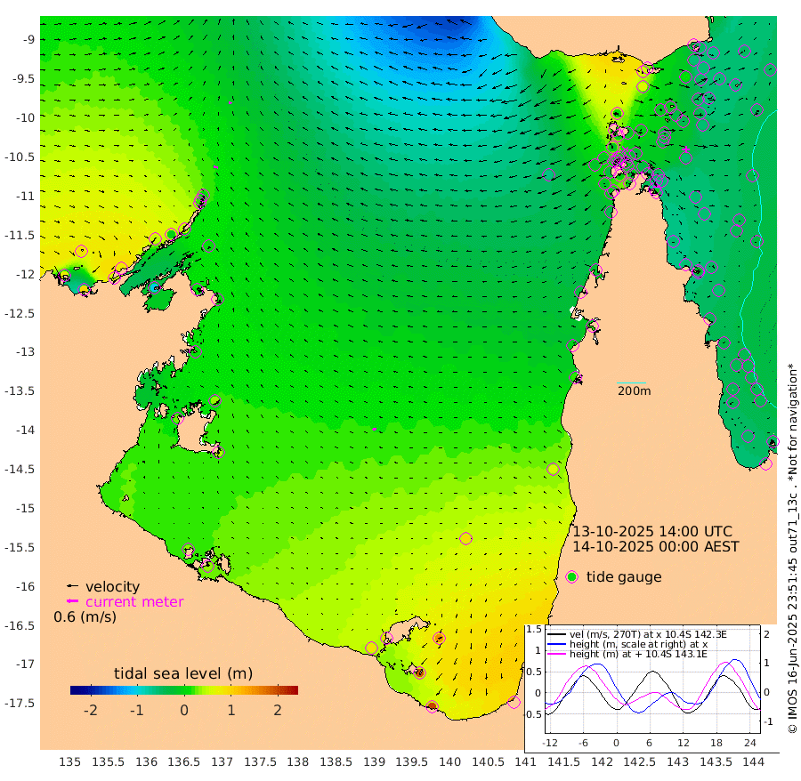 21cm/s -81T +3cm/s rms + 7cm/s -42T. ARA-GOC87 57m 19cm/s -100T +3cm/s rms + 2cm/s -2T. ARA-GOC87 60m 16cm/s -74T +2cm/s rms + 3cm/s 61T. ARA-GOC87 47m -44cm Daru -48cm Bobo Island -47cm Meer Island Barge -51cm Bramble Cay -58cm Unnamed Cay -48cm Pearce Cay -59cm Stephens Island -65cm Merrie England Shoals -53cm Mutacomal Reef -58cm Darnley Island Barge -50cm East Cay -54cm Yorke Island Barge -51cm Rennel Island -44cm Aureed Island -31cm Dungeness Reef -5cm Zagai Island -11cm Yam Island 54cm Dauan Island 34cm Saibai Island 60cm Phipi Reef 14cm Warrior Reef - West 13cm Mabuiag Island Barge -60cm Half Way Island -41cm Coconut Island -54cm Dugong Islet -27cm Poll Island -41cm Kirkcaldie Reef -1cm Suarji Island -35cm Sue Islet -11cm Hawkesbury Island -19cm Alert Patches -24cm Twin Island 14cm Badu Island -13cm St Pauls (Moa Island) -4cm Kubin (Moa Island) -11cm Ince Point -13cm Thursday Island -9cm Nardana Patches 1cm Turtle Head -6cm Round Island -1cm Goods Island -16cm Booby Island -13cm White Rocks Area -63cm Carpentaria -20cm Papou Point -34cm Bampfield Head -19cm Crab Island -16cm Red Wallis Island -5cm Packe Island -61cm Harrington Reef -13cm Herald Camp -2cm Sharp Point -10cm Red Island Point -18cm Possession Island -33cm Alpha Rock -38cm Frederick Point -53cm Wyborn Reef Light -49cm Tetley Island -34cm Triangle Reef -73cm Turtle Head Island -45cm Maclennan Cay -35cm Raine Island -55cm Mcsweeny Reef -53cm Collette Reef -42cm Shadwell Reef -59cm Hannibal Island -55cm Round Point -43cm Vrilya Point -57cm Cape Grenville -49cm Hicks Island -47cm Sir Charles Hardy Island -18cm Harvey Island -56cm Kay Reef -39cm Rocky Island -36cm Chapman Island -41cm Ham Reef -43cm Jubilee Reef -38cm Night Island -42cm Unnamed Reef No. 3 -43cm Morris Island -41cm 1st 3 Mile Opening -45cm Creech Reef -43cm Fife Island -46cm Eden Reef -52cm Stanley Island -56cm Normanby River 68cm Yabooma Island 93cm Hutchison River 82cm Elcho Island 84cm North West Crocodile Island 2cm Cape Wessel 46cm Stevens Island -1cm Guluwuru Island 48cm Hopeful Bay 18cm Auster Point 14cm Two Island Bay 46cm Cadell Strait -98cm Mallison Island 14cm Melville Bay (Gove Harbour) 2cm Truant Island 6cm Cape Arnhem 14cm Cape Grey 32cm Hawk Island 29cm Milner Bay (Groote Eylandt) 40cm Cape Beatrice 34cm West Island 32cm Centre Island 99cm Mornington Island 90cm West Wellesley Islands 147cm Bountiful Island 198cm Albert River Mouth 190cm Sweers Island 189cm Karumba 89cm Nassau River Offshore 54cm Christmas Creek 19cm Archer River -3cm Boyd Point 17cm Weipa (Humbug Point) -27cm Pennefather River -22cm Cullen Point