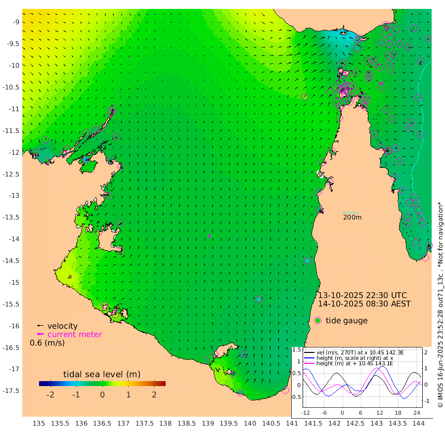 7cm/s -28T +3cm/s rms + 7cm/s -42T. ARA-GOC87 57m 37cm/s 10T +3cm/s rms + 2cm/s -2T. ARA-GOC87 60m 4cm/s 84T +2cm/s rms + 3cm/s 61T. ARA-GOC87 47m -23cm Daru -25cm Bobo Island -44cm Meer Island Barge -36cm Bramble Cay -23cm Unnamed Cay -35cm Pearce Cay -30cm Stephens Island -18cm Merrie England Shoals -13cm Mutacomal Reef -40cm Darnley Island Barge -41cm East Cay -32cm Yorke Island Barge -20cm Rennel Island -33cm Aureed Island -28cm Dungeness Reef -26cm Zagai Island -17cm Yam Island -65cm Dauan Island -52cm Saibai Island -62cm Phipi Reef -46cm Warrior Reef - West -12cm Mabuiag Island Barge -17cm Half Way Island -13cm Coconut Island -18cm Dugong Islet -13cm Poll Island -9cm Kirkcaldie Reef -10cm Suarji Island -14cm Sue Islet -3cm Hawkesbury Island -2cm Alert Patches -1cm Twin Island -18cm Badu Island -4cm St Pauls (Moa Island) -9cm Kubin (Moa Island) -3cm Ince Point -1cm Thursday Island -3cm Nardana Patches -16cm Turtle Head 8cm Round Island -15cm Goods Island -1cm Booby Island 7cm White Rocks Area 26cm Carpentaria 6cm Papou Point 22cm Bampfield Head 6cm Crab Island -1cm Red Wallis Island -14cm Packe Island -3cm Harrington Reef -3cm Herald Camp 2cm Sharp Point -1cm Red Island Point 10cm Possession Island 6cm Alpha Rock -3cm Frederick Point -6cm Wyborn Reef Light -4cm Tetley Island -41cm Triangle Reef 1cm Turtle Head Island -40cm Maclennan Cay -43cm Raine Island -26cm Mcsweeny Reef -30cm Collette Reef -40cm Shadwell Reef -32cm Hannibal Island -33cm Round Point 15cm Vrilya Point -30cm Cape Grenville -37cm Hicks Island -53cm Sir Charles Hardy Island -10cm Harvey Island -36cm Kay Reef -46cm Rocky Island -51cm Chapman Island -46cm Ham Reef -45cm Jubilee Reef -40cm Night Island -45cm Unnamed Reef No. 3 -44cm Morris Island -45cm 1st 3 Mile Opening -46cm Creech Reef -45cm Fife Island -60cm Eden Reef -42cm Stanley Island -42cm Normanby River 13cm Yabooma Island -5cm Hutchison River 8cm Elcho Island 12cm North West Crocodile Island 3cm Cape Wessel 12cm Stevens Island -43cm Guluwuru Island 5cm Hopeful Bay 10cm Auster Point 6cm Two Island Bay -33cm Cadell Strait -119cm Mallison Island -30cm Melville Bay (Gove Harbour) -27cm Truant Island -25cm Cape Arnhem -6cm Cape Grey -5cm Hawk Island 28cm Milner Bay (Groote Eylandt) 16cm Cape Beatrice 37cm West Island 41cm Centre Island -35cm Mornington Island -34cm West Wellesley Islands -59cm Bountiful Island -53cm Albert River Mouth -33cm Sweers Island -50cm Karumba -71cm Nassau River Offshore -77cm Christmas Creek -52cm Archer River -38cm Boyd Point -50cm Weipa (Humbug Point) -5cm Pennefather River -6cm Cullen Point
