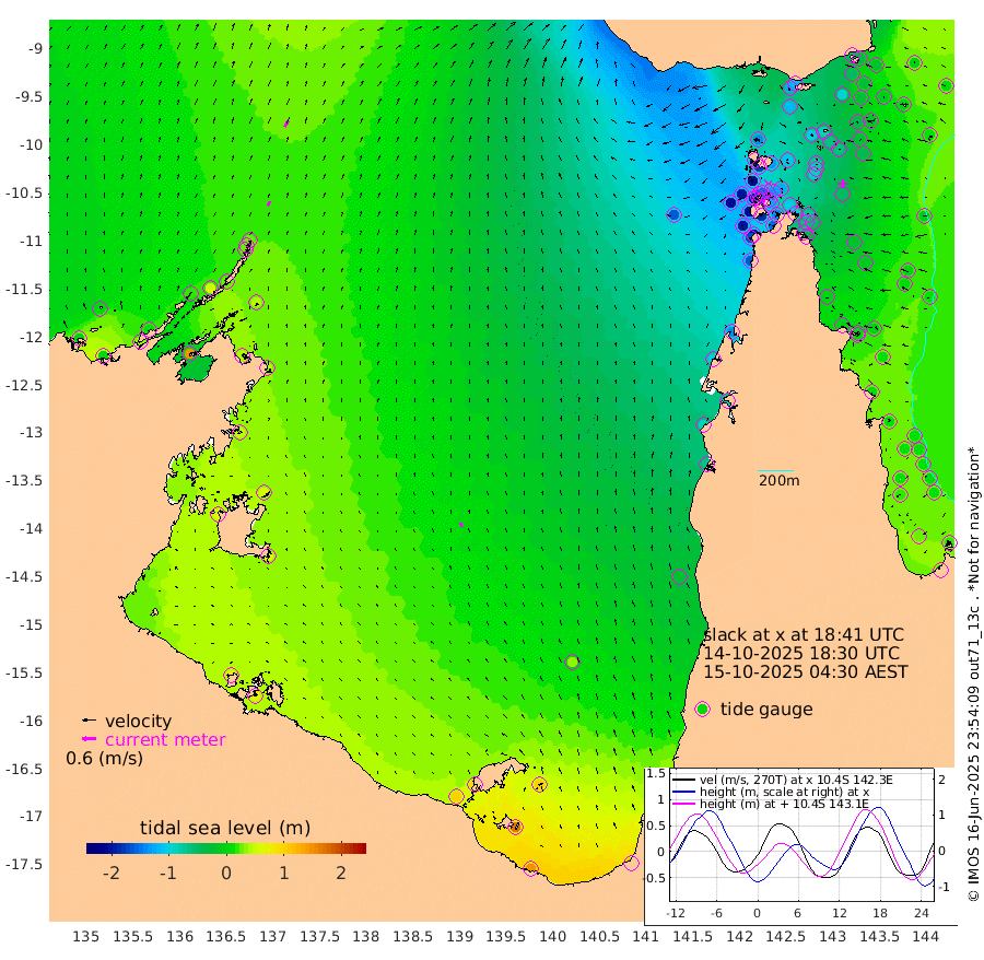 21cm/s 26T +3cm/s rms + 7cm/s -42T. ARA-GOC87 57m 20cm/s -27T +3cm/s rms + 2cm/s -2T. ARA-GOC87 60m 28cm/s 31T +2cm/s rms + 3cm/s 61T. ARA-GOC87 47m -46cm Daru -31cm Bobo Island 11cm Meer Island Barge -1cm Bramble Cay -25cm Unnamed Cay -27cm Pearce Cay -13cm Stephens Island -19cm Merrie England Shoals -48cm Mutacomal Reef -3cm Darnley Island Barge 7cm East Cay -22cm Yorke Island Barge -38cm Rennel Island -27cm Aureed Island -62cm Dungeness Reef -85cm Zagai Island -102cm Yam Island -125cm Dauan Island -113cm Saibai Island -120cm Phipi Reef -94cm Warrior Reef - West -142cm Mabuiag Island Barge -38cm Half Way Island -63cm Coconut Island -52cm Dugong Islet -84cm Poll Island -87cm Kirkcaldie Reef -112cm Suarji Island -78cm Sue Islet -208cm Hawkesbury Island -130cm Alert Patches -124cm Twin Island -197cm Badu Island -134cm St Pauls (Moa Island) -178cm Kubin (Moa Island) -146cm Ince Point -159cm Thursday Island -156cm Nardana Patches -169cm Turtle Head -178cm Round Island -191cm Goods Island -203cm Booby Island -197cm White Rocks Area -163cm Carpentaria -122cm Papou Point -204cm Bampfield Head -171cm Crab Island -197cm Red Wallis Island -185cm Packe Island -61cm Harrington Reef -197cm Herald Camp -33cm Sharp Point -157cm Red Island Point -137cm Possession Island -100cm Alpha Rock -97cm Frederick Point -58cm Wyborn Reef Light -70cm Tetley Island -11cm Triangle Reef -65cm Turtle Head Island -3cm Maclennan Cay 8cm Raine Island -22cm Mcsweeny Reef -12cm Collette Reef 3cm Shadwell Reef -6cm Hannibal Island -5cm Round Point -158cm Vrilya Point -1cm Cape Grenville 0cm Hicks Island -2cm Sir Charles Hardy Island 0cm Harvey Island 9cm Kay Reef 10cm Rocky Island 12cm Chapman Island 12cm Ham Reef 10cm Jubilee Reef 9cm Night Island 10cm Unnamed Reef No. 3 12cm Morris Island 7cm 1st 3 Mile Opening 10cm Creech Reef 19cm Fife Island 27cm Eden Reef 16cm Stanley Island 22cm Normanby River -4cm Yabooma Island 4cm Hutchison River 10cm Elcho Island 3cm North West Crocodile Island 29cm Cape Wessel 20cm Stevens Island 54cm Guluwuru Island 27cm Hopeful Bay 23cm Auster Point 23cm Two Island Bay 34cm Cadell Strait 148cm Mallison Island 44cm Melville Bay (Gove Harbour) 42cm Truant Island 40cm Cape Arnhem 46cm Cape Grey 53cm Hawk Island 67cm Milner Bay (Groote Eylandt) 66cm Cape Beatrice 72cm West Island 72cm Centre Island 92cm Mornington Island 98cm West Wellesley Islands 103cm Bountiful Island 147cm Albert River Mouth 170cm Sweers Island 126cm Karumba 35cm Nassau River Offshore -15cm Christmas Creek -62cm Archer River -85cm Boyd Point -92cm Weipa (Humbug Point) -98cm Pennefather River -138cm Cullen Point