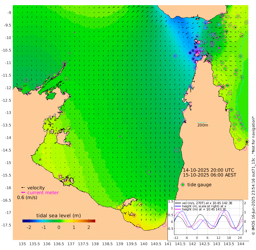 22cm/s 16T +3cm/s rms + 7cm/s -42T. ARA-GOC87 57m 26cm/s -4T +3cm/s rms + 2cm/s -2T. ARA-GOC87 60m 25cm/s 26T +2cm/s rms + 3cm/s 61T. ARA-GOC87 47m -3cm Daru 9cm Bobo Island 23cm Meer Island Barge 25cm Bramble Cay 17cm Unnamed Cay 8cm Pearce Cay 24cm Stephens Island 27cm Merrie England Shoals 2cm Mutacomal Reef 26cm Darnley Island Barge 26cm East Cay 13cm Yorke Island Barge 6cm Rennel Island 7cm Aureed Island -24cm Dungeness Reef -59cm Zagai Island -68cm Yam Island -137cm Dauan Island -119cm Saibai Island -125cm Phipi Reef -77cm Warrior Reef - West -126cm Mabuiag Island Barge 9cm Half Way Island -18cm Coconut Island -3cm Dugong Islet -42cm Poll Island -37cm Kirkcaldie Reef -73cm Suarji Island -38cm Sue Islet -189cm Hawkesbury Island -87cm Alert Patches -79cm Twin Island -189cm Badu Island -93cm St Pauls (Moa Island) -155cm Kubin (Moa Island) -111cm Ince Point -126cm Thursday Island -124cm Nardana Patches -149cm Turtle Head -152cm Round Island -178cm Goods Island -187cm Booby Island -175cm White Rocks Area -132cm Carpentaria -82cm Papou Point -173cm Bampfield Head -156cm Crab Island -178cm Red Wallis Island -164cm Packe Island -1cm Harrington Reef -176cm Herald Camp -21cm Sharp Point -133cm Red Island Point -98cm Possession Island -54cm Alpha Rock -48cm Frederick Point -6cm Wyborn Reef Light -18cm Tetley Island 1cm Triangle Reef -5cm Turtle Head Island 13cm Maclennan Cay 12cm Raine Island 16cm Mcsweeny Reef 20cm Collette Reef 16cm Shadwell Reef 28cm Hannibal Island 24cm Round Point -136cm Vrilya Point 27cm Cape Grenville 22cm Hicks Island 11cm Sir Charles Hardy Island 9cm Harvey Island 29cm Kay Reef 18cm Rocky Island 13cm Chapman Island 16cm Ham Reef 18cm Jubilee Reef 19cm Night Island 16cm Unnamed Reef No. 3 22cm Morris Island 14cm 1st 3 Mile Opening 19cm Creech Reef 30cm Fife Island 29cm Eden Reef 29cm Stanley Island 38cm Normanby River -40cm Yabooma Island -47cm Hutchison River -33cm Elcho Island -37cm North West Crocodile Island 9cm Cape Wessel -11cm Stevens Island 21cm Guluwuru Island -8cm Hopeful Bay 1cm Auster Point 0cm Two Island Bay -17cm Cadell Strait 96cm Mallison Island 15cm Melville Bay (Gove Harbour) 15cm Truant Island 19cm Cape Arnhem 35cm Cape Grey 40cm Hawk Island 67cm Milner Bay (Groote Eylandt) 63cm Cape Beatrice 84cm West Island 85cm Centre Island 67cm Mornington Island 75cm West Wellesley Islands 58cm Bountiful Island 84cm Albert River Mouth 115cm Sweers Island 70cm Karumba 4cm Nassau River Offshore -41cm Christmas Creek -77cm Archer River -90cm Boyd Point -106cm Weipa (Humbug Point) -88cm Pennefather River -128cm Cullen Point