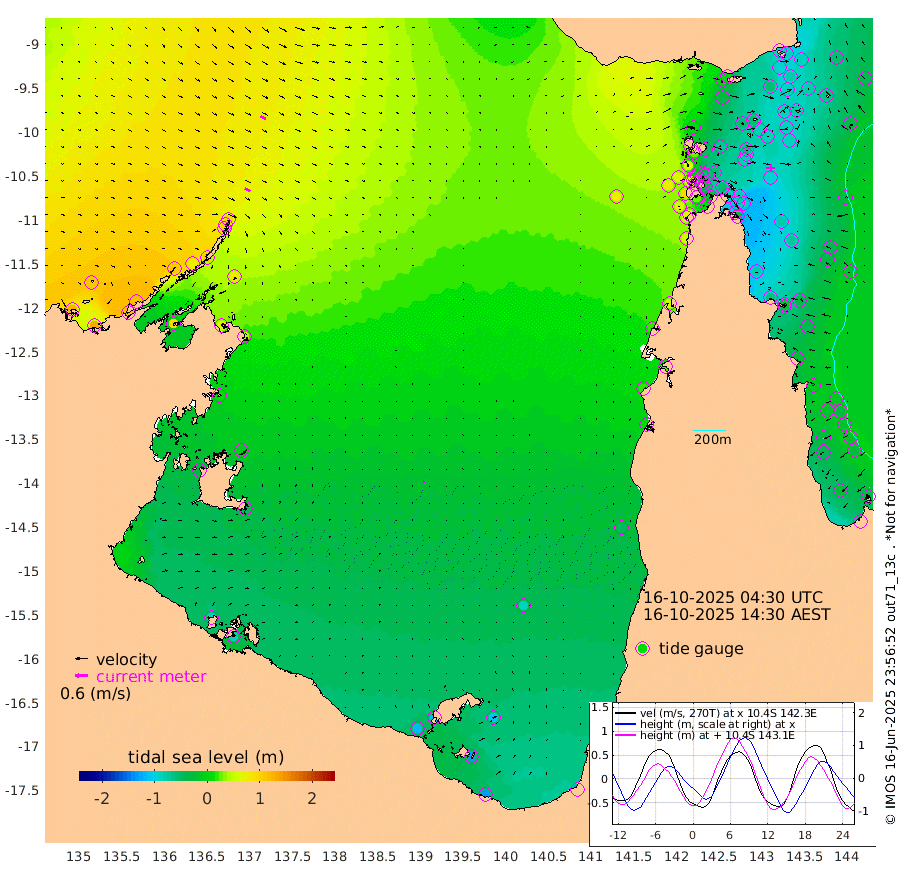 28cm/s 119T +3cm/s rms + 7cm/s -42T. ARA-GOC87 57m 7cm/s 63T +3cm/s rms + 2cm/s -2T. ARA-GOC87 60m 29cm/s 114T +2cm/s rms + 3cm/s 61T. ARA-GOC87 47m -93cm Daru -88cm Bobo Island -35cm Meer Island Barge -60cm Bramble Cay -82cm Unnamed Cay -85cm Pearce Cay -80cm Stephens Island -89cm Merrie England Shoals -95cm Mutacomal Reef -66cm Darnley Island Barge -44cm East Cay -75cm Yorke Island Barge -89cm Rennel Island -83cm Aureed Island -85cm Dungeness Reef -54cm Zagai Island -58cm Yam Island -4cm Dauan Island 3cm Saibai Island -35cm Phipi Reef -59cm Warrior Reef - West 5cm Mabuiag Island Barge -90cm Half Way Island -85cm Coconut Island -93cm Dugong Islet -76cm Poll Island -85cm Kirkcaldie Reef -68cm Suarji Island -66cm Sue Islet 61cm Hawkesbury Island -55cm Alert Patches -57cm Twin Island 51cm Badu Island -52cm St Pauls (Moa Island) 25cm Kubin (Moa Island) -27cm Ince Point -9cm Thursday Island -13cm Nardana Patches 11cm Turtle Head 40cm Round Island 53cm Goods Island 75cm Booby Island 60cm White Rocks Area 74cm Carpentaria -39cm Papou Point 90cm Bampfield Head 59cm Crab Island 63cm Red Wallis Island 29cm Packe Island -107cm Harrington Reef 66cm Herald Camp -23cm Sharp Point 8cm Red Island Point -19cm Possession Island -55cm Alpha Rock -76cm Frederick Point -85cm Wyborn Reef Light -81cm Tetley Island -31cm Triangle Reef -88cm Turtle Head Island -38cm Maclennan Cay -16cm Raine Island -79cm Mcsweeny Reef -69cm Collette Reef -36cm Shadwell Reef -76cm Hannibal Island -63cm Round Point 54cm Vrilya Point -57cm Cape Grenville -47cm Hicks Island -33cm Sir Charles Hardy Island -19cm Harvey Island -41cm Kay Reef -26cm Rocky Island -13cm Chapman Island -13cm Ham Reef -22cm Jubilee Reef -31cm Night Island -19cm Unnamed Reef No. 3 -30cm Morris Island -19cm 1st 3 Mile Opening -26cm Creech Reef -39cm Fife Island -23cm Eden Reef -31cm Stanley Island -39cm Normanby River 126cm Yabooma Island 130cm Hutchison River 117cm Elcho Island 108cm North West Crocodile Island 93cm Cape Wessel 109cm Stevens Island 75cm Guluwuru Island 105cm Hopeful Bay 96cm Auster Point 101cm Two Island Bay 113cm Cadell Strait 91cm Mallison Island 66cm Melville Bay (Gove Harbour) 76cm Truant Island 42cm Cape Arnhem 8cm Cape Grey -9cm Hawk Island -32cm Milner Bay (Groote Eylandt) -52cm Cape Beatrice -89cm West Island -85cm Centre Island -115cm Mornington Island -116cm West Wellesley Islands -112cm Bountiful Island -129cm Albert River Mouth -134cm Sweers Island -134cm Karumba -88cm Nassau River Offshore -51cm Christmas Creek 1cm Archer River 22cm Boyd Point 29cm Weipa (Humbug Point) 20cm Pennefather River 55cm Cullen Point