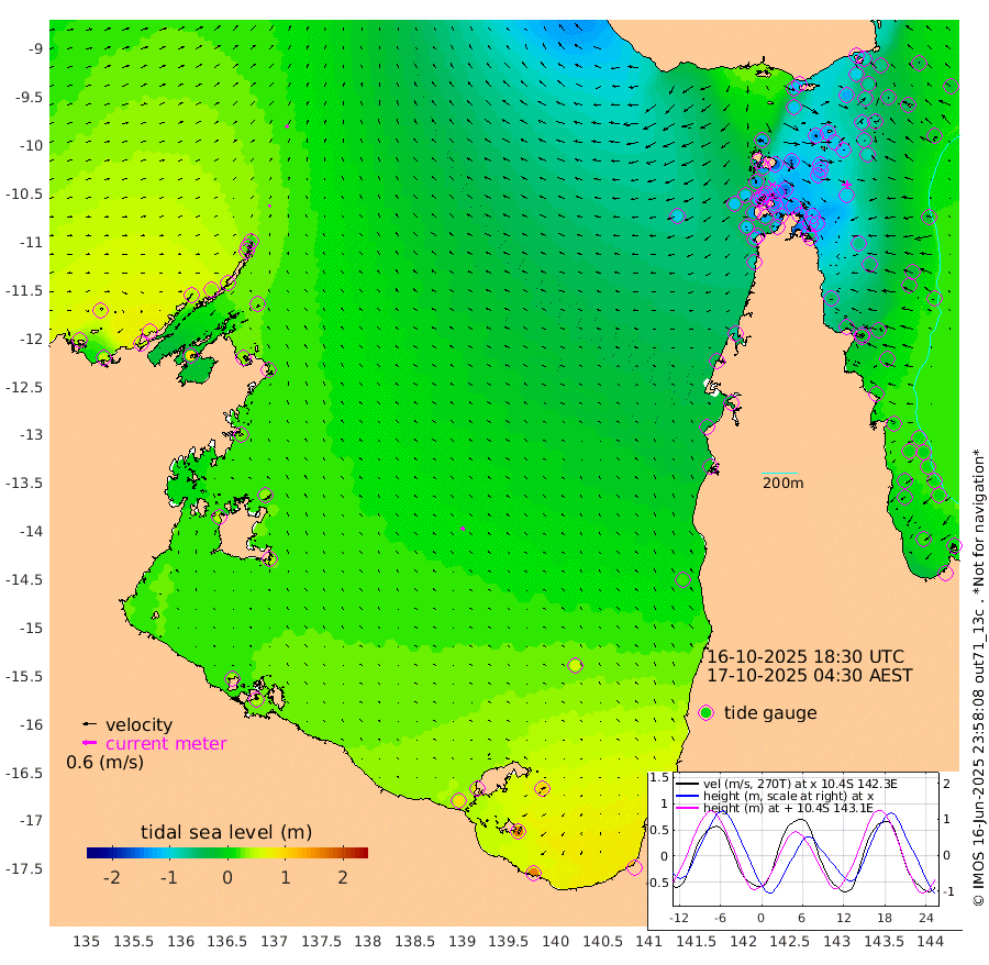 8cm/s 25T +3cm/s rms + 7cm/s -42T. ARA-GOC87 57m 16cm/s -57T +3cm/s rms + 2cm/s -2T. ARA-GOC87 60m 14cm/s 37T +2cm/s rms + 3cm/s 61T. ARA-GOC87 47m -97cm Daru -85cm Bobo Island -11cm Meer Island Barge -32cm Bramble Cay -72cm Unnamed Cay -72cm Pearce Cay -60cm Stephens Island -65cm Merrie England Shoals -98cm Mutacomal Reef -47cm Darnley Island Barge -15cm East Cay -72cm Yorke Island Barge -84cm Rennel Island -78cm Aureed Island -103cm Dungeness Reef -120cm Zagai Island -135cm Yam Island -111cm Dauan Island -108cm Saibai Island -108cm Phipi Reef -120cm Warrior Reef - West -124cm Mabuiag Island Barge -89cm Half Way Island -107cm Coconut Island -105cm Dugong Islet -123cm Poll Island -126cm Kirkcaldie Reef -140cm Suarji Island -118cm Sue Islet -130cm Hawkesbury Island -141cm Alert Patches -144cm Twin Island -119cm Badu Island -154cm St Pauls (Moa Island) -133cm Kubin (Moa Island) -139cm Ince Point -137cm Thursday Island -137cm Nardana Patches -121cm Turtle Head -128cm Round Island -108cm Goods Island -107cm Booby Island -110cm White Rocks Area -103cm Carpentaria -138cm Papou Point -128cm Bampfield Head -85cm Crab Island -109cm Red Wallis Island -124cm Packe Island -120cm Harrington Reef -131cm Herald Camp -45cm Sharp Point -112cm Red Island Point -133cm Possession Island -131cm Alpha Rock -133cm Frederick Point -110cm Wyborn Reef Light -119cm Tetley Island -27cm Triangle Reef -119cm Turtle Head Island -24cm Maclennan Cay 8cm Raine Island -66cm Mcsweeny Reef -49cm Collette Reef -14cm Shadwell Reef -48cm Hannibal Island -35cm Round Point -80cm Vrilya Point -31cm Cape Grenville -25cm Hicks Island -24cm Sir Charles Hardy Island -11cm Harvey Island -10cm Kay Reef 1cm Rocky Island 12cm Chapman Island 8cm Ham Reef 2cm Jubilee Reef -3cm Night Island 8cm Unnamed Reef No. 3 1cm Morris Island 2cm 1st 3 Mile Opening 1cm Creech Reef 6cm Fife Island 19cm Eden Reef 4cm Stanley Island 2cm Normanby River 41cm Yabooma Island 51cm Hutchison River 54cm Elcho Island 47cm North West Crocodile Island 21cm Cape Wessel 43cm Stevens Island 31cm Guluwuru Island 51cm Hopeful Bay 28cm Auster Point 21cm Two Island Bay 50cm Cadell Strait 87cm Mallison Island 30cm Melville Bay (Gove Harbour) 25cm Truant Island 23cm Cape Arnhem 27cm Cape Grey 34cm Hawk Island 41cm Milner Bay (Groote Eylandt) 45cm Cape Beatrice 38cm West Island 40cm Centre Island 83cm Mornington Island 86cm West Wellesley Islands 104cm Bountiful Island 159cm Albert River Mouth 166cm Sweers Island 141cm Karumba 57cm Nassau River Offshore 22cm Christmas Creek -3cm Archer River -32cm Boyd Point -23cm Weipa (Humbug Point) -39cm Pennefather River -70cm Cullen Point
