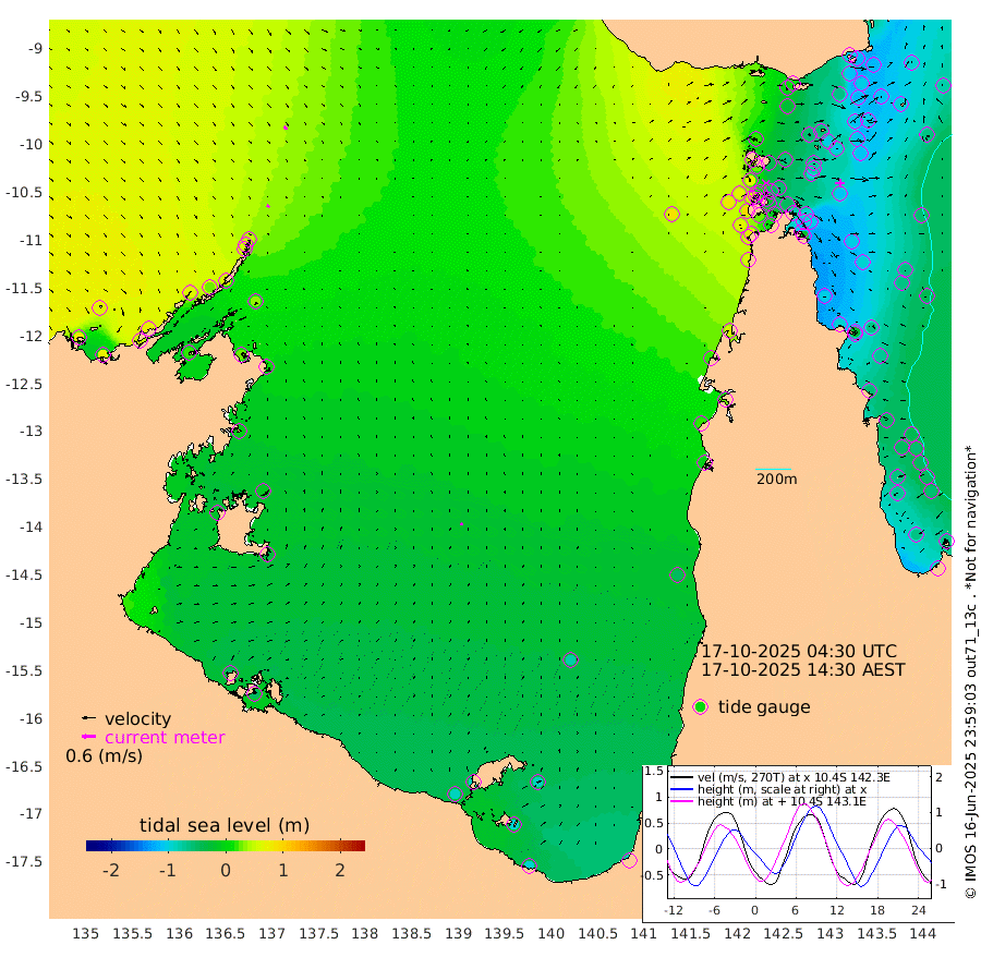 15cm/s 128T +3cm/s rms + 7cm/s -42T. ARA-GOC87 57m 11cm/s 29T +3cm/s rms + 2cm/s -2T. ARA-GOC87 60m 17cm/s 125T +2cm/s rms + 3cm/s 61T. ARA-GOC87 47m -110cm Daru -113cm Bobo Island -65cm Meer Island Barge -91cm Bramble Cay -105cm Unnamed Cay -115cm Pearce Cay -108cm Stephens Island -114cm Merrie England Shoals -112cm Mutacomal Reef -94cm Darnley Island Barge -77cm East Cay -98cm Yorke Island Barge -110cm Rennel Island -106cm Aureed Island -98cm Dungeness Reef -55cm Zagai Island -56cm Yam Island 4cm Dauan Island 10cm Saibai Island -27cm Phipi Reef -61cm Warrior Reef - West 17cm Mabuiag Island Barge -109cm Half Way Island -99cm Coconut Island -108cm Dugong Islet -81cm Poll Island -91cm Kirkcaldie Reef -60cm Suarji Island -69cm Sue Islet 60cm Hawkesbury Island -50cm Alert Patches -54cm Twin Island 53cm Badu Island -44cm St Pauls (Moa Island) 28cm Kubin (Moa Island) -20cm Ince Point -1cm Thursday Island -5cm Nardana Patches 15cm Turtle Head 47cm Round Island 53cm Goods Island 80cm Booby Island 64cm White Rocks Area 83cm Carpentaria -35cm Papou Point 97cm Bampfield Head 63cm Crab Island 66cm Red Wallis Island 30cm Packe Island -122cm Harrington Reef 72cm Herald Camp -16cm Sharp Point 8cm Red Island Point -13cm Possession Island -52cm Alpha Rock -81cm Frederick Point -101cm Wyborn Reef Light -94cm Tetley Island -56cm Triangle Reef -107cm Turtle Head Island -64cm Maclennan Cay -44cm Raine Island -103cm Mcsweeny Reef -93cm Collette Reef -61cm Shadwell Reef -104cm Hannibal Island -96cm Round Point 59cm Vrilya Point -85cm Cape Grenville -76cm Hicks Island -63cm Sir Charles Hardy Island -27cm Harvey Island -72cm Kay Reef -55cm Rocky Island -45cm Chapman Island -43cm Ham Reef -51cm Jubilee Reef -57cm Night Island -50cm Unnamed Reef No. 3 -61cm Morris Island -45cm 1st 3 Mile Opening -56cm Creech Reef -72cm Fife Island -62cm Eden Reef -62cm Stanley Island -75cm Normanby River 81cm Yabooma Island 73cm Hutchison River 71cm Elcho Island 66cm North West Crocodile Island 50cm Cape Wessel 62cm Stevens Island 27cm Guluwuru Island 62cm Hopeful Bay 55cm Auster Point 58cm Two Island Bay 47cm Cadell Strait 15cm Mallison Island 25cm Melville Bay (Gove Harbour) 32cm Truant Island 15cm Cape Arnhem -2cm Cape Grey -13cm Hawk Island -16cm Milner Bay (Groote Eylandt) -35cm Cape Beatrice -52cm West Island -47cm Centre Island -89cm Mornington Island -88cm West Wellesley Islands -83cm Bountiful Island -94cm Albert River Mouth -97cm Sweers Island -102cm Karumba -76cm Nassau River Offshore -48cm Christmas Creek -3cm Archer River 20cm Boyd Point 26cm Weipa (Humbug Point) 21cm Pennefather River 59cm Cullen Point
