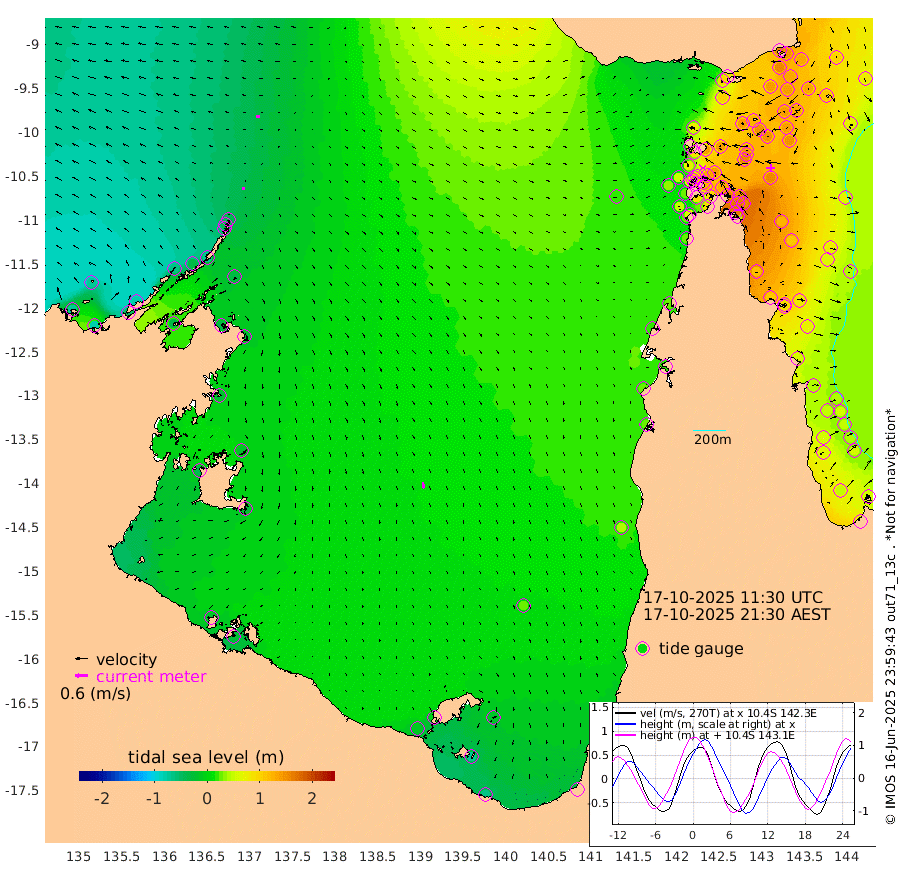 12cm/s -101T +3cm/s rms + 7cm/s -42T. ARA-GOC87 57m 30cm/s 170T +3cm/s rms + 2cm/s -2T. ARA-GOC87 60m 21cm/s -97T +2cm/s rms + 3cm/s 61T. ARA-GOC87 47m 151cm Daru 144cm Bobo Island 68cm Meer Island Barge 100cm Bramble Cay 132cm Unnamed Cay 142cm Pearce Cay 128cm Stephens Island 133cm Merrie England Shoals 153cm Mutacomal Reef 111cm Darnley Island Barge 80cm East Cay 128cm Yorke Island Barge 142cm Rennel Island 137cm Aureed Island 146cm Dungeness Reef 124cm Zagai Island 138cm Yam Island 91cm Dauan Island 82cm Saibai Island 104cm Phipi Reef 136cm Warrior Reef - West 81cm Mabuiag Island Barge 146cm Half Way Island 146cm Coconut Island 156cm Dugong Islet 146cm Poll Island 154cm Kirkcaldie Reef 137cm Suarji Island 135cm Sue Islet 73cm Hawkesbury Island 134cm Alert Patches 140cm Twin Island 62cm Badu Island 139cm St Pauls (Moa Island) 89cm Kubin (Moa Island) 116cm Ince Point 103cm Thursday Island 105cm Nardana Patches 86cm Turtle Head 66cm Round Island 57cm Goods Island 36cm Booby Island 45cm White Rocks Area 20cm Carpentaria 120cm Papou Point 28cm Bampfield Head 27cm Crab Island 49cm Red Wallis Island 85cm Packe Island 170cm Harrington Reef 61cm Herald Camp 41cm Sharp Point 83cm Red Island Point 102cm Possession Island 129cm Alpha Rock 152cm Frederick Point 151cm Wyborn Reef Light 152cm Tetley Island 73cm Triangle Reef 160cm Turtle Head Island 76cm Maclennan Cay 40cm Raine Island 126cm Mcsweeny Reef 109cm Collette Reef 66cm Shadwell Reef 117cm Hannibal Island 106cm Round Point 25cm Vrilya Point 94cm Cape Grenville 84cm Hicks Island 81cm Sir Charles Hardy Island 30cm Harvey Island 73cm Kay Reef 55cm Rocky Island 42cm Chapman Island 43cm Ham Reef 51cm Jubilee Reef 56cm Night Island 47cm Unnamed Reef No. 3 58cm Morris Island 43cm 1st 3 Mile Opening 54cm Creech Reef 64cm Fife Island 51cm Eden Reef 57cm Stanley Island 69cm Normanby River -74cm Yabooma Island -76cm Hutchison River -80cm Elcho Island -70cm North West Crocodile Island -43cm Cape Wessel -66cm Stevens Island -30cm Guluwuru Island -71cm Hopeful Bay -54cm Auster Point -44cm Two Island Bay -48cm Cadell Strait -32cm Mallison Island -31cm Melville Bay (Gove Harbour) -32cm Truant Island -23cm Cape Arnhem -24cm Cape Grey -21cm Hawk Island -40cm Milner Bay (Groote Eylandt) -25cm Cape Beatrice -17cm West Island -26cm Centre Island -7cm Mornington Island -10cm West Wellesley Islands -22cm Bountiful Island -64cm Albert River Mouth -75cm Sweers Island -41cm Karumba 25cm Nassau River Offshore 38cm Christmas Creek 23cm Archer River 27cm Boyd Point 19cm Weipa (Humbug Point) 22cm Pennefather River 23cm Cullen Point