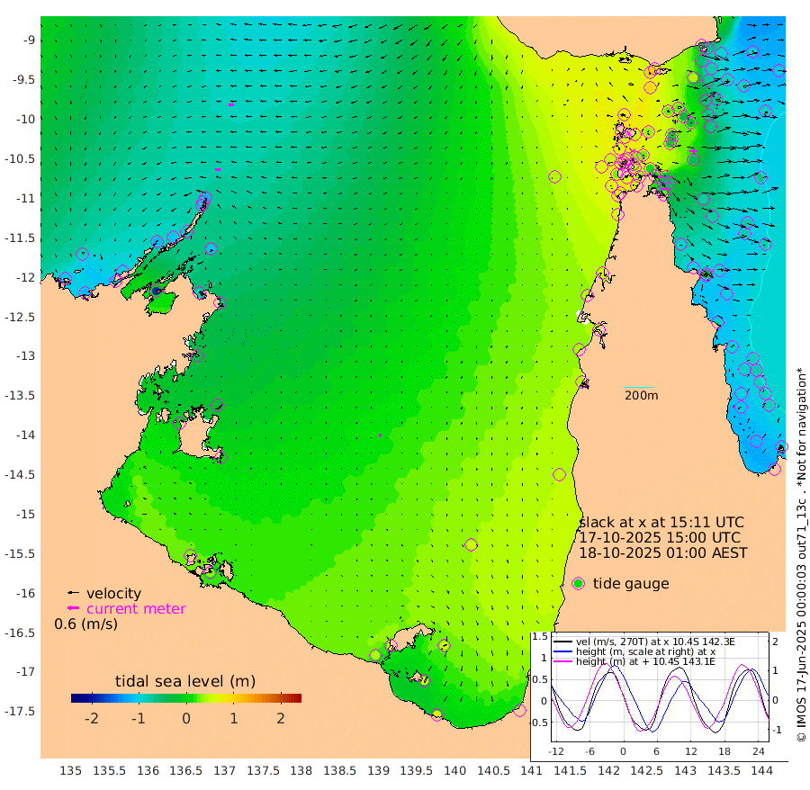 28cm/s -92T +3cm/s rms + 7cm/s -42T. ARA-GOC87 57m 14cm/s -156T +3cm/s rms + 2cm/s -2T. ARA-GOC87 60m 31cm/s -96T +2cm/s rms + 3cm/s 61T. ARA-GOC87 47m -48cm Daru -66cm Bobo Island -88cm Meer Island Barge -96cm Bramble Cay -81cm Unnamed Cay -75cm Pearce Cay -89cm Stephens Island -91cm Merrie England Shoals -59cm Mutacomal Reef -85cm Darnley Island Barge -100cm East Cay -65cm Yorke Island Barge -64cm Rennel Island -61cm Aureed Island -25cm Dungeness Reef 27cm Zagai Island 30cm Yam Island 104cm Dauan Island 89cm Saibai Island 97cm Phipi Reef 44cm Warrior Reef - West 80cm Mabuiag Island Barge -61cm Half Way Island -37cm Coconut Island -46cm Dugong Islet -2cm Poll Island -6cm Kirkcaldie Reef 31cm Suarji Island 3cm Sue Islet 70cm Hawkesbury Island 37cm Alert Patches 28cm Twin Island 82cm Badu Island 51cm St Pauls (Moa Island) 60cm Kubin (Moa Island) 53cm Ince Point 58cm Thursday Island 59cm Nardana Patches 62cm Turtle Head 52cm Round Island 61cm Goods Island 65cm Booby Island 51cm White Rocks Area 41cm Carpentaria 36cm Papou Point 28cm Bampfield Head 63cm Crab Island 63cm Red Wallis Island 56cm Packe Island -52cm Harrington Reef 57cm Herald Camp 26cm Sharp Point 56cm Red Island Point 35cm Possession Island 12cm Alpha Rock -5cm Frederick Point -55cm Wyborn Reef Light -41cm Tetley Island -64cm Triangle Reef -60cm Turtle Head Island -80cm Maclennan Cay -81cm Raine Island -76cm Mcsweeny Reef -79cm Collette Reef -77cm Shadwell Reef -93cm Hannibal Island -102cm Round Point 61cm Vrilya Point -95cm Cape Grenville -92cm Hicks Island -94cm Sir Charles Hardy Island -28cm Harvey Island -104cm Kay Reef -90cm Rocky Island -92cm Chapman Island -87cm Ham Reef -87cm Jubilee Reef -79cm Night Island -89cm Unnamed Reef No. 3 -96cm Morris Island -84cm 1st 3 Mile Opening -89cm Creech Reef -99cm Fife Island -113cm Eden Reef -100cm Stanley Island -116cm Normanby River -105cm Yabooma Island -117cm Hutchison River -98cm Elcho Island -84cm North West Crocodile Island -113cm Cape Wessel -114cm Stevens Island -110cm Guluwuru Island -107cm Hopeful Bay -107cm Auster Point -103cm Two Island Bay -115cm Cadell Strait -186cm Mallison Island -96cm Melville Bay (Gove Harbour) -107cm Truant Island -68cm Cape Arnhem -42cm Cape Grey -25cm Hawk Island -9cm Milner Bay (Groote Eylandt) 7cm Cape Beatrice 33cm West Island 34cm Centre Island 52cm Mornington Island 45cm West Wellesley Islands 53cm Bountiful Island 77cm Albert River Mouth 62cm Sweers Island 85cm Karumba 57cm Nassau River Offshore 50cm Christmas Creek 40cm Archer River 38cm Boyd Point 42cm Weipa (Humbug Point) 47cm Pennefather River 54cm Cullen Point