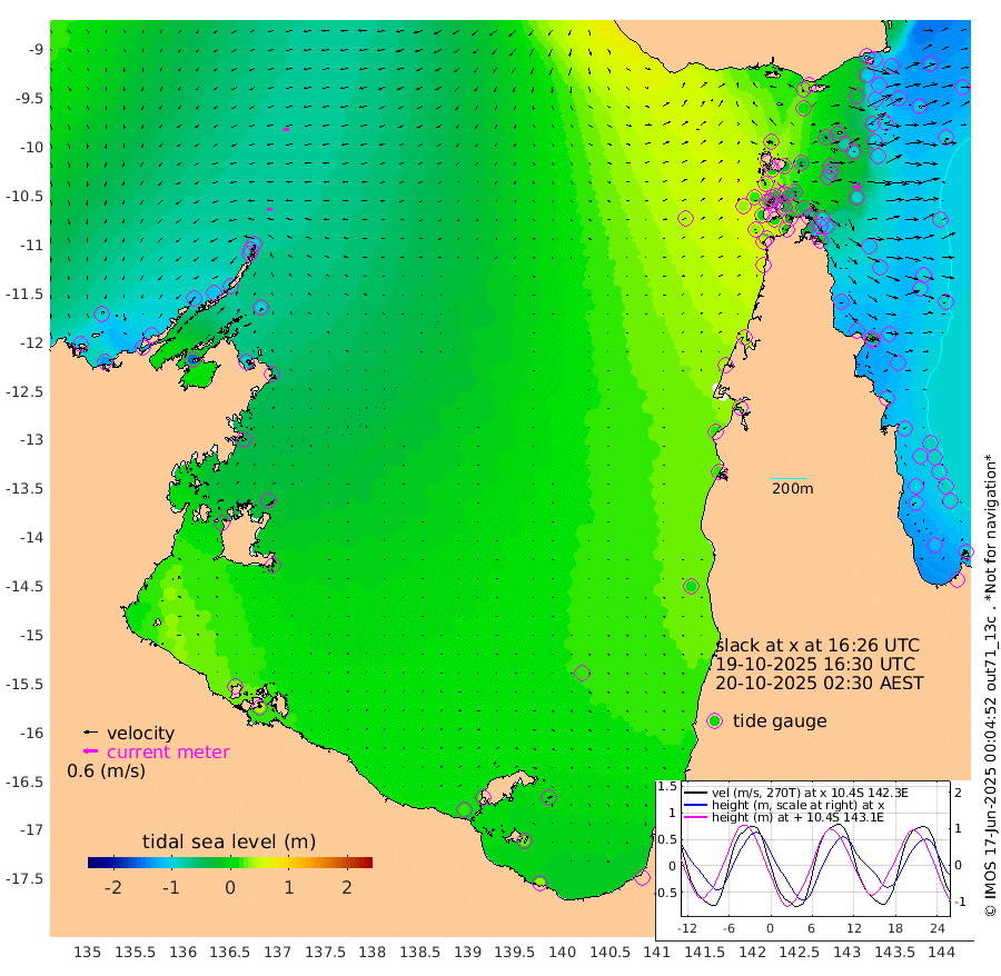 20cm/s -85T +3cm/s rms + 7cm/s -42T. ARA-GOC87 57m 3cm/s -145T +3cm/s rms + 2cm/s -2T. ARA-GOC87 60m 22cm/s -91T +2cm/s rms + 3cm/s 61T. ARA-GOC87 47m -99cm Daru -111cm Bobo Island -97cm Meer Island Barge -119cm Bramble Cay -118cm Unnamed Cay -116cm Pearce Cay -119cm Stephens Island -125cm Merrie England Shoals -109cm Mutacomal Reef -108cm Darnley Island Barge -113cm East Cay -99cm Yorke Island Barge -107cm Rennel Island -103cm Aureed Island -79cm Dungeness Reef -36cm Zagai Island -35cm Yam Island 30cm Dauan Island 24cm Saibai Island 14cm Phipi Reef -30cm Warrior Reef - West 23cm Mabuiag Island Barge -99cm Half Way Island -92cm Coconut Island -91cm Dugong Islet -61cm Poll Island -62cm Kirkcaldie Reef -40cm Suarji Island -49cm Sue Islet 29cm Hawkesbury Island -26cm Alert Patches -34cm Twin Island 26cm Badu Island -16cm St Pauls (Moa Island) 11cm Kubin (Moa Island) -6cm Ince Point 4cm Thursday Island 3cm Nardana Patches 8cm Turtle Head 10cm Round Island 18cm Goods Island 37cm Booby Island 16cm White Rocks Area 40cm Carpentaria -20cm Papou Point 6cm Bampfield Head 41cm Crab Island 31cm Red Wallis Island 9cm Packe Island -103cm Harrington Reef 26cm Herald Camp 7cm Sharp Point 10cm Red Island Point -13cm Possession Island -41cm Alpha Rock -63cm Frederick Point -105cm Wyborn Reef Light -94cm Tetley Island -83cm Triangle Reef -103cm Turtle Head Island -93cm Maclennan Cay -86cm Raine Island -110cm Mcsweeny Reef -107cm Collette Reef -90cm Shadwell Reef -122cm Hannibal Island -126cm Round Point 53cm Vrilya Point -112cm Cape Grenville -108cm Hicks Island -110cm Sir Charles Hardy Island -33cm Harvey Island -114cm Kay Reef -98cm Rocky Island -97cm Chapman Island -89cm Ham Reef -92cm Jubilee Reef -86cm Night Island -94cm Unnamed Reef No. 3 -103cm Morris Island -89cm 1st 3 Mile Opening -94cm Creech Reef -105cm Fife Island -115cm Eden Reef -103cm Stanley Island -119cm Normanby River -106cm Yabooma Island -131cm Hutchison River -103cm Elcho Island -91cm North West Crocodile Island -101cm Cape Wessel -112cm Stevens Island -106cm Guluwuru Island -101cm Hopeful Bay -96cm Auster Point -87cm Two Island Bay -114cm Cadell Strait -151cm Mallison Island -95cm Melville Bay (Gove Harbour) -102cm Truant Island -66cm Cape Arnhem -43cm Cape Grey -27cm Hawk Island -4cm Milner Bay (Groote Eylandt) 5cm Cape Beatrice 34cm West Island 38cm Centre Island 25cm Mornington Island 22cm West Wellesley Islands 11cm Bountiful Island 32cm Albert River Mouth 30cm Sweers Island 39cm Karumba 19cm Nassau River Offshore 14cm Christmas Creek 17cm Archer River 21cm Boyd Point 18cm Weipa (Humbug Point) 40cm Pennefather River 43cm Cullen Point