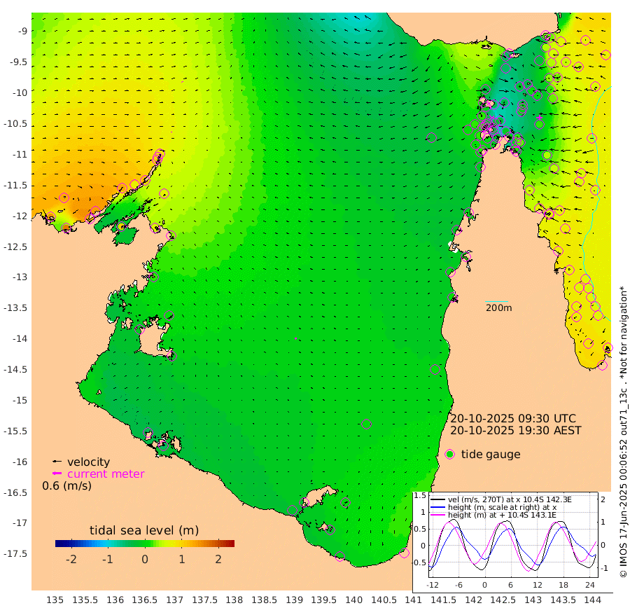3cm/s 171T +3cm/s rms + 7cm/s -42T. ARA-GOC87 57m 10cm/s -158T +3cm/s rms + 2cm/s -2T. ARA-GOC87 60m 3cm/s 157T +2cm/s rms + 3cm/s 61T. ARA-GOC87 47m 23cm Daru 26cm Bobo Island 58cm Meer Island Barge 68cm Bramble Cay 53cm Unnamed Cay 39cm Pearce Cay 51cm Stephens Island 61cm Merrie England Shoals 40cm Mutacomal Reef 45cm Darnley Island Barge 68cm East Cay 29cm Yorke Island Barge 36cm Rennel Island 21cm Aureed Island 9cm Dungeness Reef -33cm Zagai Island -21cm Yam Island -47cm Dauan Island -48cm Saibai Island -47cm Phipi Reef -29cm Warrior Reef - West -35cm Mabuiag Island Barge 30cm Half Way Island 8cm Coconut Island 21cm Dugong Islet -8cm Poll Island -5cm Kirkcaldie Reef -32cm Suarji Island -15cm Sue Islet 17cm Hawkesbury Island -25cm Alert Patches -23cm Twin Island -4cm Badu Island -38cm St Pauls (Moa Island) 2cm Kubin (Moa Island) -23cm Ince Point -20cm Thursday Island -21cm Nardana Patches -4cm Turtle Head 5cm Round Island 15cm Goods Island 11cm Booby Island 21cm White Rocks Area -16cm Carpentaria -30cm Papou Point 17cm Bampfield Head -4cm Crab Island 12cm Red Wallis Island 14cm Packe Island 14cm Harrington Reef 17cm Herald Camp -23cm Sharp Point -10cm Red Island Point -21cm Possession Island -9cm Alpha Rock -6cm Frederick Point 29cm Wyborn Reef Light 20cm Tetley Island 46cm Triangle Reef 22cm Turtle Head Island 55cm Maclennan Cay 62cm Raine Island 44cm Mcsweeny Reef 49cm Collette Reef 55cm Shadwell Reef 58cm Hannibal Island 74cm Round Point -14cm Vrilya Point 67cm Cape Grenville 63cm Hicks Island 72cm Sir Charles Hardy Island 18cm Harvey Island 78cm Kay Reef 69cm Rocky Island 74cm Chapman Island 67cm Ham Reef 65cm Jubilee Reef 57cm Night Island 68cm Unnamed Reef No. 3 72cm Morris Island 61cm 1st 3 Mile Opening 64cm Creech Reef 73cm Fife Island 85cm Eden Reef 75cm Stanley Island 86cm Normanby River 150cm Yabooma Island 158cm Hutchison River 137cm Elcho Island 132cm North West Crocodile Island 87cm Cape Wessel 128cm Stevens Island 68cm Guluwuru Island 124cm Hopeful Bay 94cm Auster Point 97cm Two Island Bay 120cm Cadell Strait 100cm Mallison Island 69cm Melville Bay (Gove Harbour) 70cm Truant Island 36cm Cape Arnhem 16cm Cape Grey 10cm Hawk Island -14cm Milner Bay (Groote Eylandt) -13cm Cape Beatrice -41cm West Island -52cm Centre Island -26cm Mornington Island -21cm West Wellesley Islands 5cm Bountiful Island -7cm Albert River Mouth -15cm Sweers Island -11cm Karumba 2cm Nassau River Offshore 9cm Christmas Creek 12cm Archer River 6cm Boyd Point 20cm Weipa (Humbug Point) -15cm Pennefather River -1cm Cullen Point