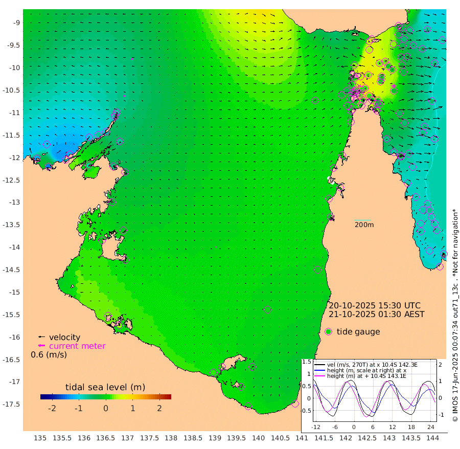 14cm/s -63T +3cm/s rms + 7cm/s -42T. ARA-GOC87 57m 5cm/s 156T +3cm/s rms + 2cm/s -2T. ARA-GOC87 60m 17cm/s -69T +2cm/s rms + 3cm/s 61T. ARA-GOC87 47m -25cm Daru -32cm Bobo Island -66cm Meer Island Barge -73cm Bramble Cay -55cm Unnamed Cay -45cm Pearce Cay -56cm Stephens Island -64cm Merrie England Shoals -36cm Mutacomal Reef -52cm Darnley Island Barge -77cm East Cay -33cm Yorke Island Barge -39cm Rennel Island -27cm Aureed Island -12cm Dungeness Reef 30cm Zagai Island 28cm Yam Island 57cm Dauan Island 55cm Saibai Island 41cm Phipi Reef 35cm Warrior Reef - West 36cm Mabuiag Island Barge -31cm Half Way Island -19cm Coconut Island -18cm Dugong Islet 9cm Poll Island 1cm Kirkcaldie Reef 23cm Suarji Island 14cm Sue Islet -9cm Hawkesbury Island 17cm Alert Patches 21cm Twin Island -8cm Badu Island 38cm St Pauls (Moa Island) 6cm Kubin (Moa Island) 22cm Ince Point 17cm Thursday Island 19cm Nardana Patches -2cm Turtle Head -8cm Round Island -23cm Goods Island -23cm Booby Island -31cm White Rocks Area -1cm Carpentaria 25cm Papou Point -41cm Bampfield Head -15cm Crab Island -14cm Red Wallis Island -6cm Packe Island -20cm Harrington Reef -8cm Herald Camp 24cm Sharp Point -2cm Red Island Point 10cm Possession Island 17cm Alpha Rock 4cm Frederick Point -29cm Wyborn Reef Light -17cm Tetley Island -49cm Triangle Reef -31cm Turtle Head Island -61cm Maclennan Cay -77cm Raine Island -49cm Mcsweeny Reef -56cm Collette Reef -65cm Shadwell Reef -65cm Hannibal Island -78cm Round Point -5cm Vrilya Point -71cm Cape Grenville -71cm Hicks Island -74cm Sir Charles Hardy Island -20cm Harvey Island -86cm Kay Reef -78cm Rocky Island -84cm Chapman Island -76cm Ham Reef -75cm Jubilee Reef -64cm Night Island -78cm Unnamed Reef No. 3 -83cm Morris Island -78cm 1st 3 Mile Opening -76cm Creech Reef -78cm Fife Island -96cm Eden Reef -85cm Stanley Island -92cm Normanby River -127cm Yabooma Island -143cm Hutchison River -120cm Elcho Island -109cm North West Crocodile Island -76cm Cape Wessel -112cm Stevens Island -69cm Guluwuru Island -107cm Hopeful Bay -88cm Auster Point -72cm Two Island Bay -103cm Cadell Strait -82cm Mallison Island -67cm Melville Bay (Gove Harbour) -69cm Truant Island -40cm Cape Arnhem -29cm Cape Grey -12cm Hawk Island 2cm Milner Bay (Groote Eylandt) 9cm Cape Beatrice 37cm West Island 39cm Centre Island 20cm Mornington Island 16cm West Wellesley Islands -6cm Bountiful Island 4cm Albert River Mouth 4cm Sweers Island 10cm Karumba 4cm Nassau River Offshore -7cm Christmas Creek -22cm Archer River -12cm Boyd Point -26cm Weipa (Humbug Point) -5cm Pennefather River -2cm Cullen Point
