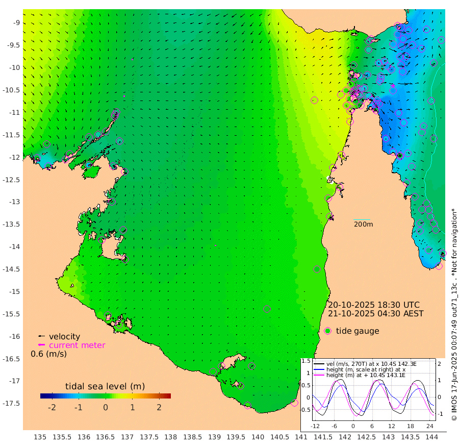 13cm/s -95T +3cm/s rms + 7cm/s -42T. ARA-GOC87 57m 8cm/s -22T +3cm/s rms + 2cm/s -2T. ARA-GOC87 60m 11cm/s -108T +2cm/s rms + 3cm/s 61T. ARA-GOC87 47m -137cm Daru -143cm Bobo Island -74cm Meer Island Barge -104cm Bramble Cay -127cm Unnamed Cay -133cm Pearce Cay -121cm Stephens Island -124cm Merrie England Shoals -139cm Mutacomal Reef -110cm Darnley Island Barge -86cm East Cay -122cm Yorke Island Barge -128cm Rennel Island -134cm Aureed Island -127cm Dungeness Reef -119cm Zagai Island -115cm Yam Island -70cm Dauan Island -72cm Saibai Island -80cm Phipi Reef -121cm Warrior Reef - West -48cm Mabuiag Island Barge -123cm Half Way Island -137cm Coconut Island -129cm Dugong Islet -123cm Poll Island -118cm Kirkcaldie Reef -122cm Suarji Island -112cm Sue Islet 17cm Hawkesbury Island -91cm Alert Patches -103cm Twin Island -4cm Badu Island -100cm St Pauls (Moa Island) -26cm Kubin (Moa Island) -67cm Ince Point -48cm Thursday Island -53cm Nardana Patches -27cm Turtle Head -10cm Round Island 11cm Goods Island 43cm Booby Island 21cm White Rocks Area 44cm Carpentaria -87cm Papou Point 21cm Bampfield Head 49cm Crab Island 30cm Red Wallis Island -15cm Packe Island -145cm Harrington Reef 17cm Herald Camp -27cm Sharp Point -19cm Red Island Point -59cm Possession Island -102cm Alpha Rock -121cm Frederick Point -141cm Wyborn Reef Light -139cm Tetley Island -76cm Triangle Reef -130cm Turtle Head Island -76cm Maclennan Cay -49cm Raine Island -119cm Mcsweeny Reef -107cm Collette Reef -70cm Shadwell Reef -117cm Hannibal Island -106cm Round Point 64cm Vrilya Point -92cm Cape Grenville -86cm Hicks Island -91cm Sir Charles Hardy Island -28cm Harvey Island -78cm Kay Reef -64cm Rocky Island -58cm Chapman Island -52cm Ham Reef -59cm Jubilee Reef -59cm Night Island -56cm Unnamed Reef No. 3 -66cm Morris Island -52cm 1st 3 Mile Opening -59cm Creech Reef -68cm Fife Island -66cm Eden Reef -60cm Stanley Island -74cm Normanby River -18cm Yabooma Island -44cm Hutchison River -22cm Elcho Island -16cm North West Crocodile Island -54cm Cape Wessel -38cm Stevens Island -78cm Guluwuru Island -25cm Hopeful Bay -37cm Auster Point -33cm Two Island Bay -51cm Cadell Strait -118cm Mallison Island -65cm Melville Bay (Gove Harbour) -70cm Truant Island -51cm Cape Arnhem -33cm Cape Grey -24cm Hawk Island -3cm Milner Bay (Groote Eylandt) 0cm Cape Beatrice 14cm West Island 20cm Centre Island 1cm Mornington Island 1cm West Wellesley Islands -10cm Bountiful Island 16cm Albert River Mouth 21cm Sweers Island 21cm Karumba -1cm Nassau River Offshore -1cm Christmas Creek 23cm Archer River 22cm Boyd Point 27cm Weipa (Humbug Point) 50cm Pennefather River 47cm Cullen Point