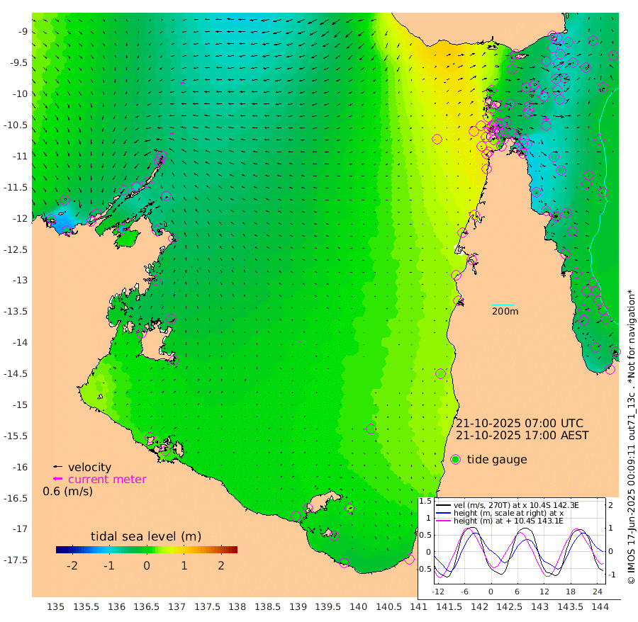 24cm/s -92T +3cm/s rms + 7cm/s -42T. ARA-GOC87 57m 2cm/s 160T +3cm/s rms + 2cm/s -2T. ARA-GOC87 60m 24cm/s -108T +2cm/s rms + 3cm/s 61T. ARA-GOC87 47m -83cm Daru -94cm Bobo Island -32cm Meer Island Barge -56cm Bramble Cay -68cm Unnamed Cay -87cm Pearce Cay -68cm Stephens Island -71cm Merrie England Shoals -81cm Mutacomal Reef -60cm Darnley Island Barge -40cm East Cay -70cm Yorke Island Barge -74cm Rennel Island -82cm Aureed Island -70cm Dungeness Reef -67cm Zagai Island -55cm Yam Island -21cm Dauan Island -23cm Saibai Island -36cm Phipi Reef -67cm Warrior Reef - West -3cm Mabuiag Island Barge -70cm Half Way Island -84cm Coconut Island -69cm Dugong Islet -70cm Poll Island -63cm Kirkcaldie Reef -53cm Suarji Island -60cm Sue Islet 51cm Hawkesbury Island -39cm Alert Patches -49cm Twin Island 39cm Badu Island -45cm St Pauls (Moa Island) 22cm Kubin (Moa Island) -17cm Ince Point 2cm Thursday Island -3cm Nardana Patches 23cm Turtle Head 34cm Round Island 59cm Goods Island 86cm Booby Island 74cm White Rocks Area 83cm Carpentaria -41cm Papou Point 79cm Bampfield Head 67cm Crab Island 71cm Red Wallis Island 34cm Packe Island -87cm Harrington Reef 71cm Herald Camp -16cm Sharp Point 13cm Red Island Point -17cm Possession Island -49cm Alpha Rock -68cm Frederick Point -86cm Wyborn Reef Light -85cm Tetley Island -37cm Triangle Reef -84cm Turtle Head Island -28cm Maclennan Cay -13cm Raine Island -67cm Mcsweeny Reef -59cm Collette Reef -30cm Shadwell Reef -66cm Hannibal Island -60cm Round Point 70cm Vrilya Point -43cm Cape Grenville -39cm Hicks Island -26cm Sir Charles Hardy Island -13cm Harvey Island -30cm Kay Reef -20cm Rocky Island -17cm Chapman Island -13cm Ham Reef -17cm Jubilee Reef -23cm Night Island -17cm Unnamed Reef No. 3 -22cm Morris Island -6cm 1st 3 Mile Opening -16cm Creech Reef -31cm Fife Island -21cm Eden Reef -17cm Stanley Island -28cm Normanby River -27cm Yabooma Island -60cm Hutchison River -44cm Elcho Island -40cm North West Crocodile Island -58cm Cape Wessel -60cm Stevens Island -77cm Guluwuru Island -46cm Hopeful Bay -51cm Auster Point -53cm Two Island Bay -86cm Cadell Strait -127cm Mallison Island -66cm Melville Bay (Gove Harbour) -71cm Truant Island -51cm Cape Arnhem -31cm Cape Grey -34cm Hawk Island -5cm Milner Bay (Groote Eylandt) -3cm Cape Beatrice 20cm West Island 18cm Centre Island 0cm Mornington Island 11cm West Wellesley Islands 27cm Bountiful Island 9cm Albert River Mouth 1cm Sweers Island 4cm Karumba 16cm Nassau River Offshore 28cm Christmas Creek 40cm Archer River 47cm Boyd Point 60cm Weipa (Humbug Point) 40cm Pennefather River 68cm Cullen Point