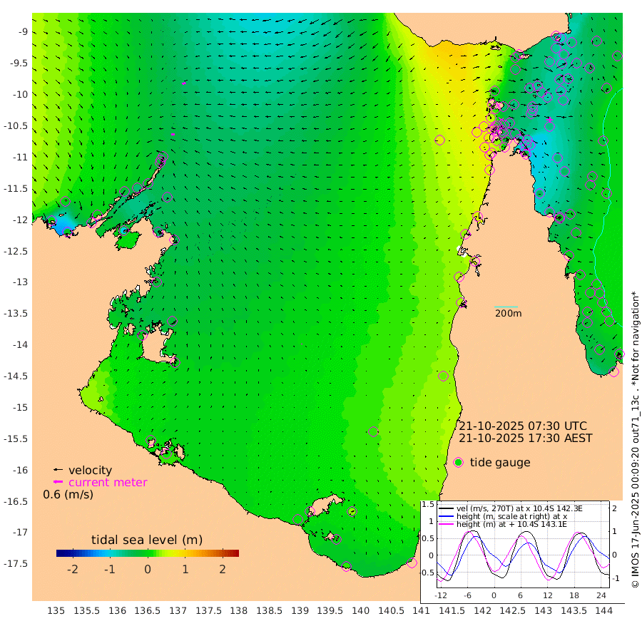 22cm/s -94T +3cm/s rms + 7cm/s -42T. ARA-GOC87 57m 3cm/s -152T +3cm/s rms + 2cm/s -2T. ARA-GOC87 60m 23cm/s -110T +2cm/s rms + 3cm/s 61T. ARA-GOC87 47m -76cm Daru -86cm Bobo Island -19cm Meer Island Barge -39cm Bramble Cay -54cm Unnamed Cay -75cm Pearce Cay -55cm Stephens Island -55cm Merrie England Shoals -70cm Mutacomal Reef -49cm Darnley Island Barge -25cm East Cay -62cm Yorke Island Barge -64cm Rennel Island -75cm Aureed Island -66cm Dungeness Reef -74cm Zagai Island -60cm Yam Island -33cm Dauan Island -37cm Saibai Island -46cm Phipi Reef -73cm Warrior Reef - West -13cm Mabuiag Island Barge -62cm Half Way Island -80cm Coconut Island -63cm Dugong Islet -70cm Poll Island -63cm Kirkcaldie Reef -61cm Suarji Island -63cm Sue Islet 51cm Hawkesbury Island -44cm Alert Patches -54cm Twin Island 35cm Badu Island -53cm St Pauls (Moa Island) 19cm Kubin (Moa Island) -23cm Ince Point -4cm Thursday Island -9cm Nardana Patches 20cm Turtle Head 32cm Round Island 58cm Goods Island 82cm Booby Island 73cm White Rocks Area 71cm Carpentaria -48cm Papou Point 76cm Bampfield Head 63cm Crab Island 68cm Red Wallis Island 33cm Packe Island -81cm Harrington Reef 68cm Herald Camp -20cm Sharp Point 9cm Red Island Point -22cm Possession Island -51cm Alpha Rock -68cm Frederick Point -77cm Wyborn Reef Light -78cm Tetley Island -27cm Triangle Reef -76cm Turtle Head Island -17cm Maclennan Cay 1cm Raine Island -55cm Mcsweeny Reef -47cm Collette Reef -18cm Shadwell Reef -51cm Hannibal Island -42cm Round Point 63cm Vrilya Point -27cm Cape Grenville -25cm Hicks Island -12cm Sir Charles Hardy Island -9cm Harvey Island -13cm Kay Reef -5cm Rocky Island -2cm Chapman Island 0cm Ham Reef -4cm Jubilee Reef -10cm Night Island -3cm Unnamed Reef No. 3 -6cm Morris Island 6cm 1st 3 Mile Opening -3cm Creech Reef -15cm Fife Island -3cm Eden Reef -1cm Stanley Island -9cm Normanby River 13cm Yabooma Island -15cm Hutchison River -5cm Elcho Island -3cm North West Crocodile Island -36cm Cape Wessel -24cm Stevens Island -58cm Guluwuru Island -13cm Hopeful Bay -25cm Auster Point -27cm Two Island Bay -50cm Cadell Strait -105cm Mallison Island -47cm Melville Bay (Gove Harbour) -52cm Truant Island -41cm Cape Arnhem -24cm Cape Grey -29cm Hawk Island -6cm Milner Bay (Groote Eylandt) -4cm Cape Beatrice 12cm West Island 8cm Centre Island -2cm Mornington Island 9cm West Wellesley Islands 30cm Bountiful Island 15cm Albert River Mouth 6cm Sweers Island 9cm Karumba 18cm Nassau River Offshore 28cm Christmas Creek 41cm Archer River 44cm Boyd Point 60cm Weipa (Humbug Point) 36cm Pennefather River 62cm Cullen Point