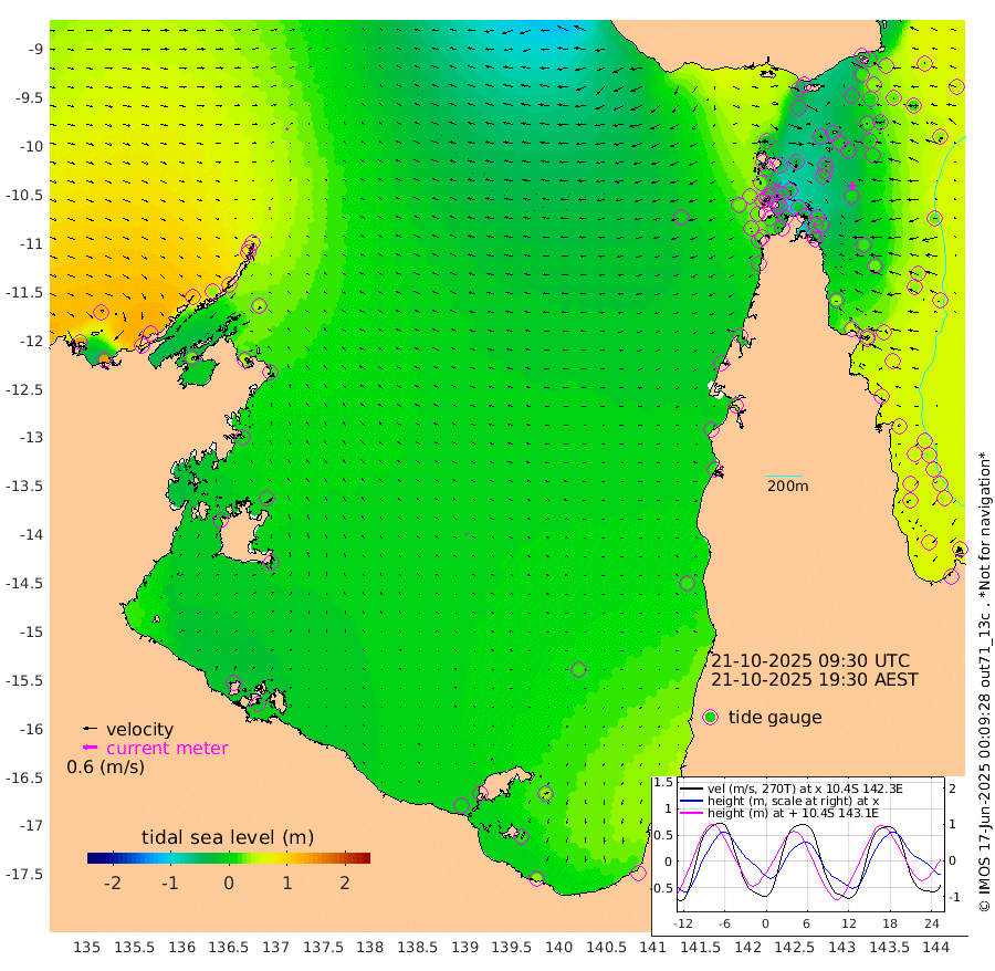 9cm/s -106T +3cm/s rms + 7cm/s -42T. ARA-GOC87 57m 9cm/s -136T +3cm/s rms + 2cm/s -2T. ARA-GOC87 60m 8cm/s -121T +2cm/s rms + 3cm/s 61T. ARA-GOC87 47m 4cm Daru 0cm Bobo Island 37cm Meer Island Barge 44cm Bramble Cay 30cm Unnamed Cay 13cm Pearce Cay 27cm Stephens Island 37cm Merrie England Shoals 18cm Mutacomal Reef 22cm Darnley Island Barge 45cm East Cay 7cm Yorke Island Barge 15cm Rennel Island -2cm Aureed Island -6cm Dungeness Reef -41cm Zagai Island -27cm Yam Island -40cm Dauan Island -46cm Saibai Island -39cm Phipi Reef -37cm Warrior Reef - West -28cm Mabuiag Island Barge 10cm Half Way Island -11cm Coconut Island 3cm Dugong Islet -20cm Poll Island -15cm Kirkcaldie Reef -36cm Suarji Island -25cm Sue Islet 26cm Hawkesbury Island -26cm Alert Patches -28cm Twin Island 10cm Badu Island -39cm St Pauls (Moa Island) 8cm Kubin (Moa Island) -20cm Ince Point -14cm Thursday Island -16cm Nardana Patches 5cm Turtle Head 12cm Round Island 28cm Goods Island 27cm Booby Island 35cm White Rocks Area -6cm Carpentaria -32cm Papou Point 26cm Bampfield Head 12cm Crab Island 24cm Red Wallis Island 20cm Packe Island -6cm Harrington Reef 26cm Herald Camp -22cm Sharp Point -3cm Red Island Point -21cm Possession Island -18cm Alpha Rock -19cm Frederick Point 7cm Wyborn Reef Light -1cm Tetley Island 26cm Triangle Reef 1cm Turtle Head Island 36cm Maclennan Cay 46cm Raine Island 22cm Mcsweeny Reef 27cm Collette Reef 37cm Shadwell Reef 33cm Hannibal Island 47cm Round Point 0cm Vrilya Point 45cm Cape Grenville 42cm Hicks Island 50cm Sir Charles Hardy Island 11cm Harvey Island 56cm Kay Reef 50cm Rocky Island 53cm Chapman Island 48cm Ham Reef 47cm Jubilee Reef 39cm Night Island 49cm Unnamed Reef No. 3 53cm Morris Island 47cm 1st 3 Mile Opening 46cm Creech Reef 50cm Fife Island 62cm Eden Reef 56cm Stanley Island 62cm Normanby River 135cm Yabooma Island 139cm Hutchison River 122cm Elcho Island 120cm North West Crocodile Island 58cm Cape Wessel 106cm Stevens Island 37cm Guluwuru Island 102cm Hopeful Bay 71cm Auster Point 71cm Two Island Bay 90cm Cadell Strait 28cm Mallison Island 43cm Melville Bay (Gove Harbour) 40cm Truant Island 17cm Cape Arnhem 10cm Cape Grey 5cm Hawk Island -5cm Milner Bay (Groote Eylandt) -2cm Cape Beatrice -19cm West Island -30cm Centre Island -4cm Mornington Island 2cm West Wellesley Islands 36cm Bountiful Island 34cm Albert River Mouth 22cm Sweers Island 27cm Karumba 20cm Nassau River Offshore 21cm Christmas Creek 21cm Archer River 13cm Boyd Point 31cm Weipa (Humbug Point) -5cm Pennefather River 9cm Cullen Point
