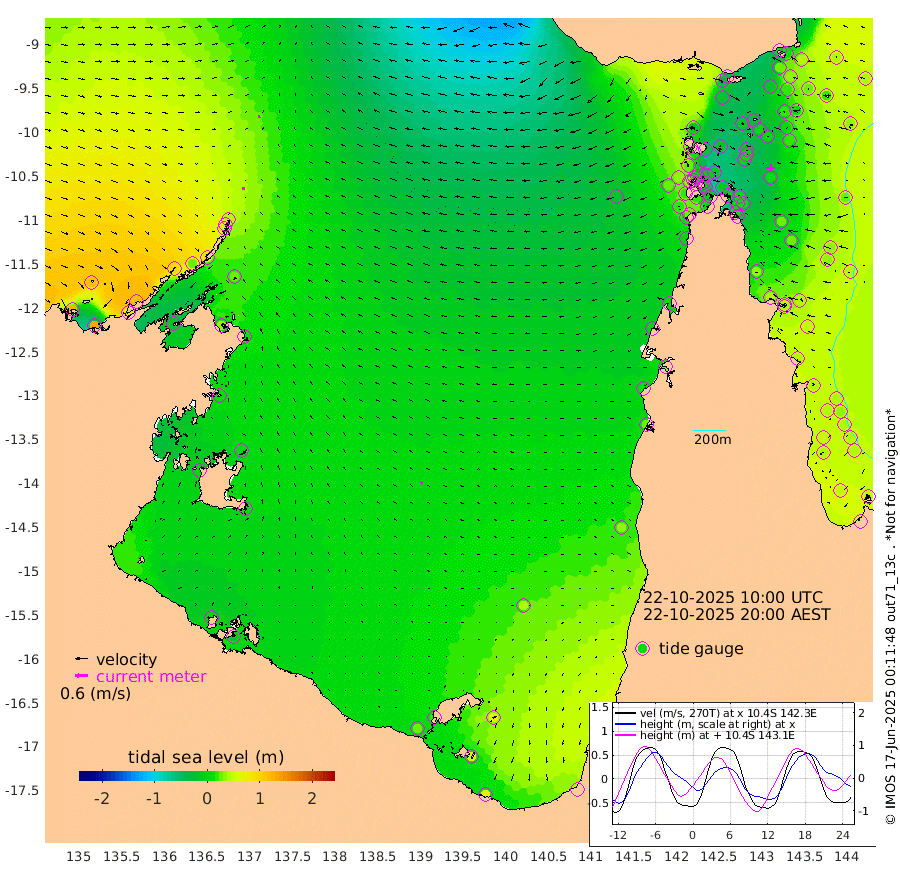 13cm/s -97T +3cm/s rms + 7cm/s -42T. ARA-GOC87 57m 10cm/s -125T +3cm/s rms + 2cm/s -2T. ARA-GOC87 60m 11cm/s -108T +2cm/s rms + 3cm/s 61T. ARA-GOC87 47m 14cm Daru 8cm Bobo Island 33cm Meer Island Barge 42cm Bramble Cay 34cm Unnamed Cay 19cm Pearce Cay 29cm Stephens Island 40cm Merrie England Shoals 26cm Mutacomal Reef 22cm Darnley Island Barge 40cm East Cay 11cm Yorke Island Barge 22cm Rennel Island 4cm Aureed Island 7cm Dungeness Reef -26cm Zagai Island -11cm Yam Island -23cm Dauan Island -32cm Saibai Island -15cm Phipi Reef -19cm Warrior Reef - West -16cm Mabuiag Island Barge 17cm Half Way Island 0cm Coconut Island 13cm Dugong Islet -6cm Poll Island 1cm Kirkcaldie Reef -18cm Suarji Island -13cm Sue Islet 27cm Hawkesbury Island -11cm Alert Patches -14cm Twin Island 18cm Badu Island -22cm St Pauls (Moa Island) 14cm Kubin (Moa Island) -8cm Ince Point -3cm Thursday Island -4cm Nardana Patches 14cm Turtle Head 15cm Round Island 30cm Goods Island 25cm Booby Island 34cm White Rocks Area -15cm Carpentaria -18cm Papou Point 17cm Bampfield Head 11cm Crab Island 22cm Red Wallis Island 22cm Packe Island 6cm Harrington Reef 23cm Herald Camp -15cm Sharp Point 7cm Red Island Point -11cm Possession Island -8cm Alpha Rock -6cm Frederick Point 14cm Wyborn Reef Light 7cm Tetley Island 23cm Triangle Reef 10cm Turtle Head Island 33cm Maclennan Cay 39cm Raine Island 25cm Mcsweeny Reef 27cm Collette Reef 33cm Shadwell Reef 34cm Hannibal Island 44cm Round Point -2cm Vrilya Point 41cm Cape Grenville 39cm Hicks Island 44cm Sir Charles Hardy Island 10cm Harvey Island 48cm Kay Reef 43cm Rocky Island 42cm Chapman Island 38cm Ham Reef 39cm Jubilee Reef 33cm Night Island 39cm Unnamed Reef No. 3 46cm Morris Island 41cm 1st 3 Mile Opening 39cm Creech Reef 41cm Fife Island 52cm Eden Reef 47cm Stanley Island 53cm Normanby River 126cm Yabooma Island 133cm Hutchison River 115cm Elcho Island 116cm North West Crocodile Island 42cm Cape Wessel 93cm Stevens Island 25cm Guluwuru Island 88cm Hopeful Bay 58cm Auster Point 58cm Two Island Bay 80cm Cadell Strait -19cm Mallison Island 33cm Melville Bay (Gove Harbour) 27cm Truant Island 10cm Cape Arnhem 11cm Cape Grey 7cm Hawk Island 2cm Milner Bay (Groote Eylandt) 9cm Cape Beatrice -4cm West Island -15cm Centre Island 19cm Mornington Island 23cm West Wellesley Islands 64cm Bountiful Island 69cm Albert River Mouth 56cm Sweers Island 62cm Karumba 38cm Nassau River Offshore 32cm Christmas Creek 24cm Archer River 11cm Boyd Point 30cm Weipa (Humbug Point) -5cm Pennefather River 4cm Cullen Point