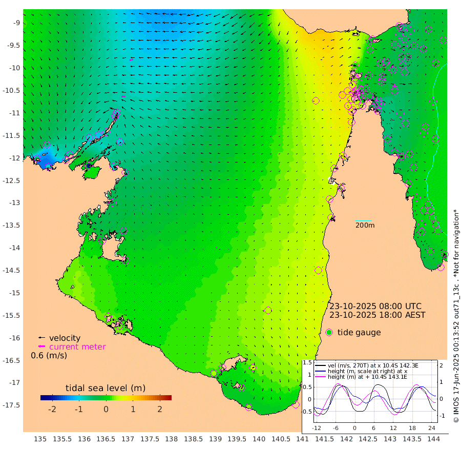 34cm/s -90T +3cm/s rms + 7cm/s -42T. ARA-GOC87 57m 9cm/s -171T +3cm/s rms + 2cm/s -2T. ARA-GOC87 60m 35cm/s -102T +2cm/s rms + 3cm/s 61T. ARA-GOC87 47m -44cm Daru -53cm Bobo Island -6cm Meer Island Barge -23cm Bramble Cay -32cm Unnamed Cay -41cm Pearce Cay -28cm Stephens Island -33cm Merrie England Shoals -44cm Mutacomal Reef -25cm Darnley Island Barge -8cm East Cay -34cm Yorke Island Barge -33cm Rennel Island -41cm Aureed Island -30cm Dungeness Reef -45cm Zagai Island -29cm Yam Island -12cm Dauan Island -19cm Saibai Island -12cm Phipi Reef -39cm Warrior Reef - West 4cm Mabuiag Island Barge -29cm Half Way Island -46cm Coconut Island -27cm Dugong Islet -36cm Poll Island -23cm Kirkcaldie Reef -21cm Suarji Island -32cm Sue Islet 64cm Hawkesbury Island -9cm Alert Patches -19cm Twin Island 48cm Badu Island -18cm St Pauls (Moa Island) 36cm Kubin (Moa Island) 6cm Ince Point 22cm Thursday Island 17cm Nardana Patches 42cm Turtle Head 42cm Round Island 71cm Goods Island 92cm Booby Island 84cm White Rocks Area 77cm Carpentaria -17cm Papou Point 76cm Bampfield Head 73cm Crab Island 79cm Red Wallis Island 50cm Packe Island -39cm Harrington Reef 79cm Herald Camp -9cm Sharp Point 38cm Red Island Point 6cm Possession Island -28cm Alpha Rock -31cm Frederick Point -52cm Wyborn Reef Light -53cm Tetley Island -14cm Triangle Reef -41cm Turtle Head Island 0cm Maclennan Cay 8cm Raine Island -30cm Mcsweeny Reef -26cm Collette Reef -7cm Shadwell Reef -30cm Hannibal Island -24cm Round Point 75cm Vrilya Point -11cm Cape Grenville -7cm Hicks Island 1cm Sir Charles Hardy Island -3cm Harvey Island -3cm Kay Reef 5cm Rocky Island 4cm Chapman Island 7cm Ham Reef 5cm Jubilee Reef 1cm Night Island 6cm Unnamed Reef No. 3 4cm Morris Island 15cm 1st 3 Mile Opening 9cm Creech Reef -2cm Fife Island 5cm Eden Reef 9cm Stanley Island 3cm Normanby River -57cm Yabooma Island -90cm Hutchison River -75cm Elcho Island -66cm North West Crocodile Island -89cm Cape Wessel -96cm Stevens Island -108cm Guluwuru Island -79cm Hopeful Bay -81cm Auster Point -83cm Two Island Bay -113cm Cadell Strait -201cm Mallison Island -92cm Melville Bay (Gove Harbour) -101cm Truant Island -71cm Cape Arnhem -39cm Cape Grey -40cm Hawk Island -11cm Milner Bay (Groote Eylandt) 1cm Cape Beatrice 34cm West Island 30cm Centre Island 29cm Mornington Island 39cm West Wellesley Islands 62cm Bountiful Island 34cm Albert River Mouth 27cm Sweers Island 40cm Karumba 52cm Nassau River Offshore 59cm Christmas Creek 59cm Archer River 58cm Boyd Point 73cm Weipa (Humbug Point) 50cm Pennefather River 70cm Cullen Point