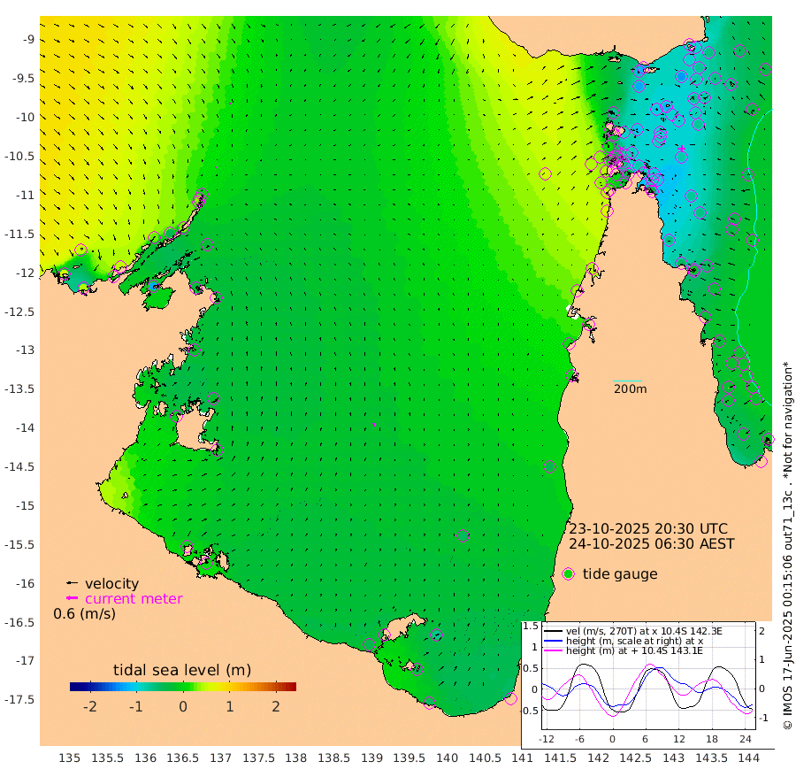 5cm/s -135T +3cm/s rms + 7cm/s -42T. ARA-GOC87 57m 20cm/s 2T +3cm/s rms + 2cm/s -2T. ARA-GOC87 60m 7cm/s 170T +2cm/s rms + 3cm/s 61T. ARA-GOC87 47m -94cm Daru -92cm Bobo Island -31cm Meer Island Barge -52cm Bramble Cay -73cm Unnamed Cay -79cm Pearce Cay -62cm Stephens Island -66cm Merrie England Shoals -91cm Mutacomal Reef -62cm Darnley Island Barge -35cm East Cay -79cm Yorke Island Barge -74cm Rennel Island -89cm Aureed Island -91cm Dungeness Reef -115cm Zagai Island -105cm Yam Island -116cm Dauan Island -121cm Saibai Island -120cm Phipi Reef -128cm Warrior Reef - West -72cm Mabuiag Island Barge -69cm Half Way Island -93cm Coconut Island -81cm Dugong Islet -95cm Poll Island -86cm Kirkcaldie Reef -106cm Suarji Island -97cm Sue Islet 13cm Hawkesbury Island -79cm Alert Patches -84cm Twin Island -20cm Badu Island -91cm St Pauls (Moa Island) -18cm Kubin (Moa Island) -61cm Ince Point -43cm Thursday Island -49cm Nardana Patches -26cm Turtle Head 0cm Round Island 13cm Goods Island 44cm Booby Island 34cm White Rocks Area 53cm Carpentaria -72cm Papou Point 47cm Bampfield Head 47cm Crab Island 34cm Red Wallis Island -6cm Packe Island -86cm Harrington Reef 24cm Herald Camp -33cm Sharp Point -21cm Red Island Point -42cm Possession Island -82cm Alpha Rock -87cm Frederick Point -91cm Wyborn Reef Light -93cm Tetley Island -43cm Triangle Reef -67cm Turtle Head Island -33cm Maclennan Cay -13cm Raine Island -68cm Mcsweeny Reef -61cm Collette Reef -35cm Shadwell Reef -64cm Hannibal Island -48cm Round Point 60cm Vrilya Point -40cm Cape Grenville -35cm Hicks Island -47cm Sir Charles Hardy Island -11cm Harvey Island -30cm Kay Reef -24cm Rocky Island -24cm Chapman Island -18cm Ham Reef -21cm Jubilee Reef -19cm Night Island -19cm Unnamed Reef No. 3 -21cm Morris Island -12cm 1st 3 Mile Opening -18cm Creech Reef -20cm Fife Island -19cm Eden Reef -15cm Stanley Island -19cm Normanby River 56cm Yabooma Island 38cm Hutchison River 48cm Elcho Island 48cm North West Crocodile Island 5cm Cape Wessel 30cm Stevens Island -39cm Guluwuru Island 33cm Hopeful Bay 24cm Auster Point 30cm Two Island Bay 7cm Cadell Strait -127cm Mallison Island -27cm Melville Bay (Gove Harbour) -25cm Truant Island -26cm Cape Arnhem -21cm Cape Grey -19cm Hawk Island -2cm Milner Bay (Groote Eylandt) -6cm Cape Beatrice -4cm West Island 1cm Centre Island -43cm Mornington Island -43cm West Wellesley Islands -69cm Bountiful Island -50cm Albert River Mouth -43cm Sweers Island -46cm Karumba -49cm Nassau River Offshore -42cm Christmas Creek -4cm Archer River 5cm Boyd Point 7cm Weipa (Humbug Point) 38cm Pennefather River 39cm Cullen Point